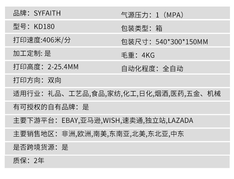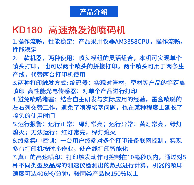 货号 KD180 高速热发泡喷码机
