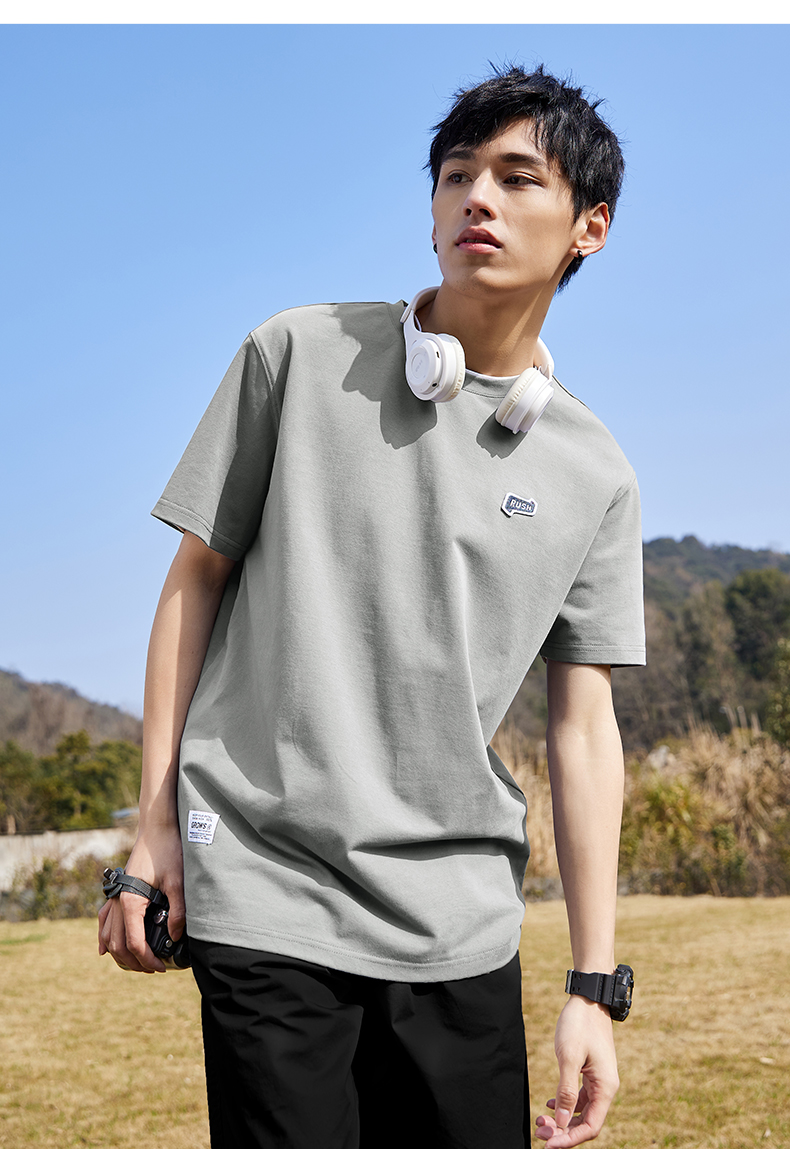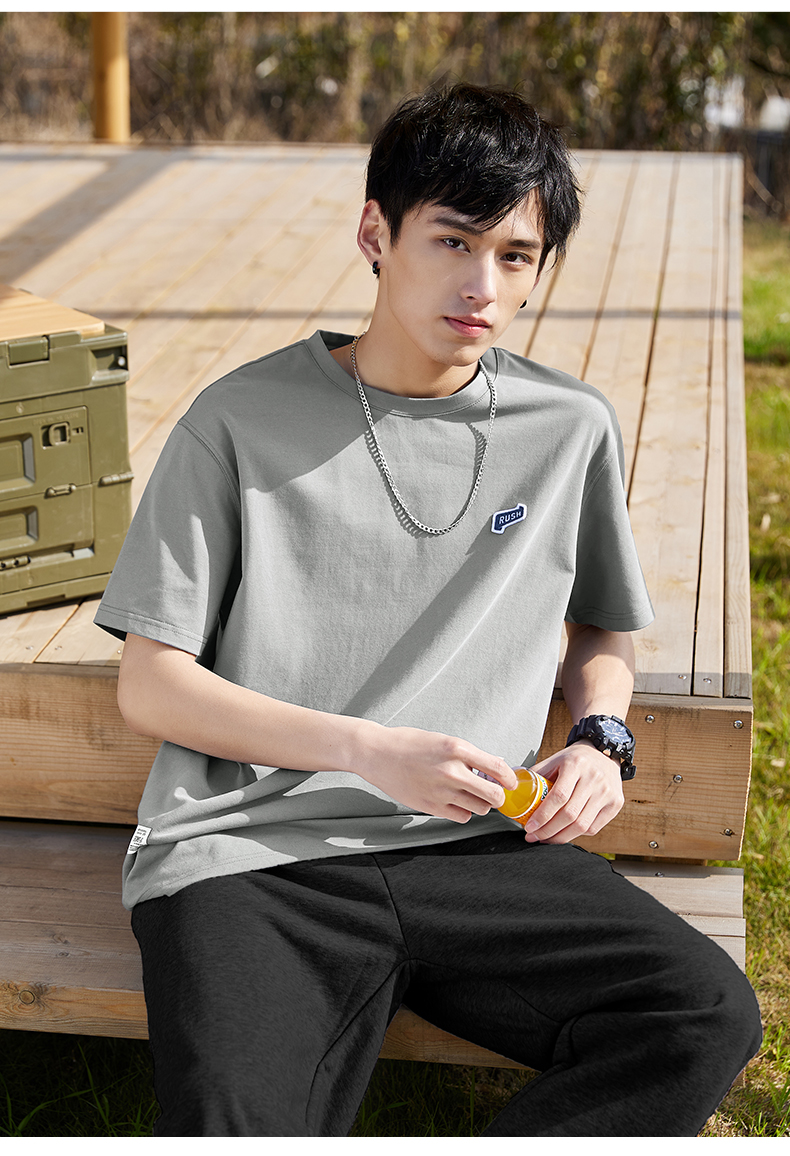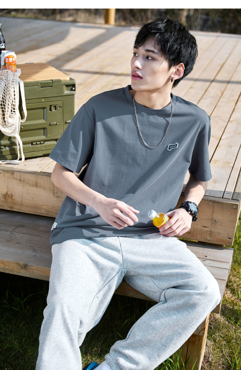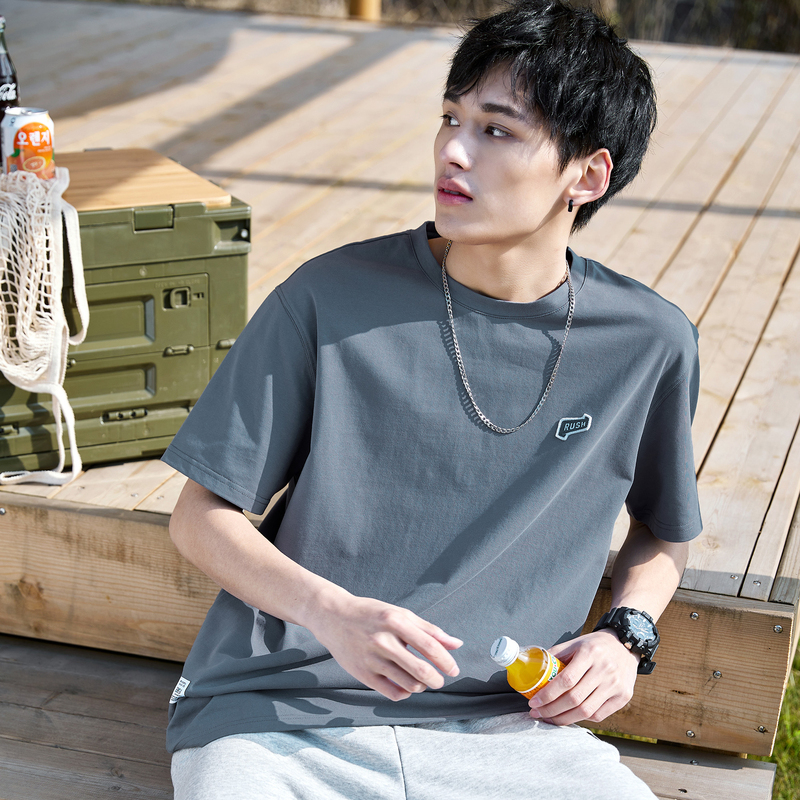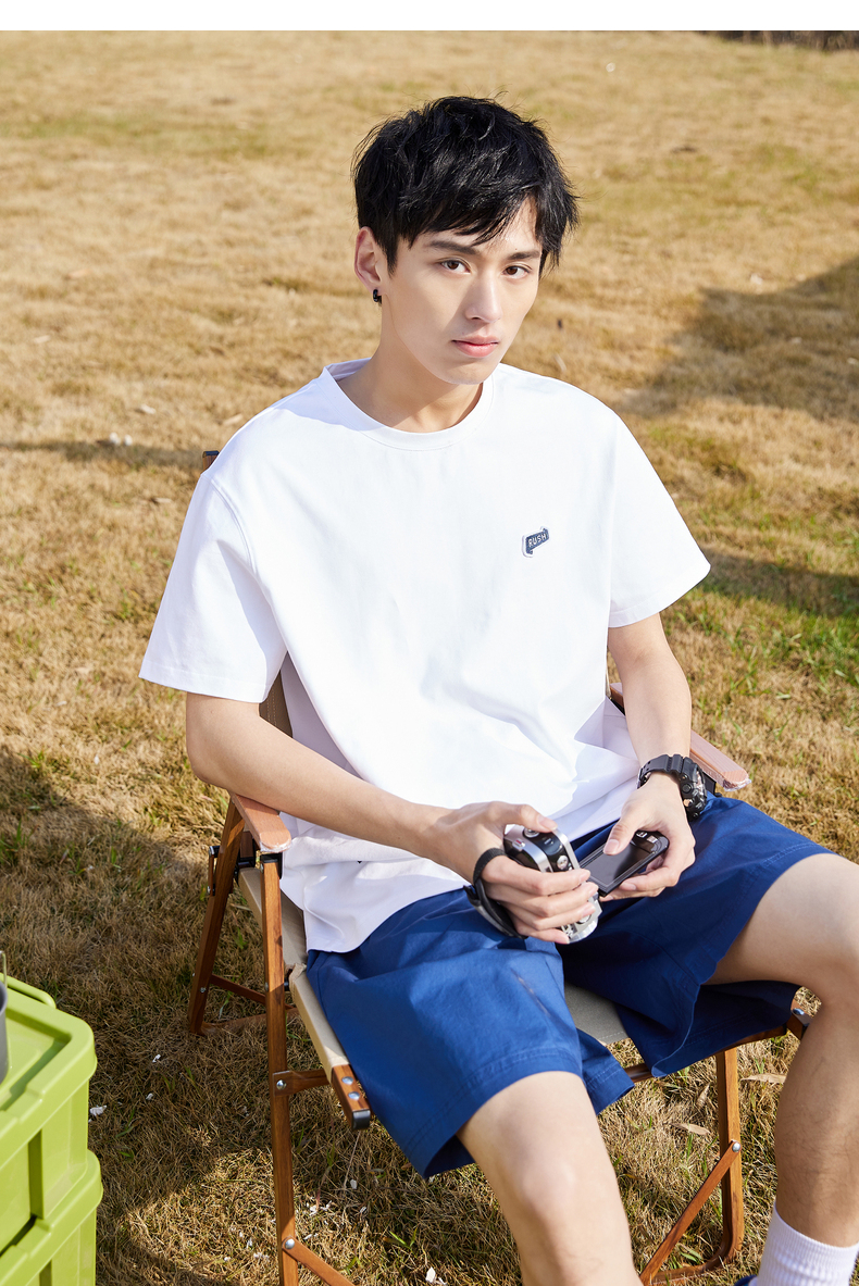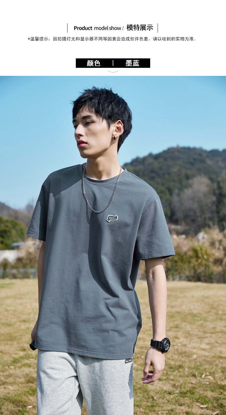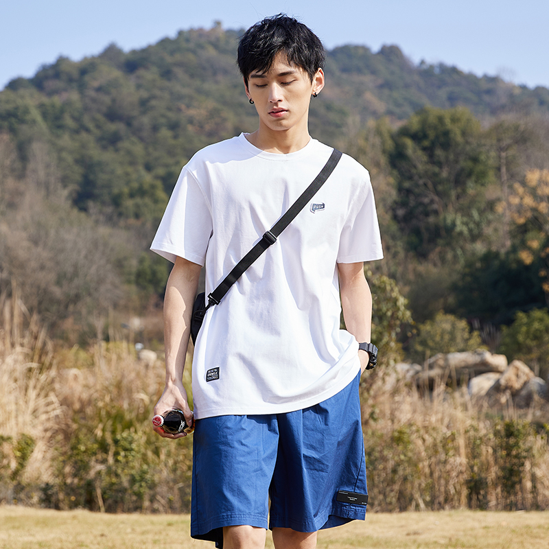 唐獅2022夏季新款短袖T恤男基礎純色半袖打底衫學生純棉日系內搭