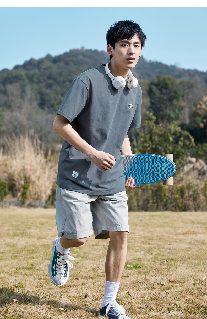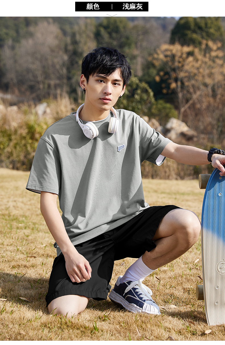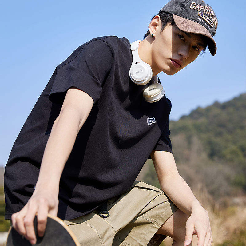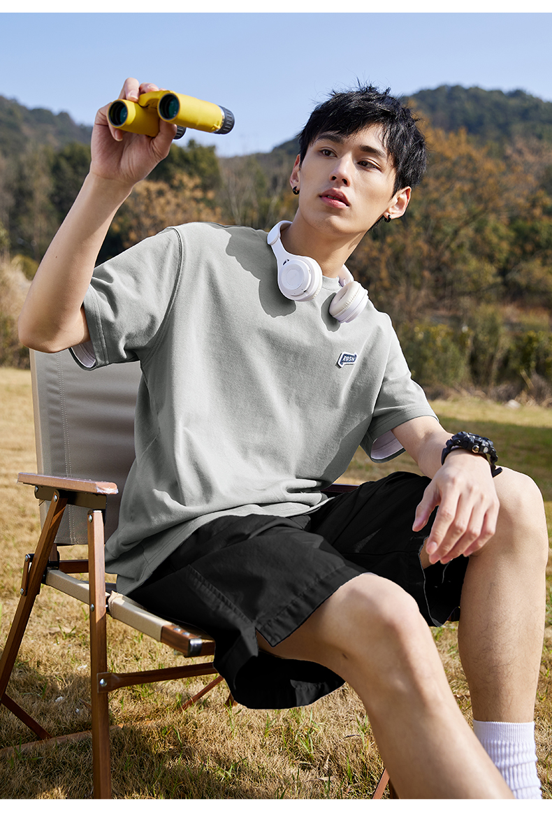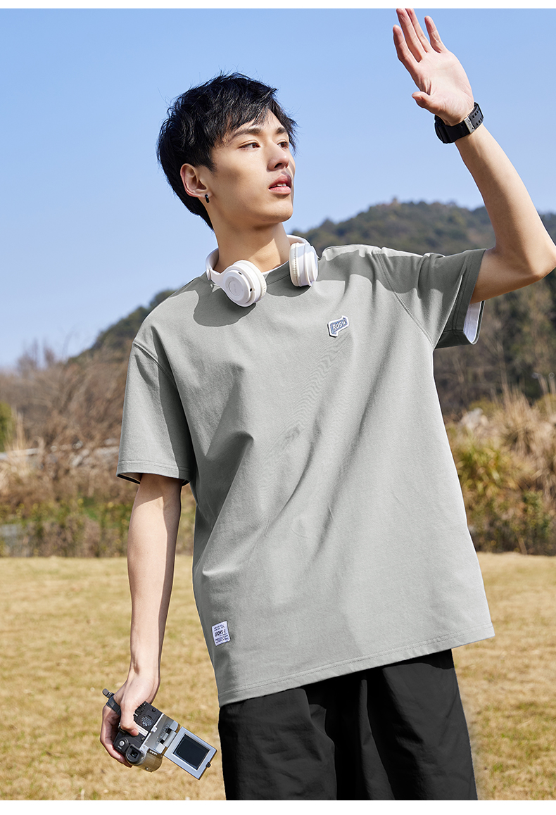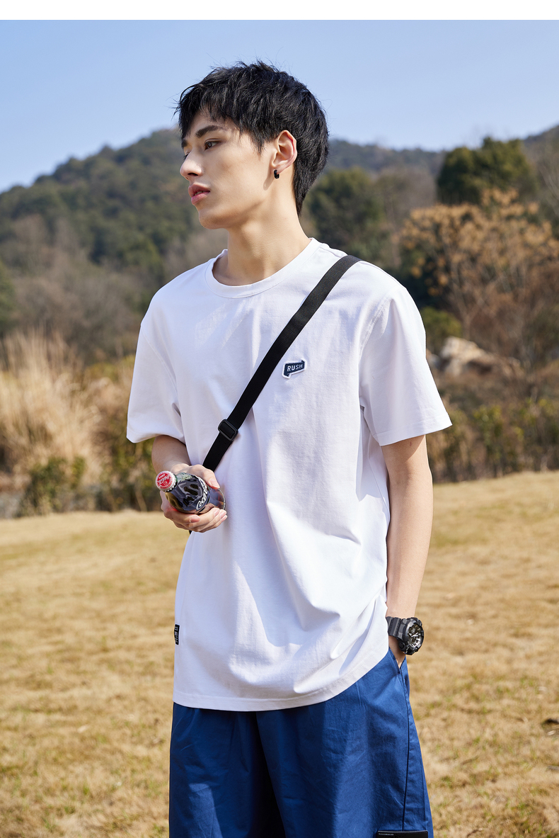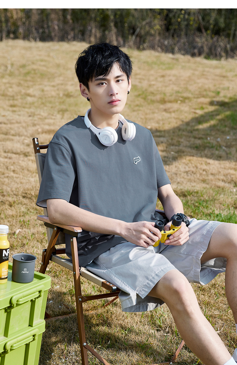 唐獅2022夏季新款短袖T恤男基礎純色半袖打底衫學生純棉日系內搭