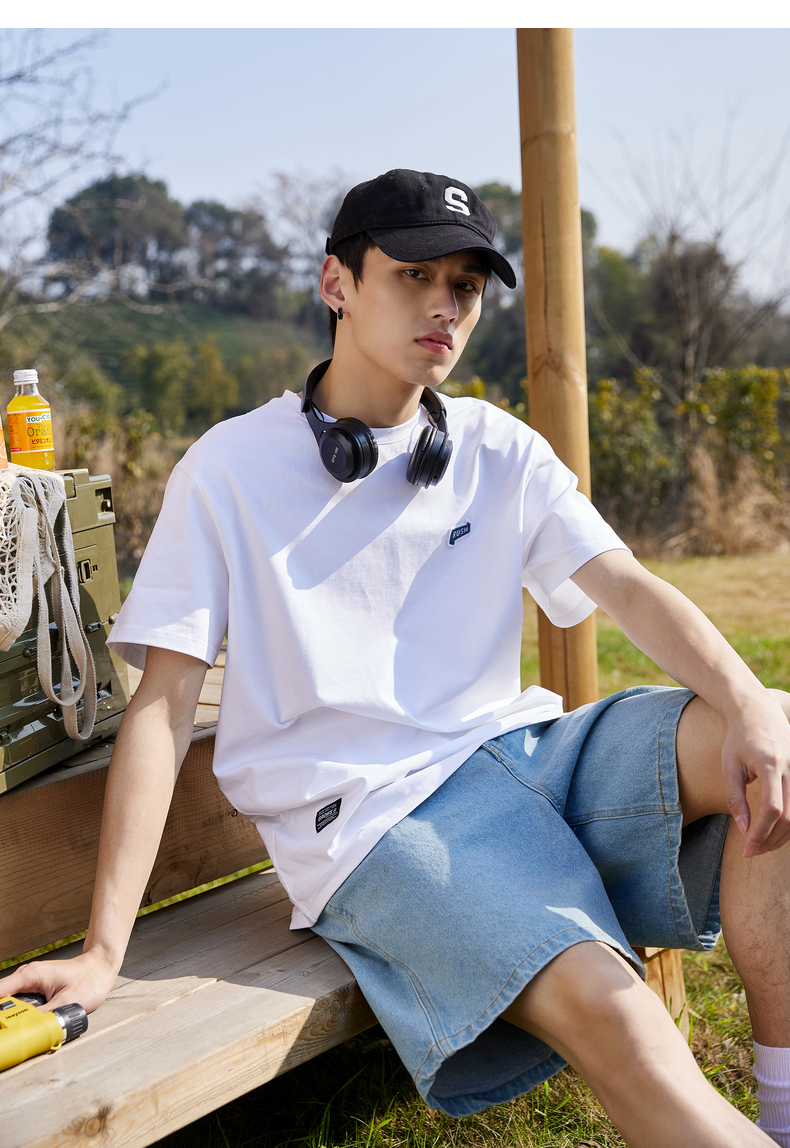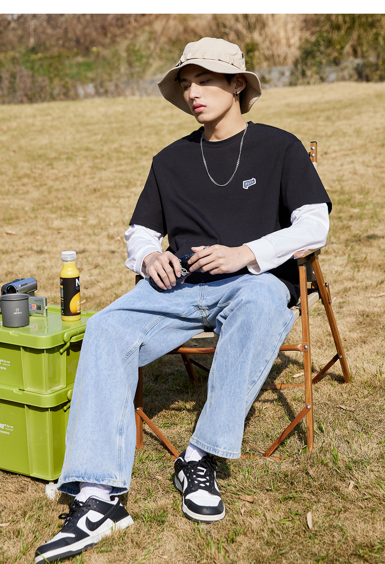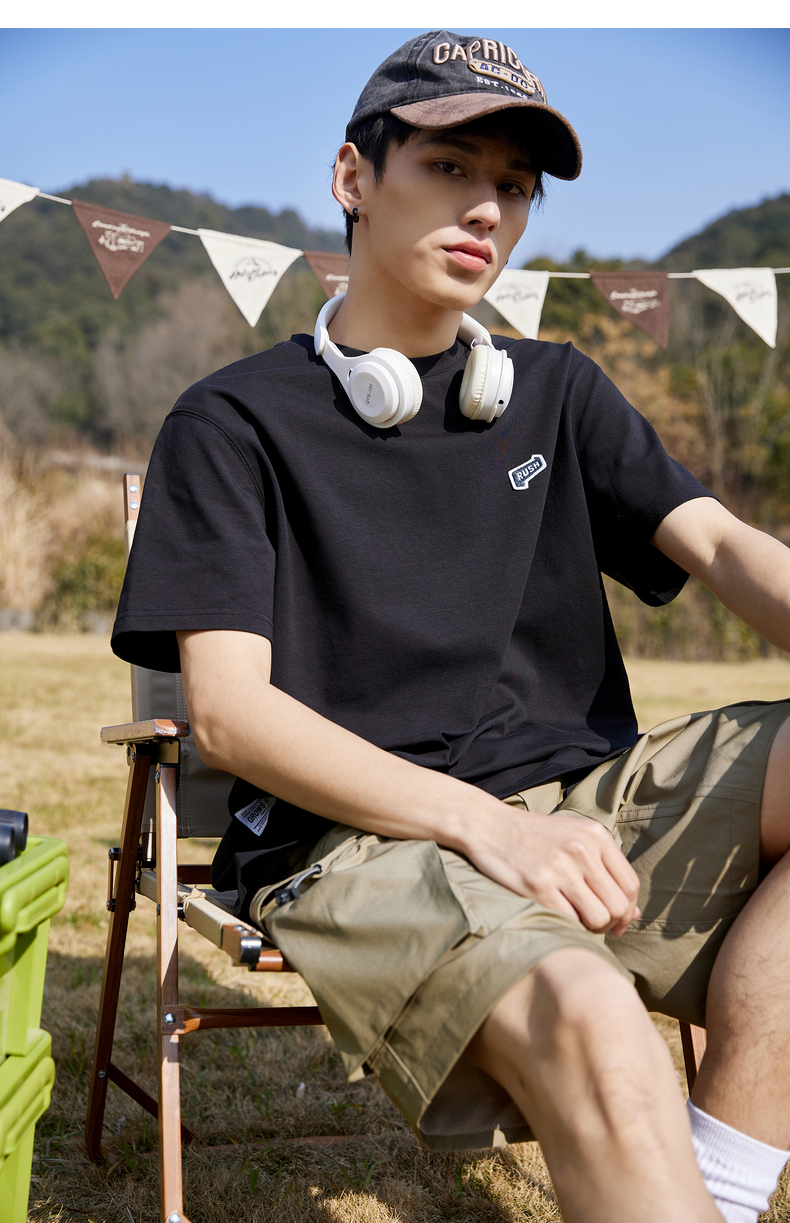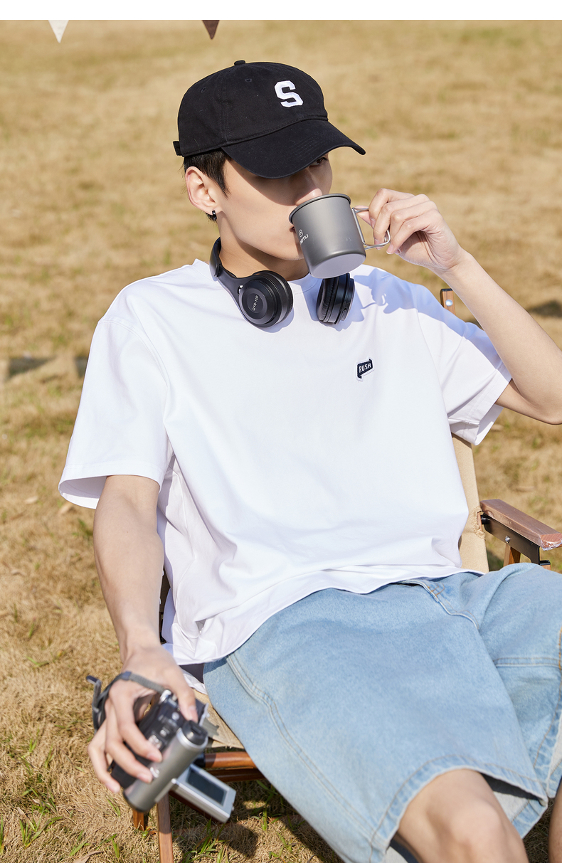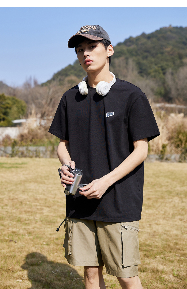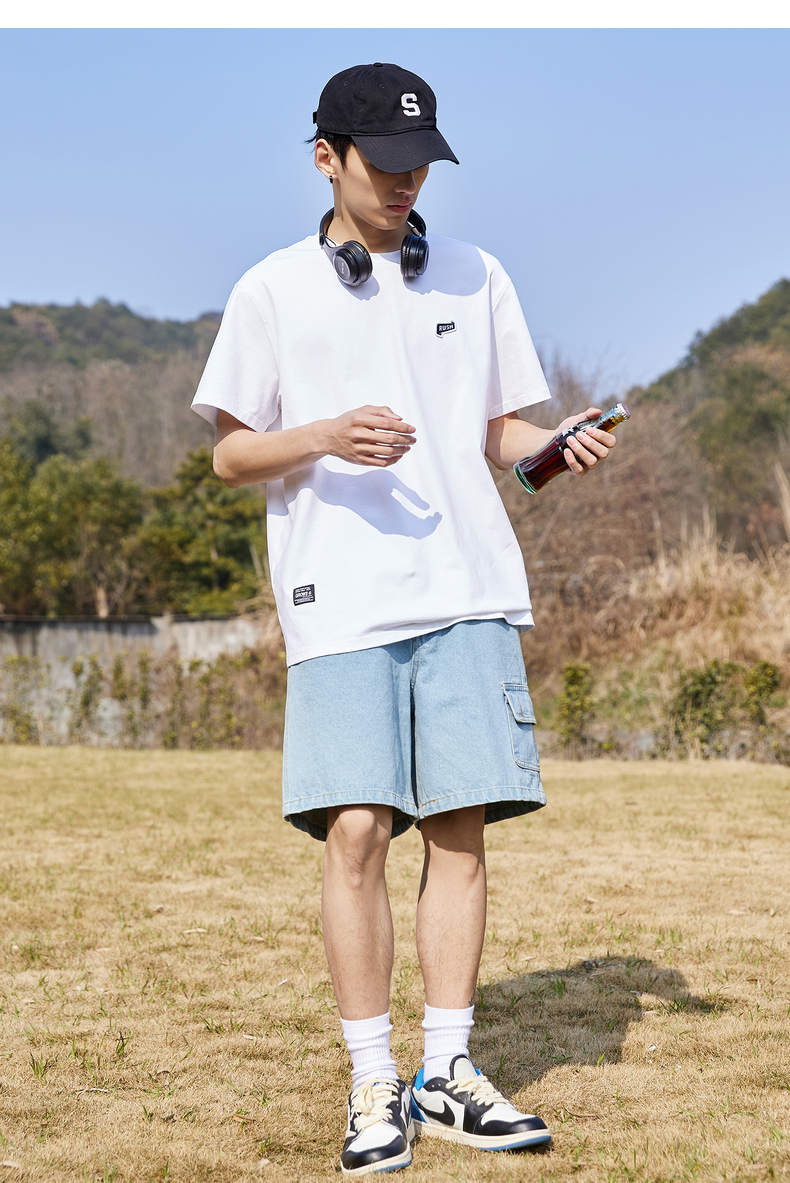 唐獅2022夏季新款短袖T恤男基礎純色半袖打底衫學生純棉日系內搭