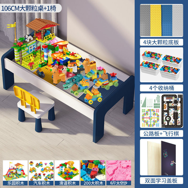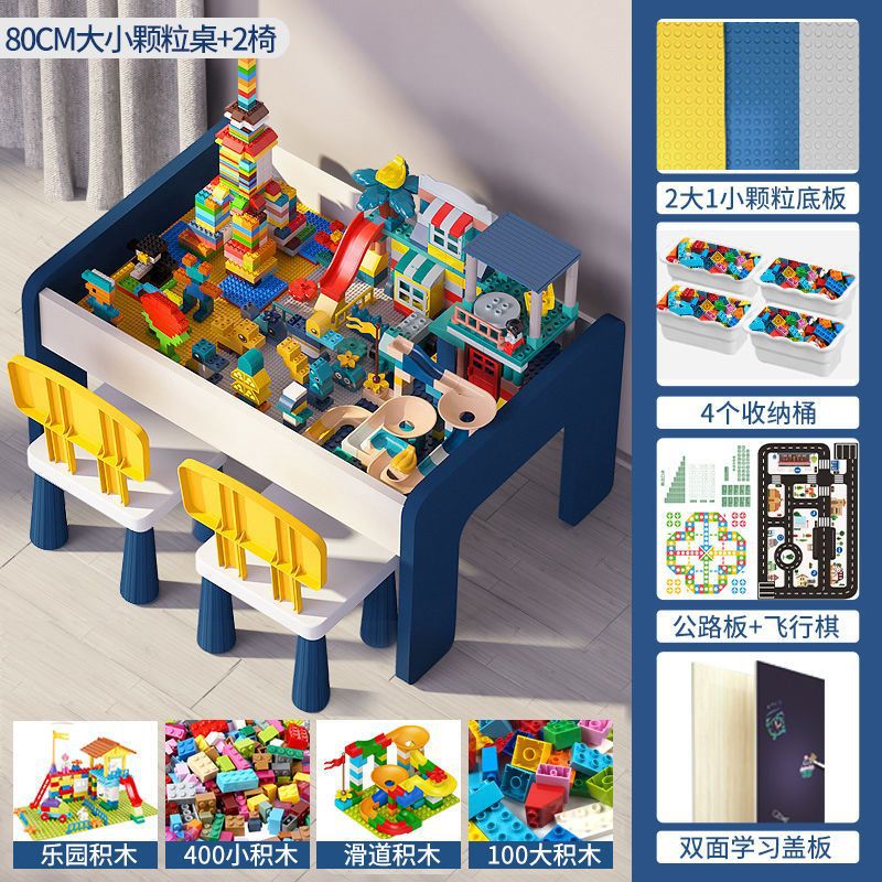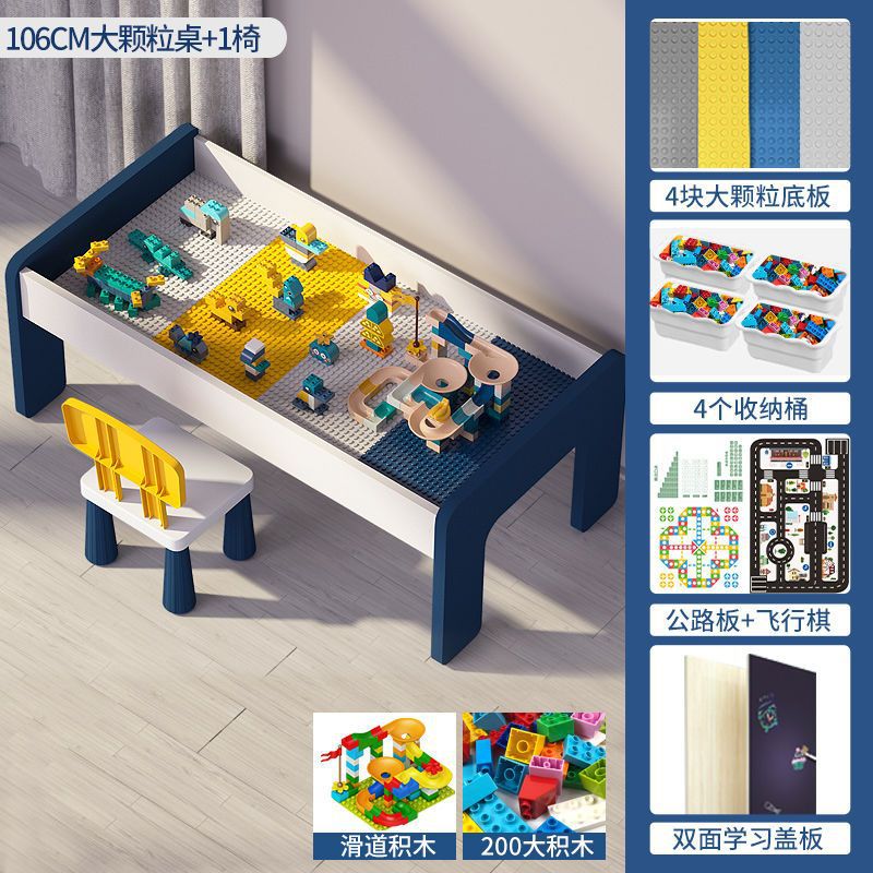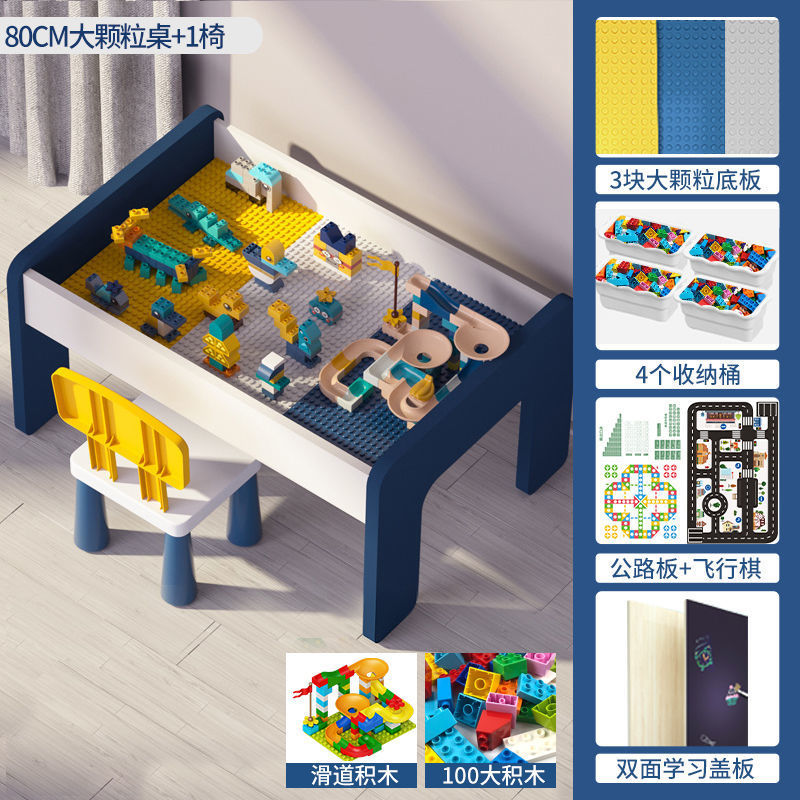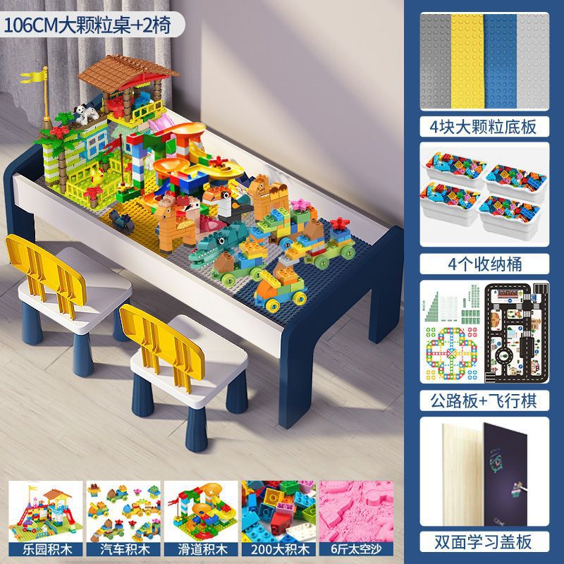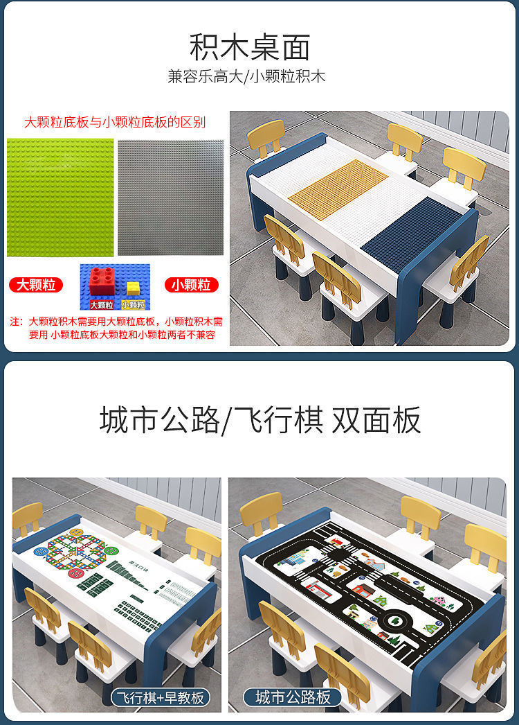兼容乐高积木桌子多功能儿童大颗粒拼装玩具桌宝宝游戏大尺寸实木