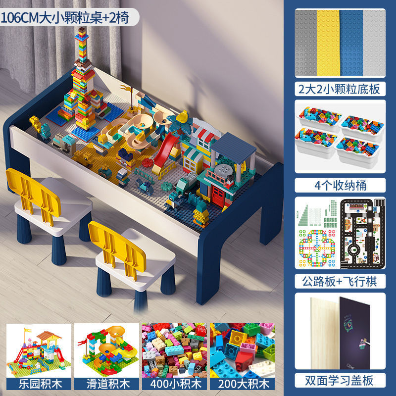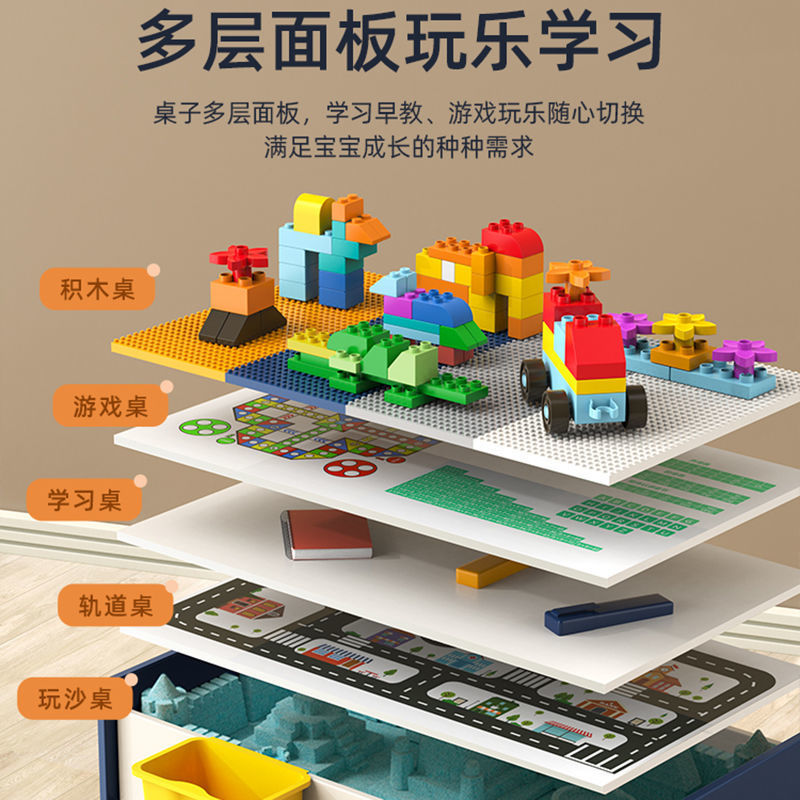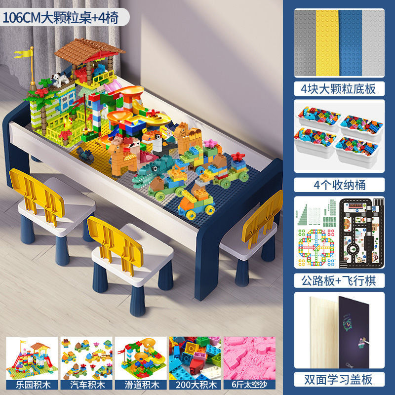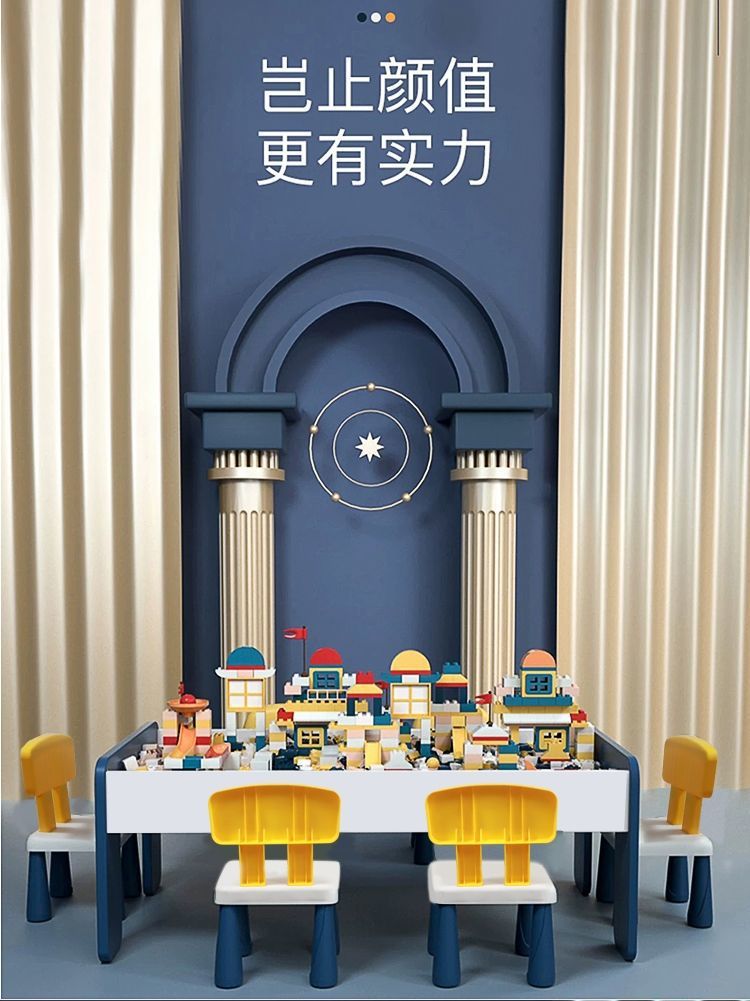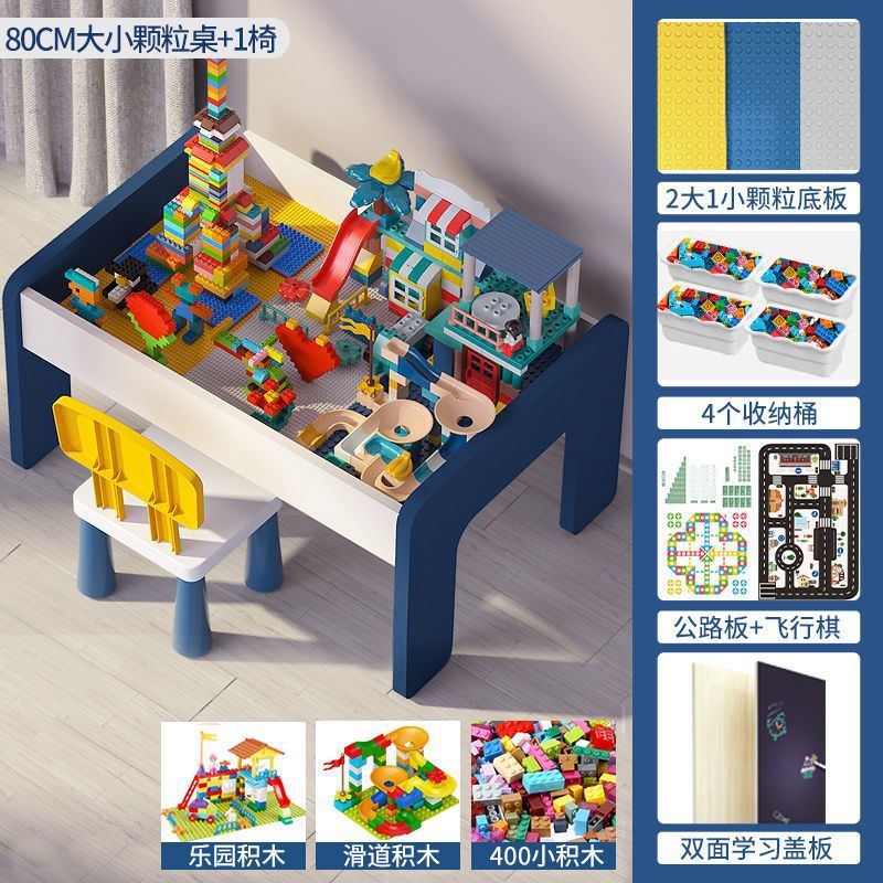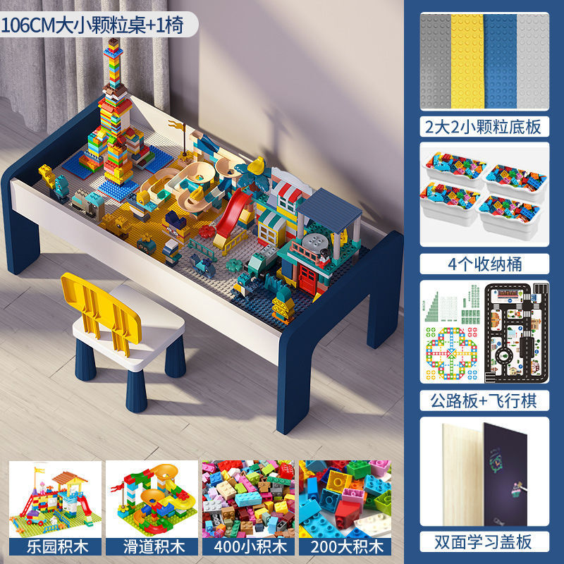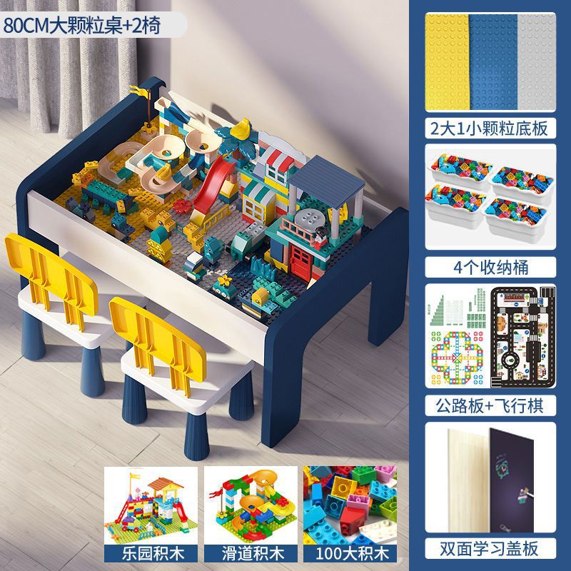 兼容乐高积木桌子多功能儿童大颗粒拼装玩具桌宝宝游戏大尺寸实木