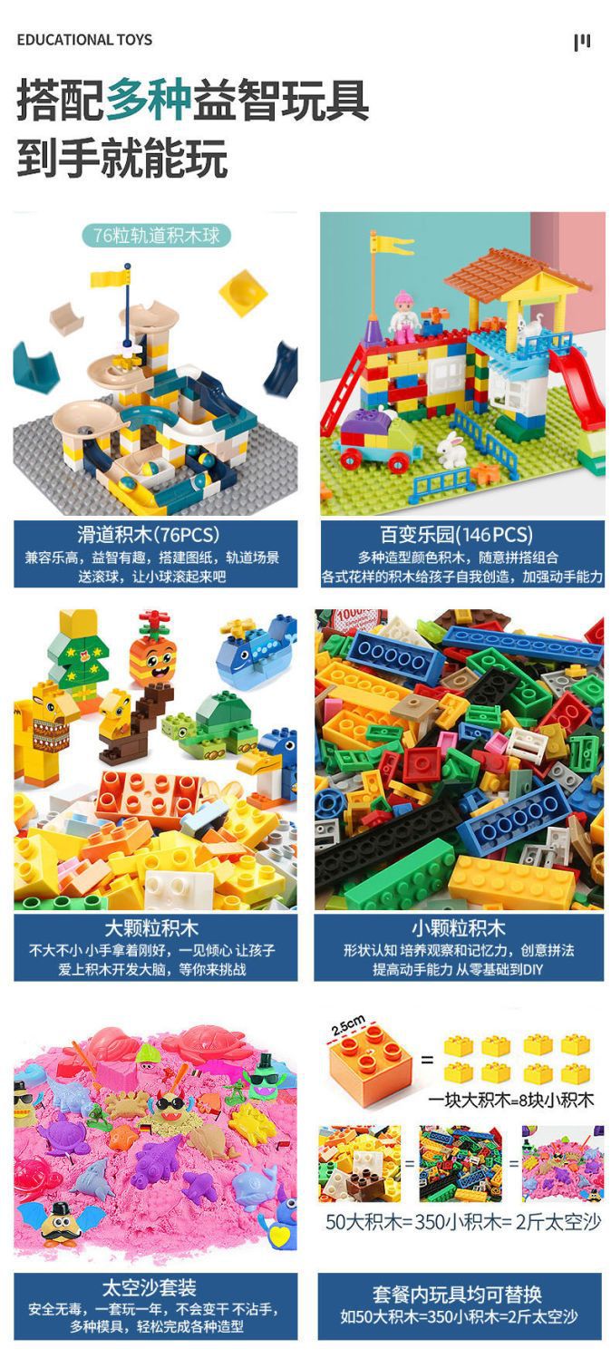 颜色 80款+3块大颗粒底板(无赠品),80大颗粒桌+1椅+2斤沙+83滑道,80大颗粒+1椅100大颗粒+滑道,80大颗粒+2椅+100大颗粒+滑道,80大小颗粒+1椅400小积木+滑道,80大小+1椅乐园+400小+滑道,80大小+2椅乐园+400小+滑道,106特惠款+4大颗粒底板(无赠品),106大+1椅+乐园+4沙+滑道,106大+2椅+乐园+4沙+滑道,106大+4椅+乐园+4沙+滑道,106大小+1椅+200大+滑道,106大小+1椅+积木顶配套餐,106大小+2椅+积木顶配套餐,106大小+4椅+积木顶配套餐,106大小1椅+积木顶配套餐+6斤沙,106大小2椅+积木顶配套餐+6斤沙,106大小4椅+积木顶配套餐+6斤沙,106大+1椅+汽车乐园套餐+6斤沙,106大+2椅+汽车乐园套餐+6斤沙,106大+4椅+汽车乐园套餐+6斤沙