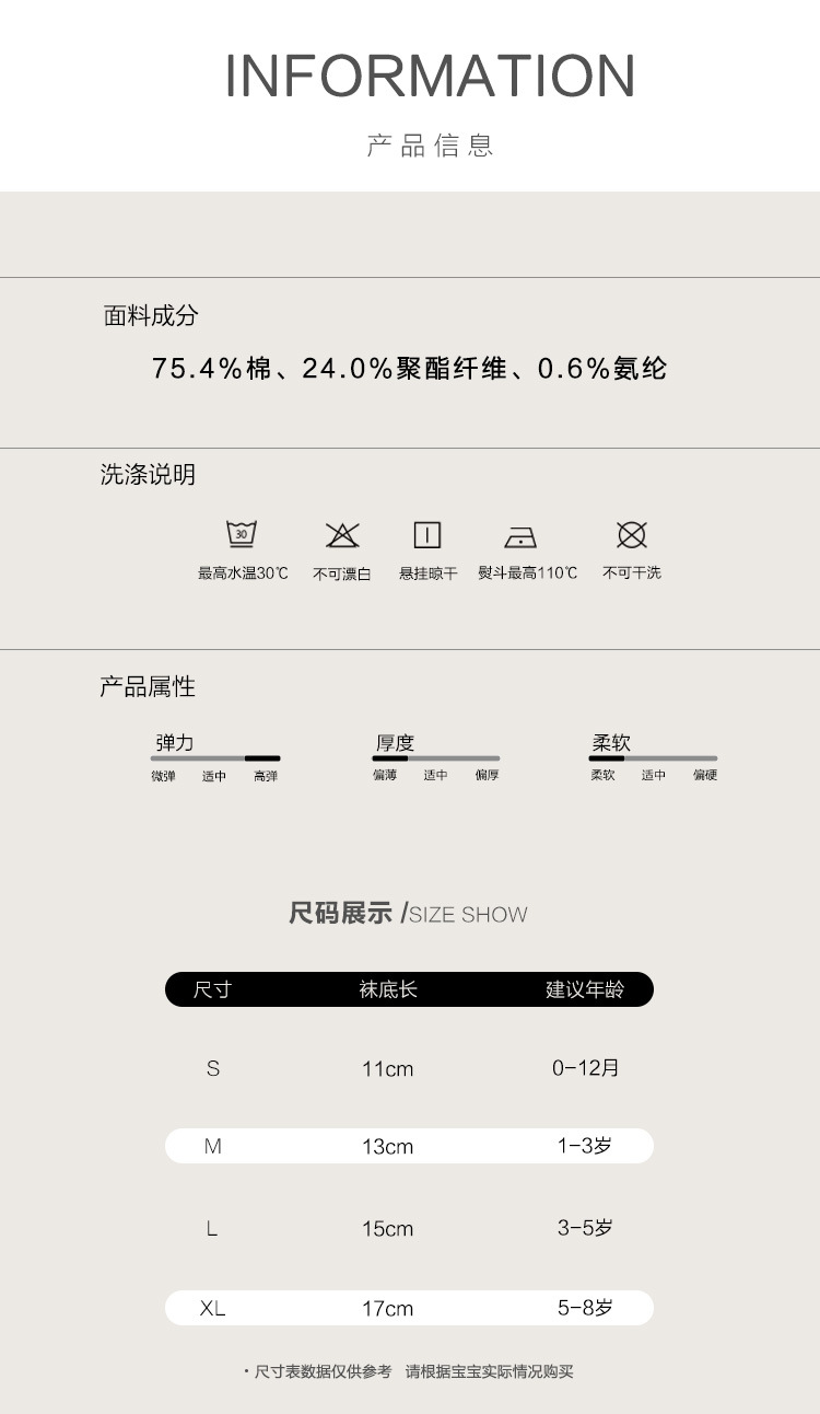 童袜尺码 S码0-1岁,M码1-3岁,L码3-5岁,XL码5-8岁