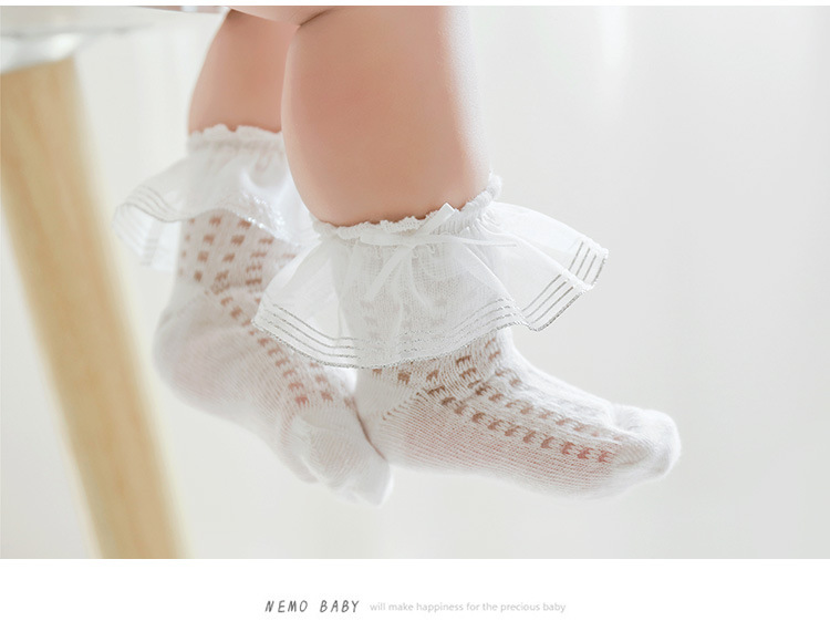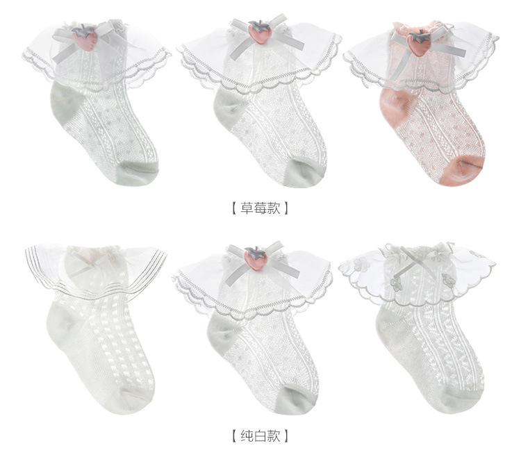 新款女童袜子超薄婴儿袜子夏季宝宝网眼袜儿童花边袜0-1岁公主袜