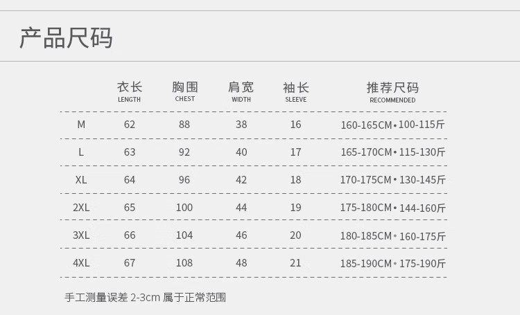 尺碼 M,L,XL,2XL,3XL,4XL,尺碼偏小,建議根據推薦尺碼下單