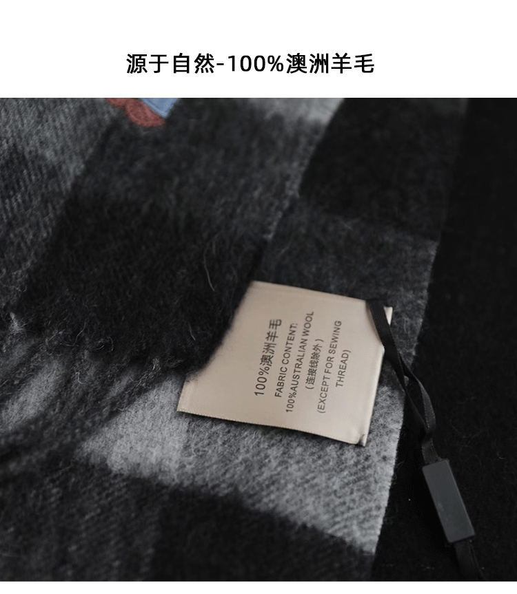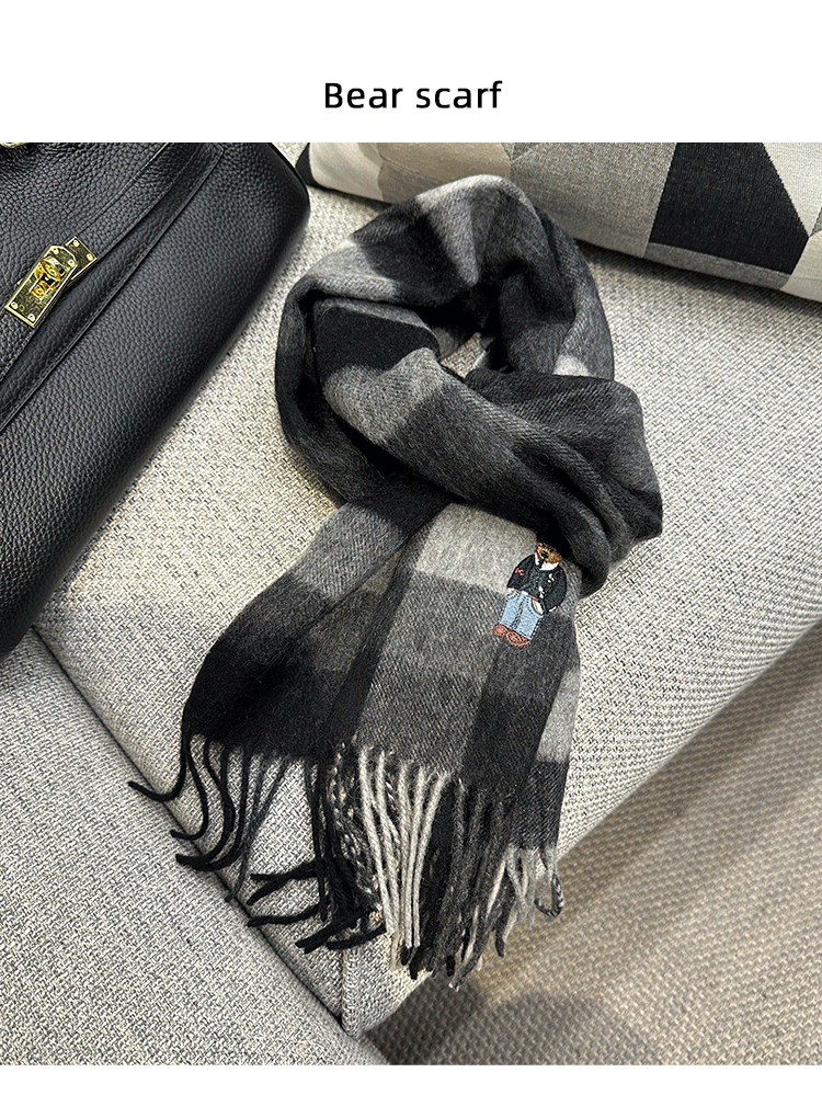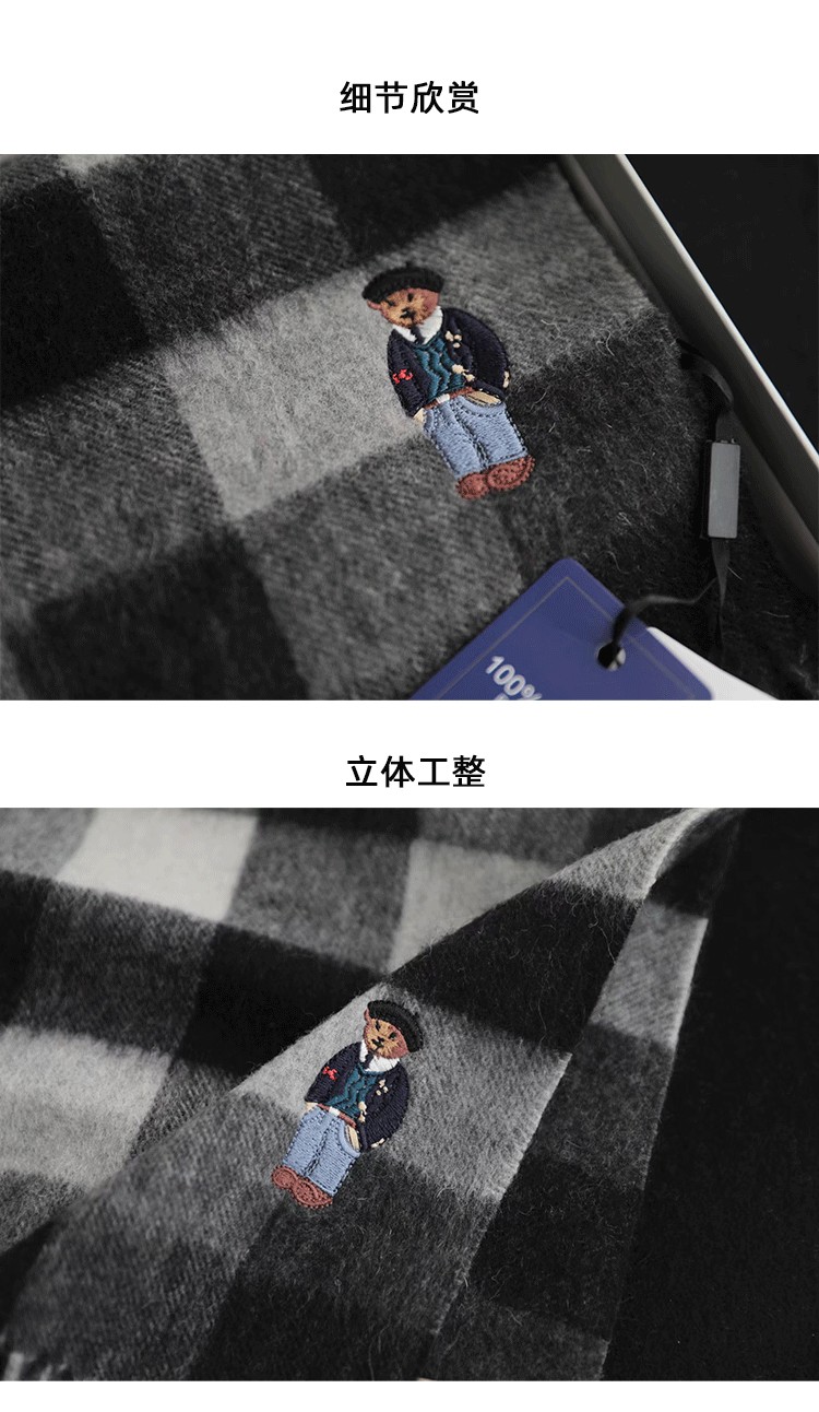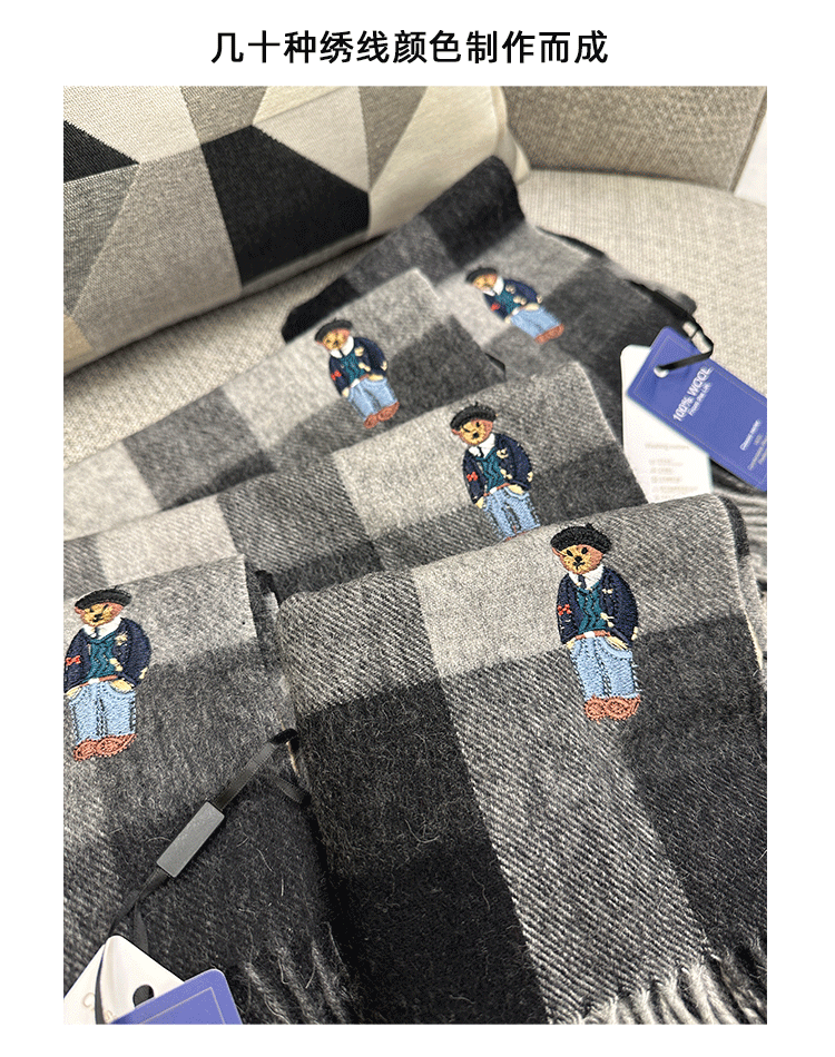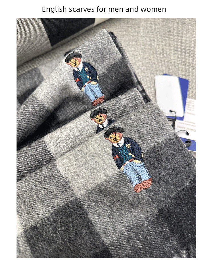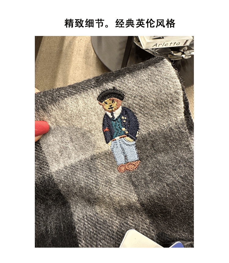 限量發售!英倫經典小熊100%澳洲羊毛圍巾女冬季格子百搭情侶圍脖