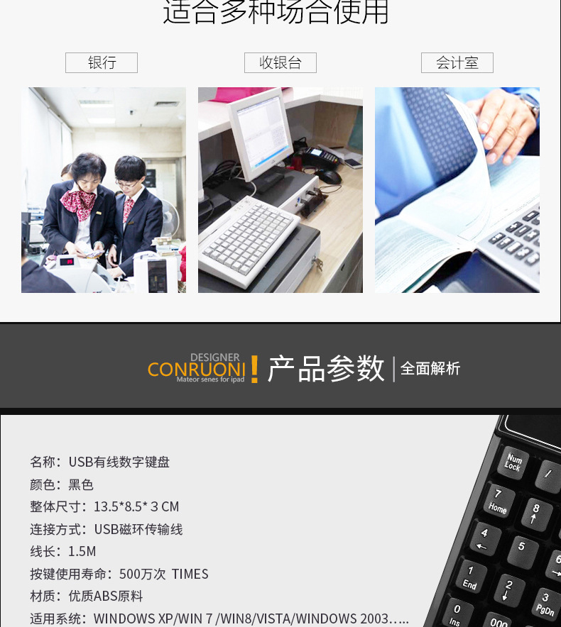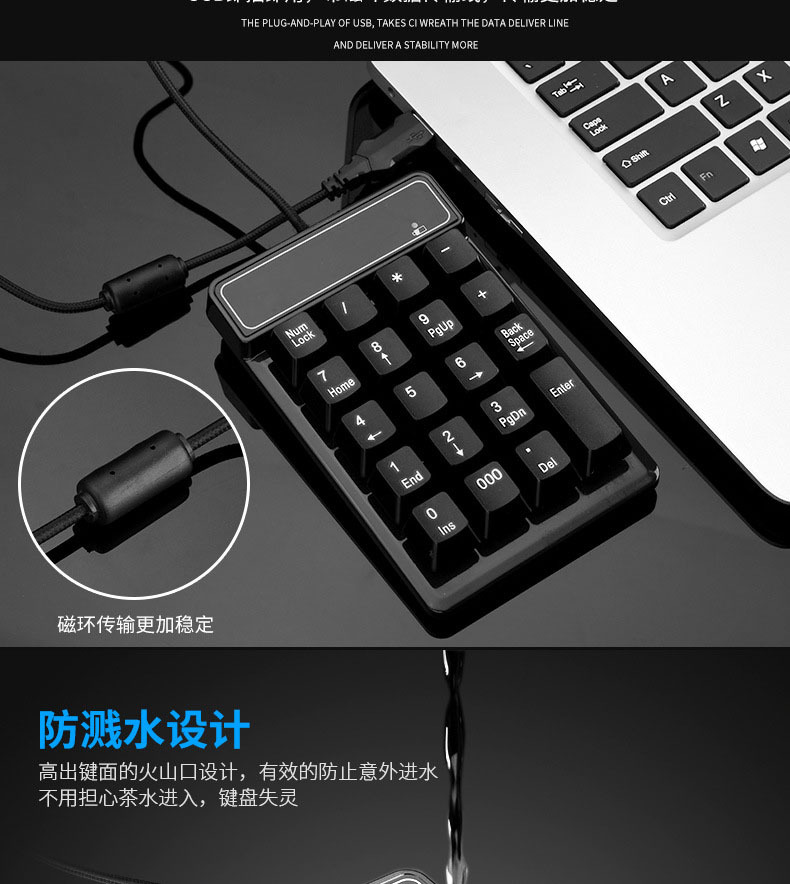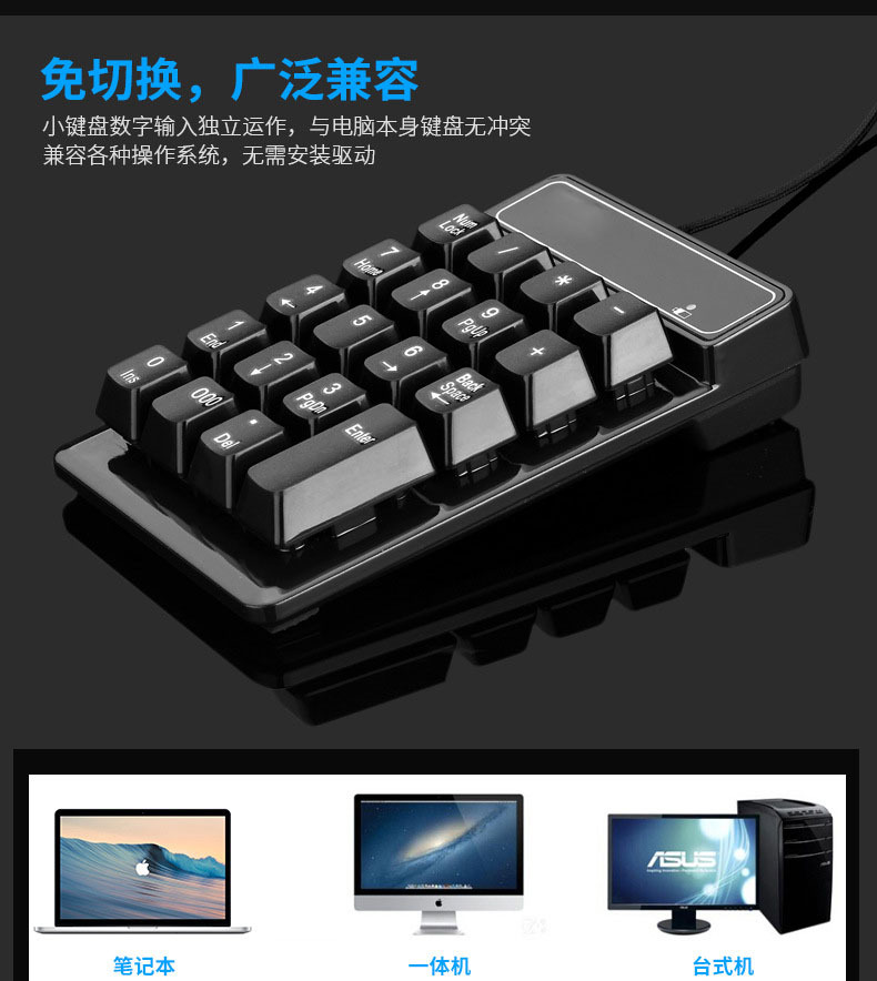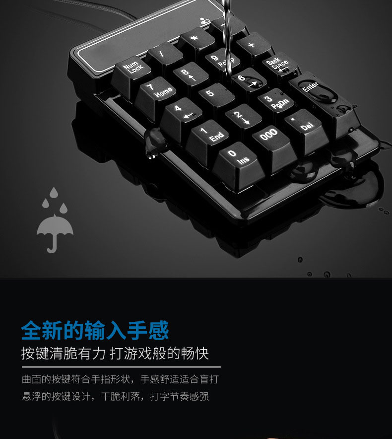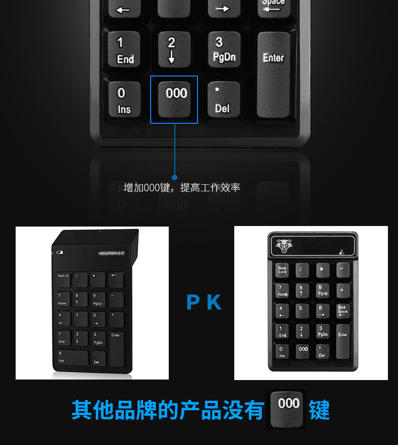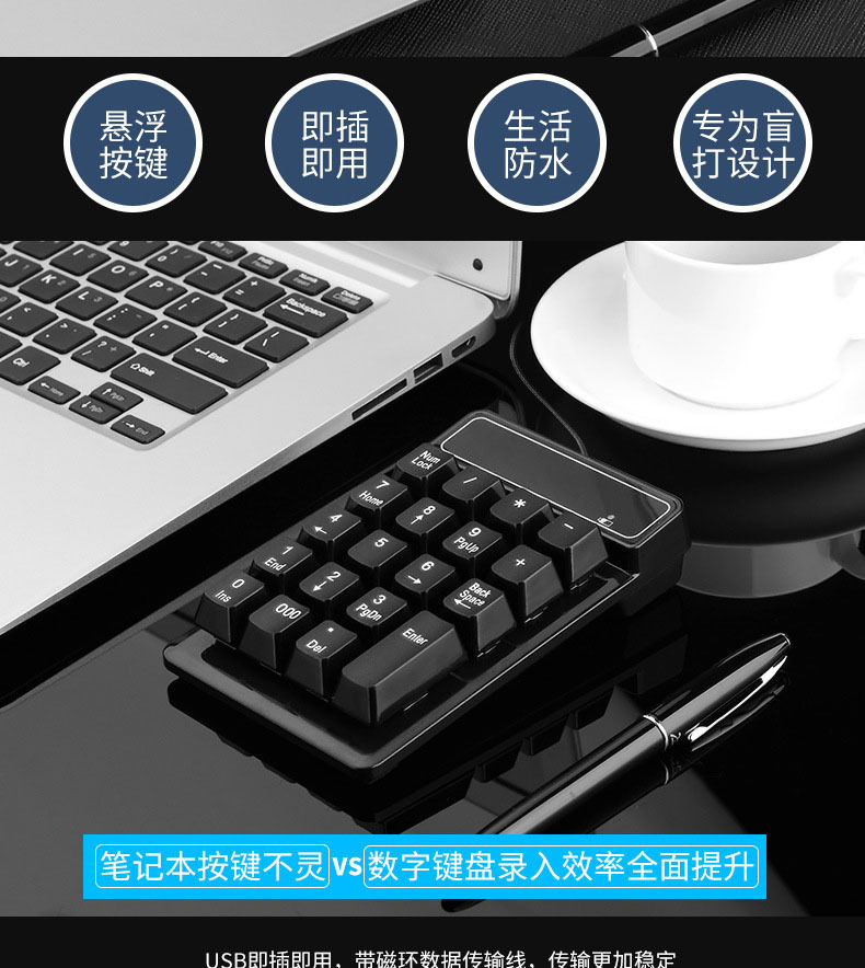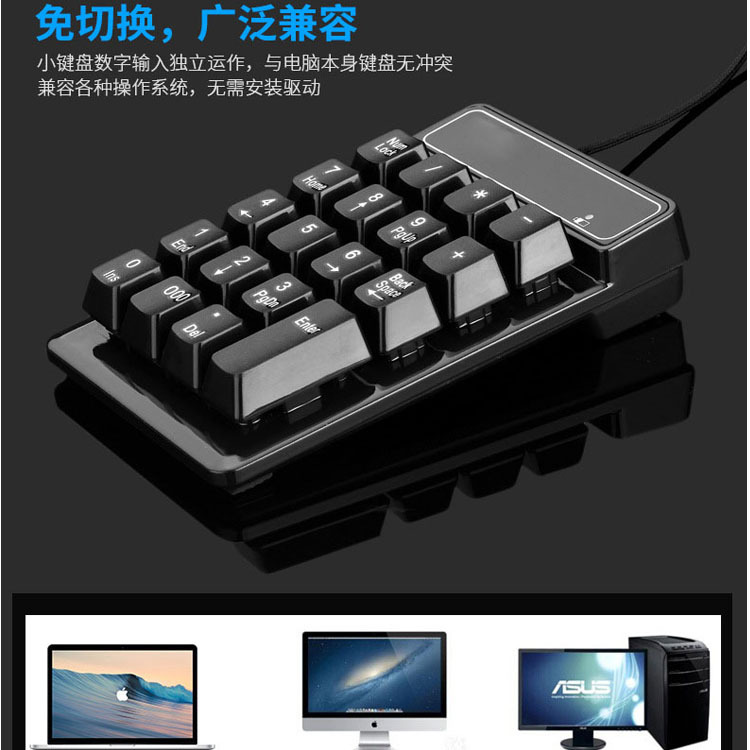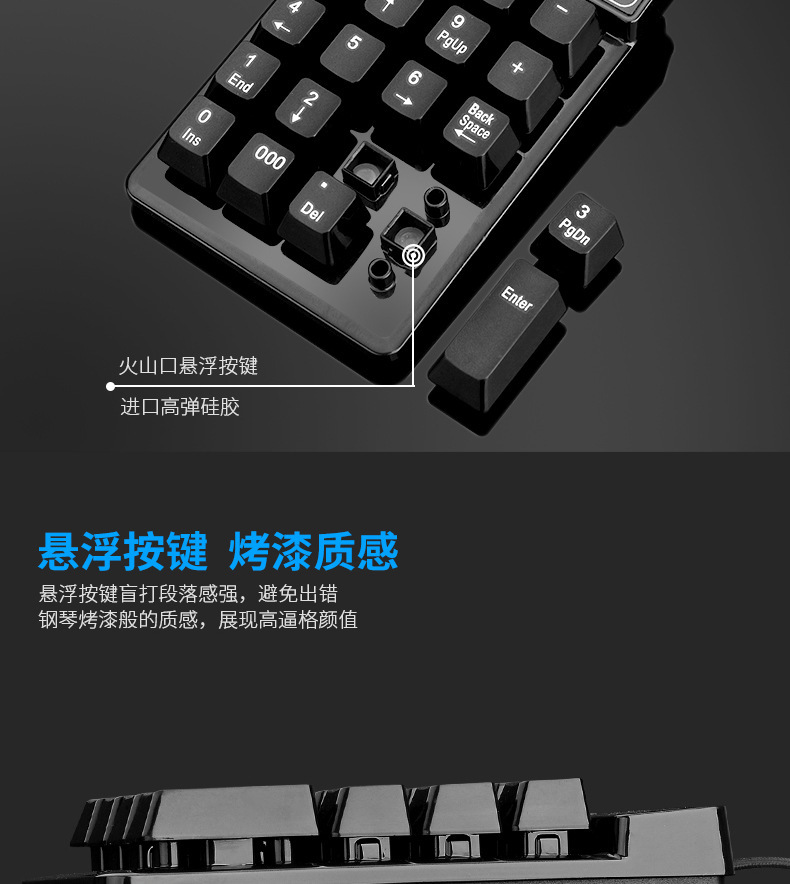 直供USB有线悬浮数字键盘财会银行机械手感3个0功能有线数字键盘