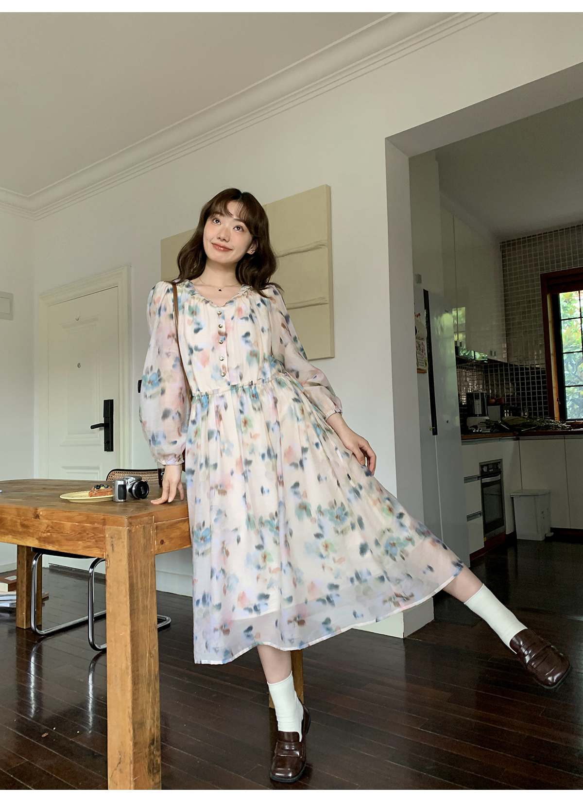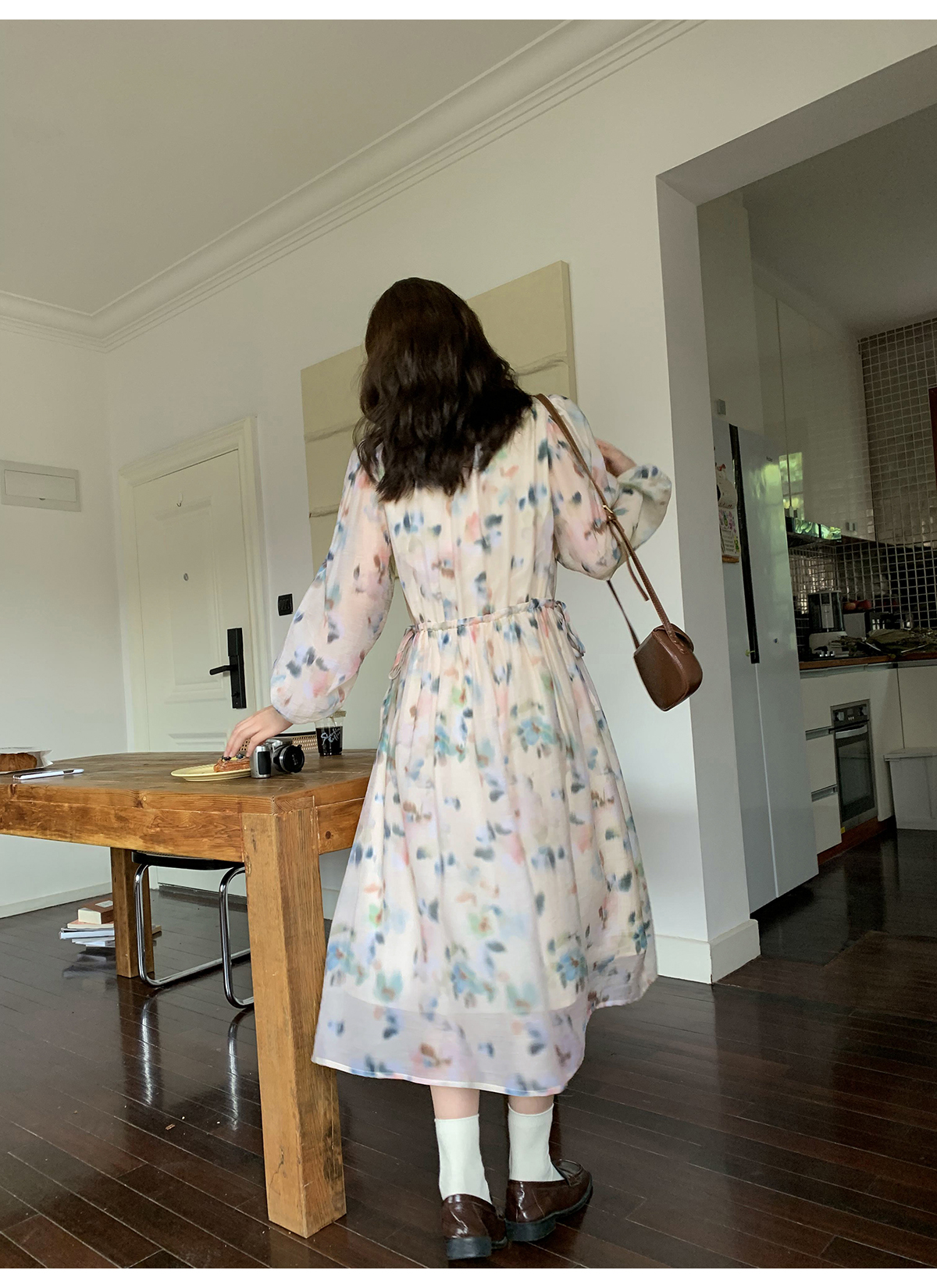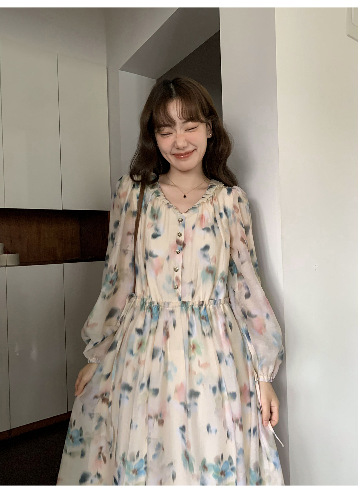 你好卡農 碎花長袖洋裝女早秋2023年新款小眾設計感氣質吊帶裙