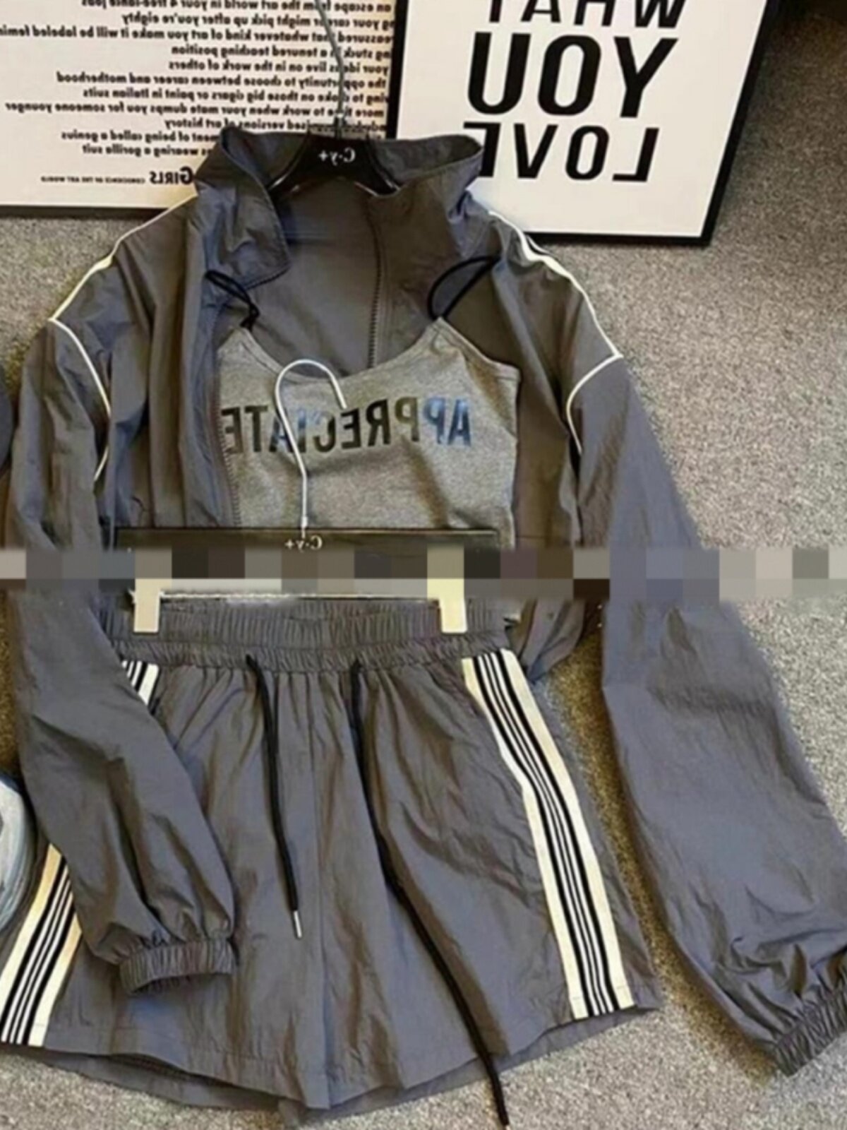 防曬運動服套裝女夏秋2023新款網紅炸街薄款衝鋒衣短褲休閒兩件式