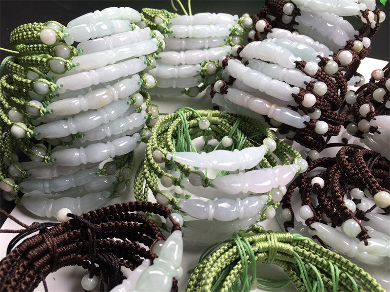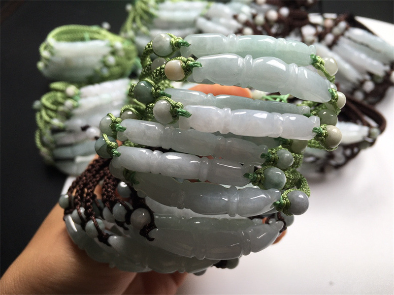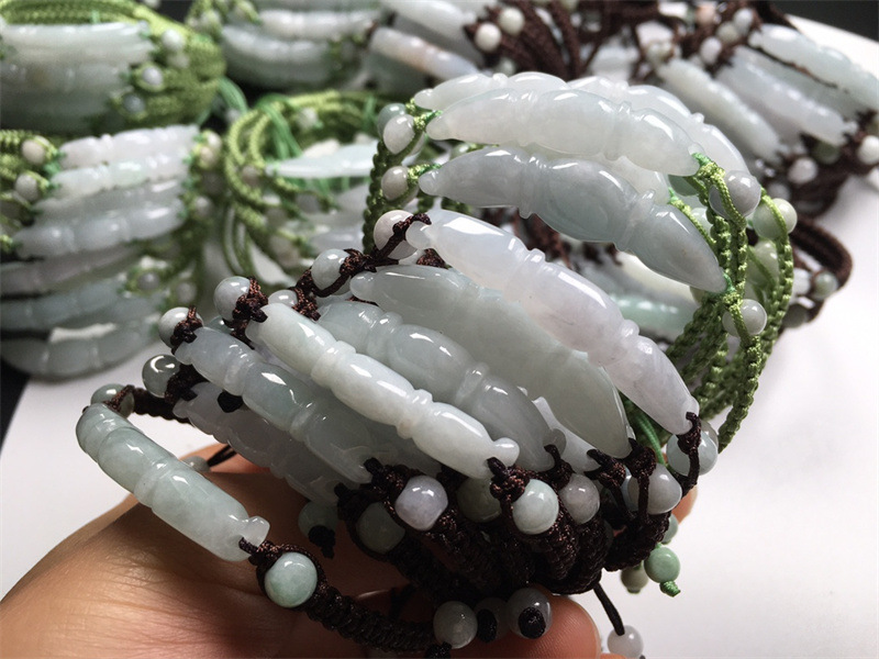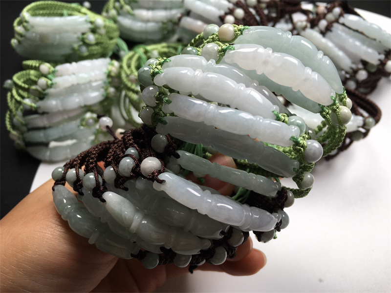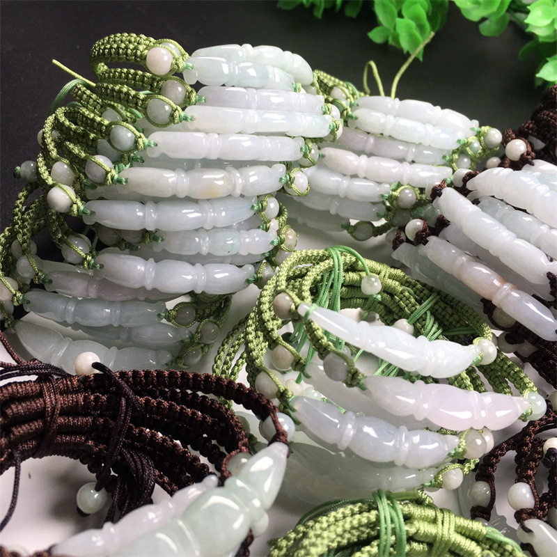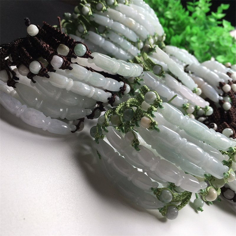 翡翠A货冰种莲藕手链 缅甸玉DIY手工编织玉手链饰品首饰厂家批发