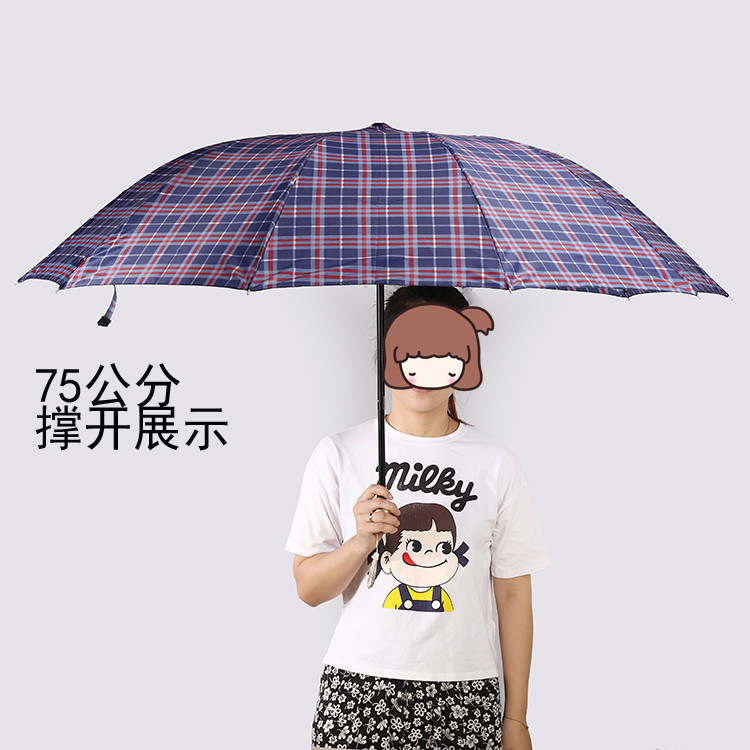 75公分格子雨伞加大加固十骨商务伞折叠伞家用晴雨两用伞厂家批发