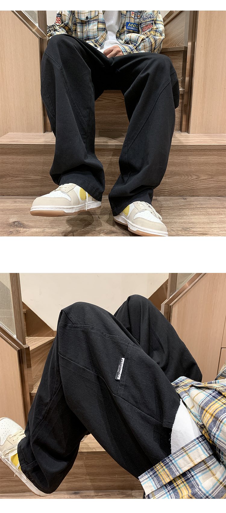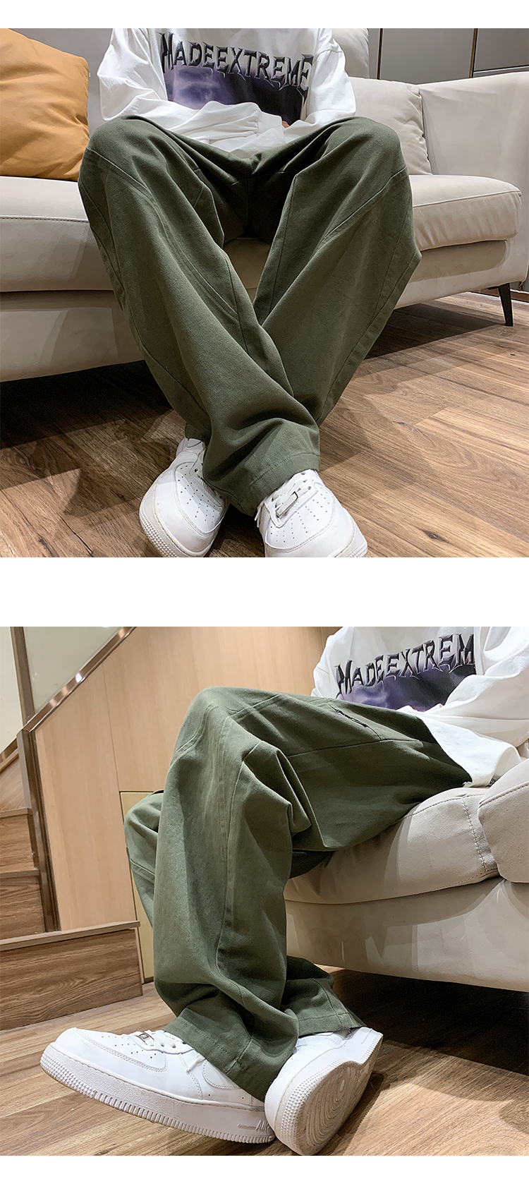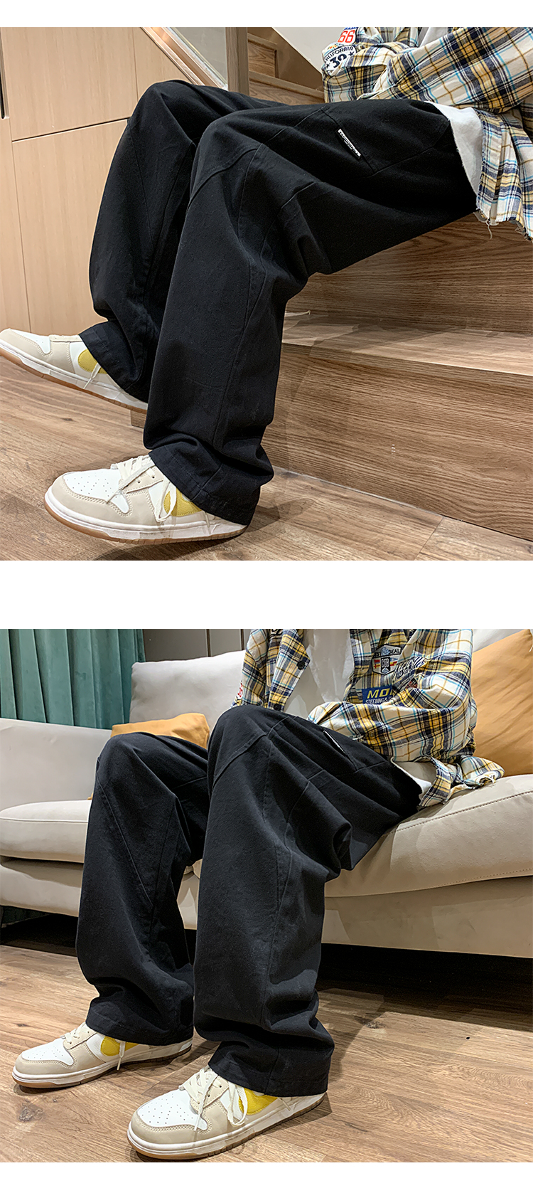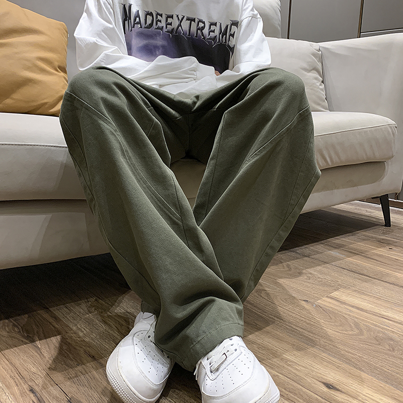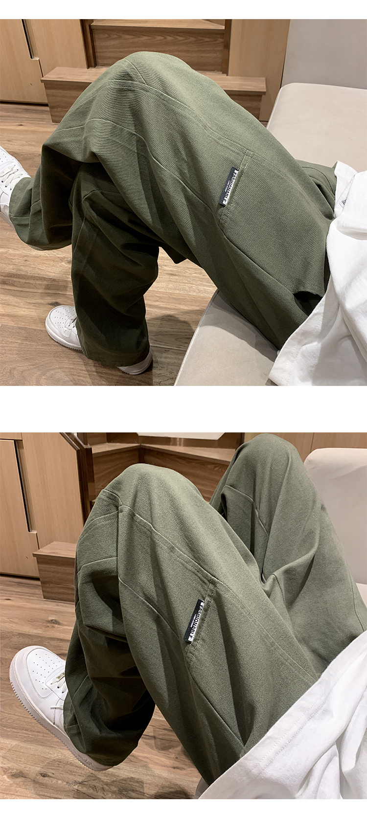 卡其色拼接直筒褲美式高街男設計感小眾oversize闊腿工裝褲ins潮