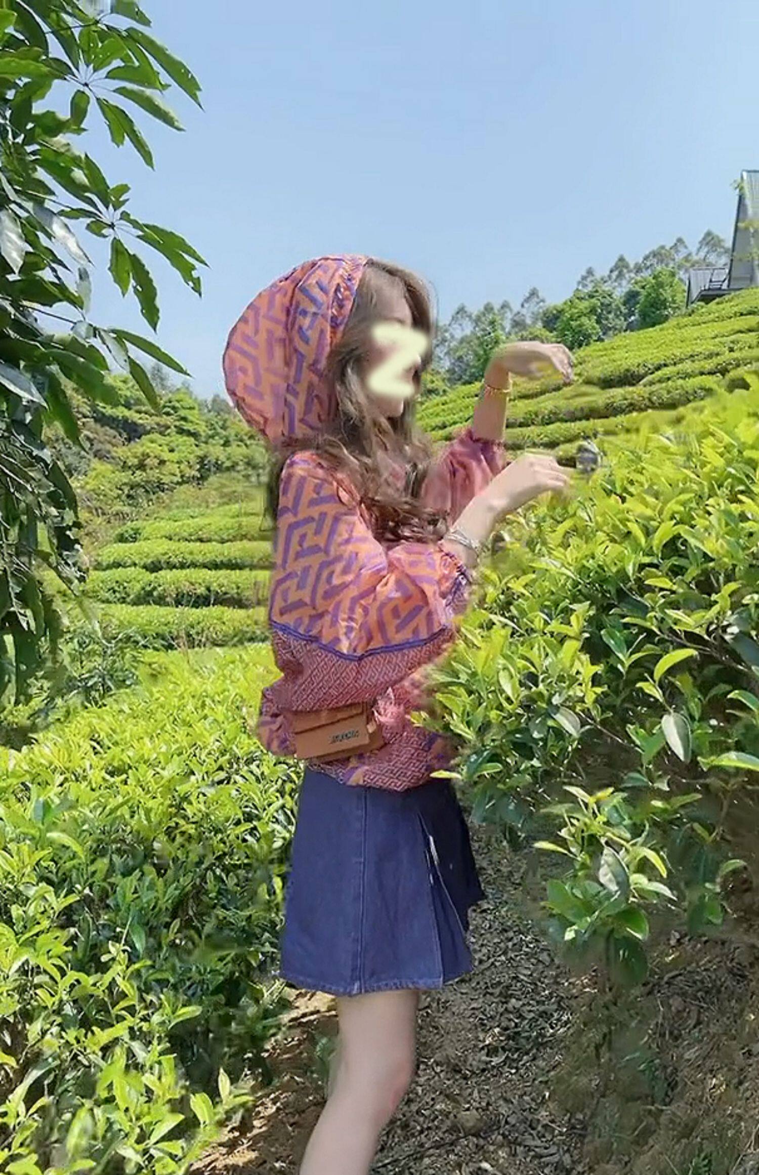 顏色分類 粉色外套,藍色短裙