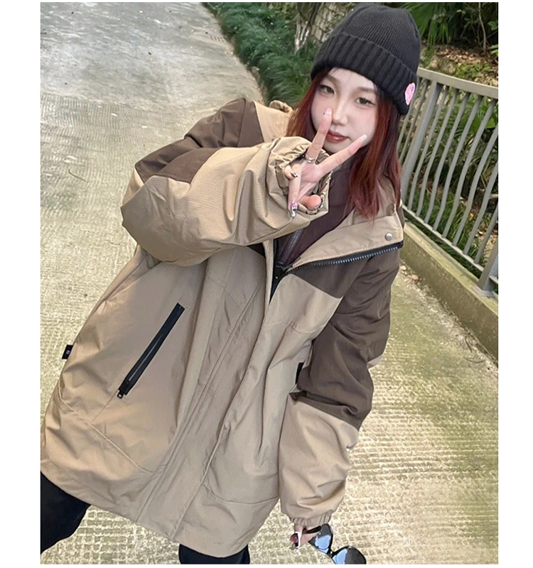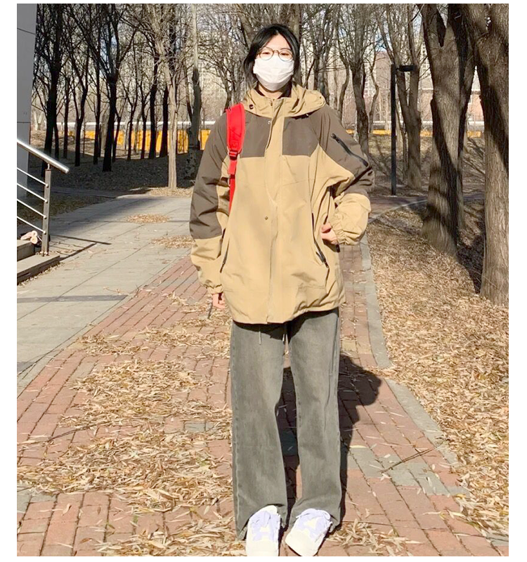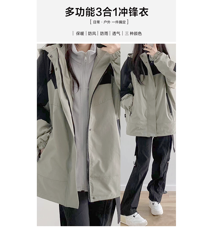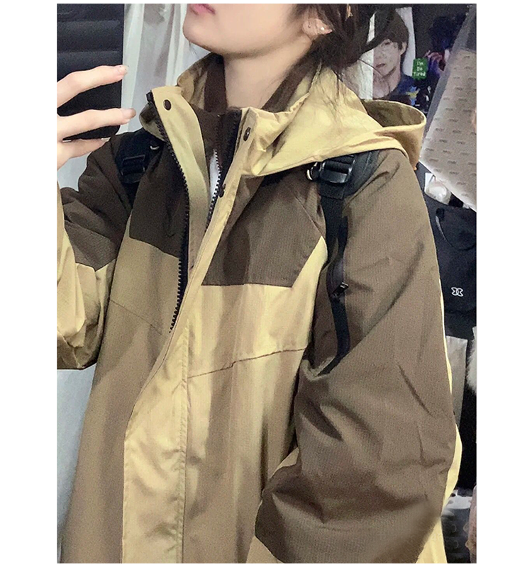 美式衝鋒衣女春秋西藏戶外三合一兩件套登山服加絨加厚外套男潮牌