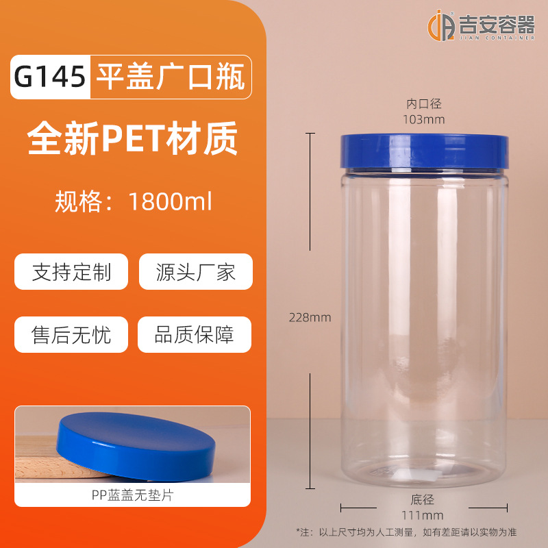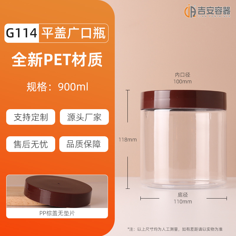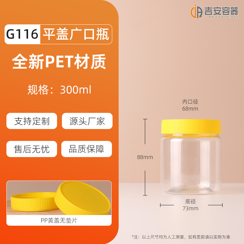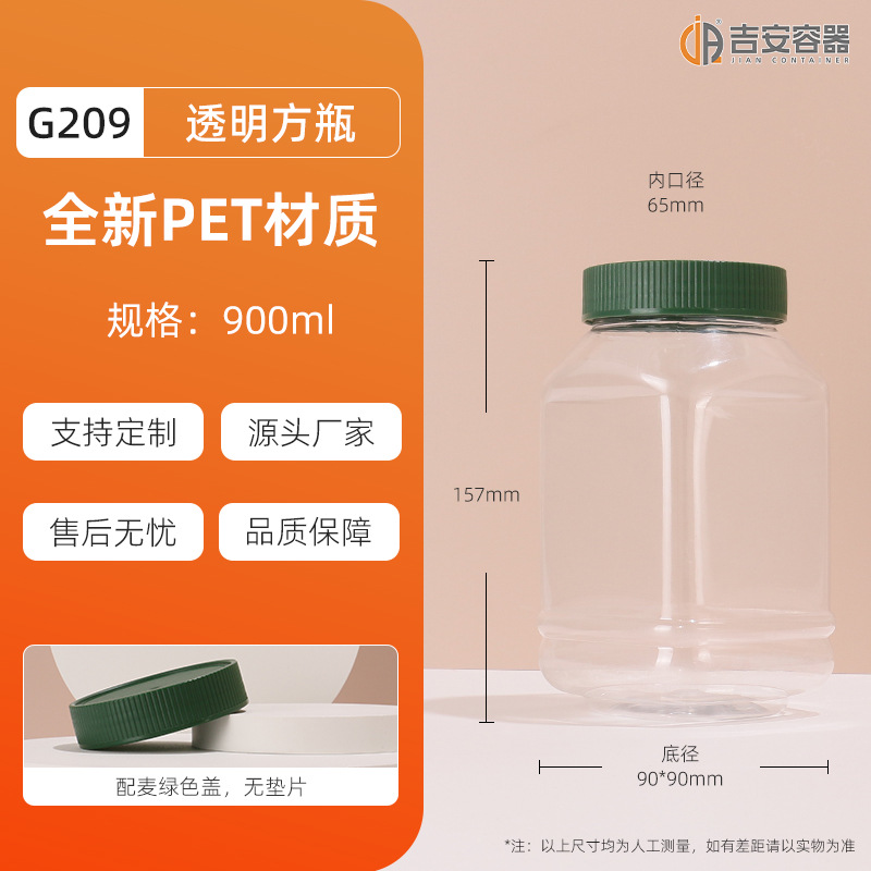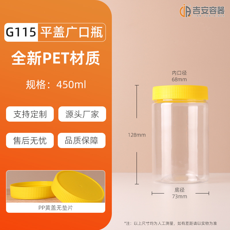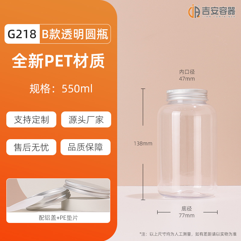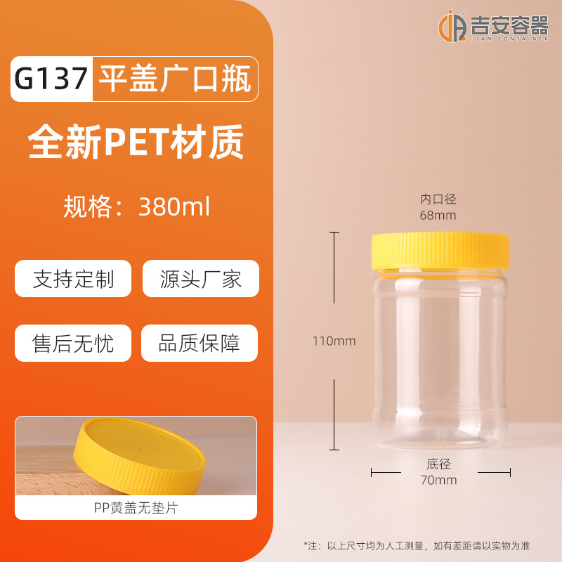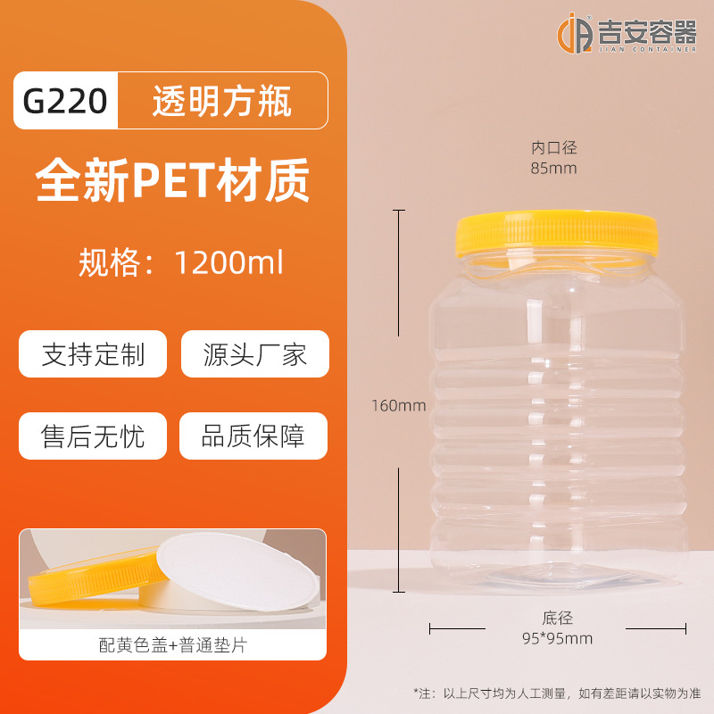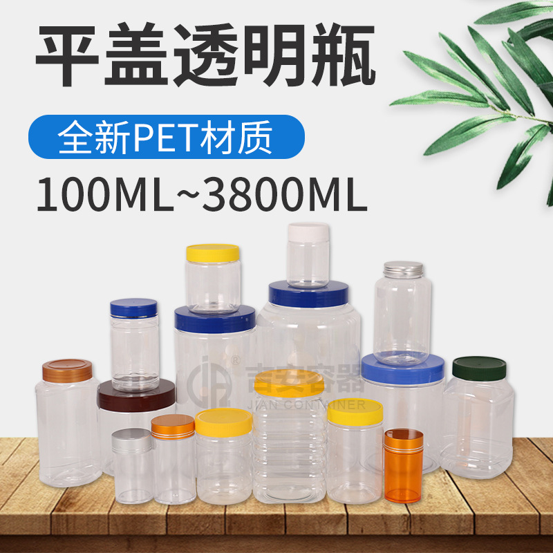 100ML~3.8L透明密封罐500G大口塑料瓶蜂蜜茶叶食品包装方圆罐铝盖