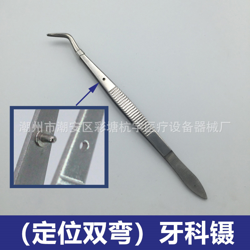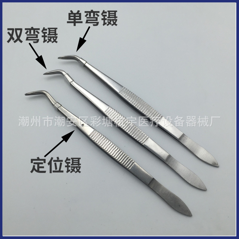 不锈钢牙科镊子牙用镊定位16CM弯头镊尖嘴钳牙医镊口腔检查工具