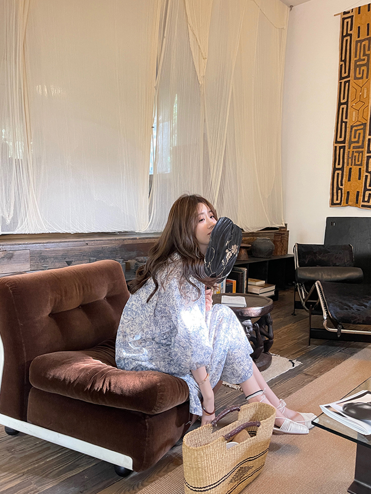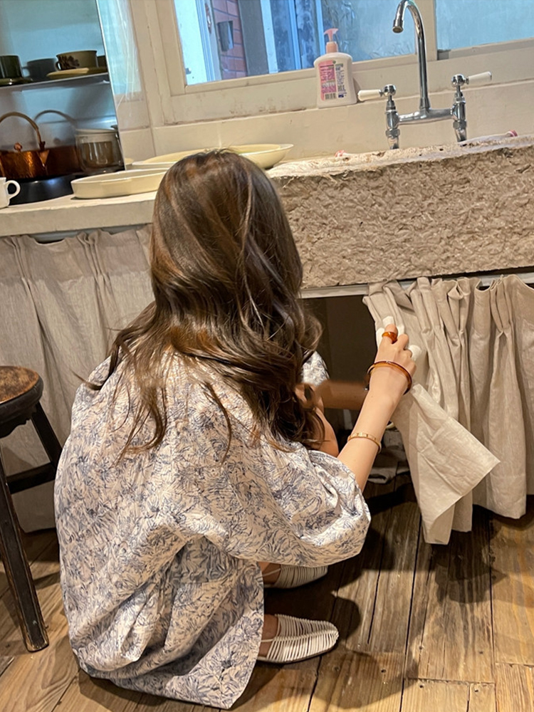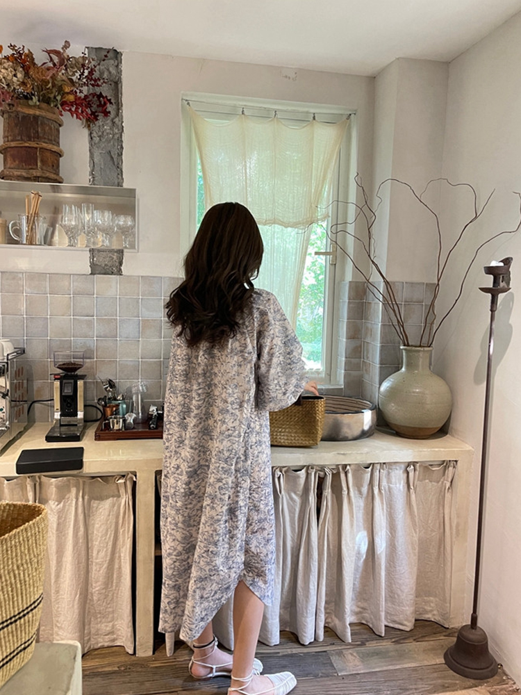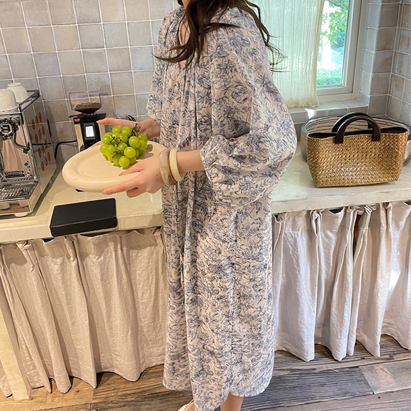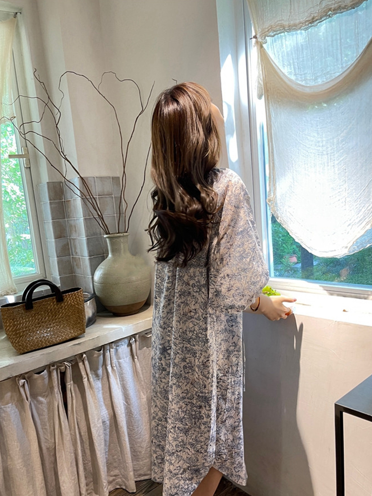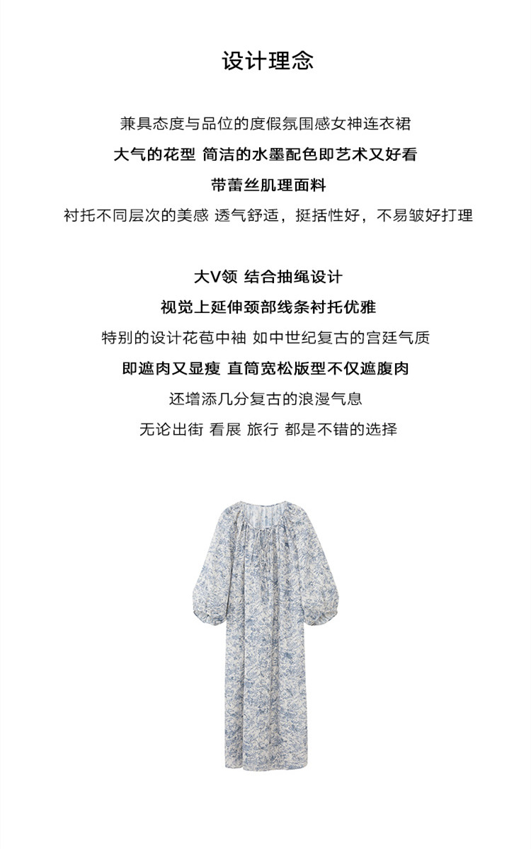 法式V領泡泡袖碎花洋裝女春設計感小眾七分袖襯衫式寬鬆小個子