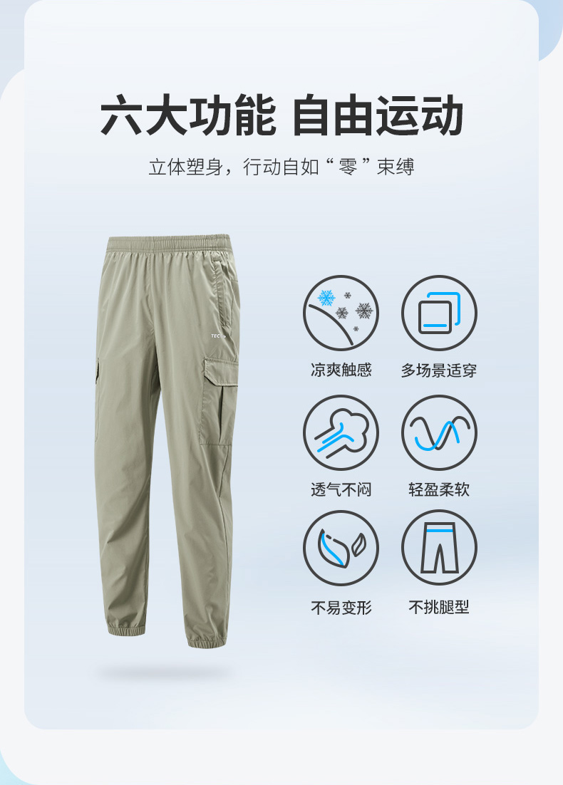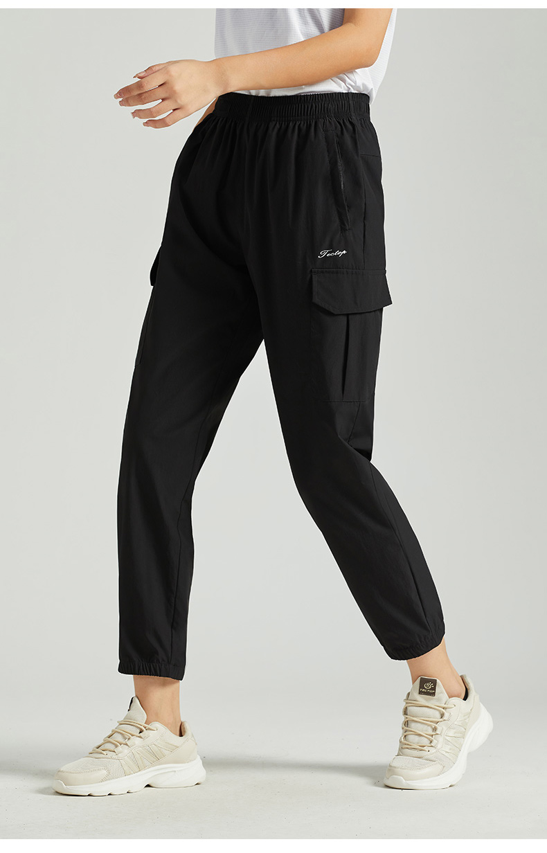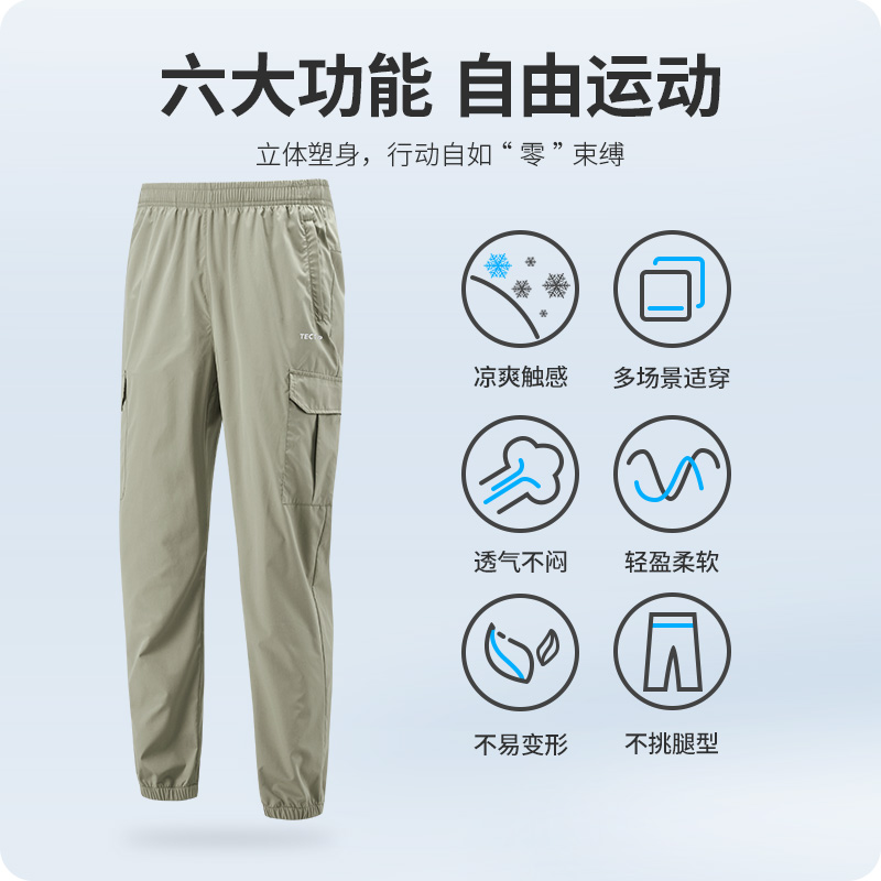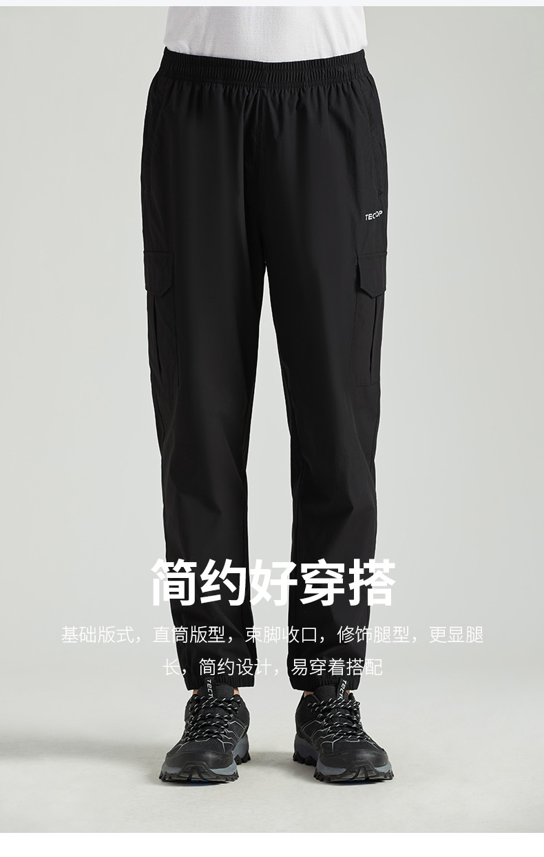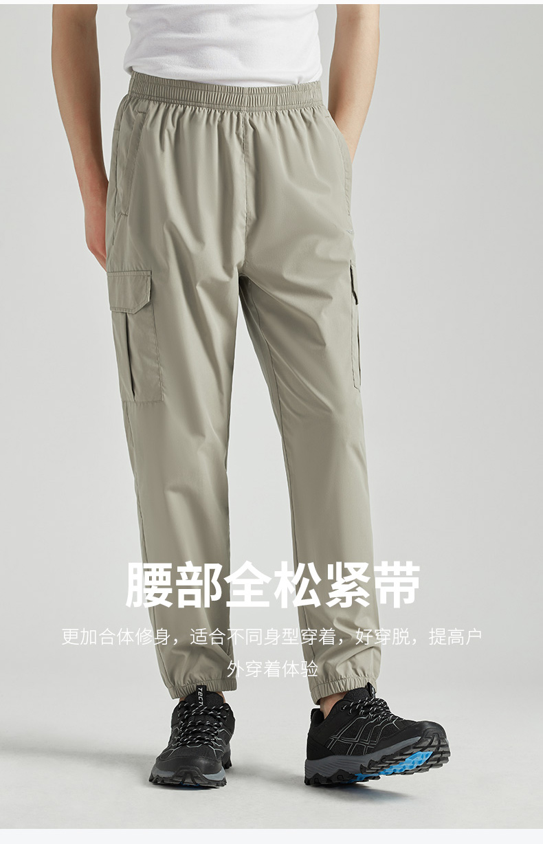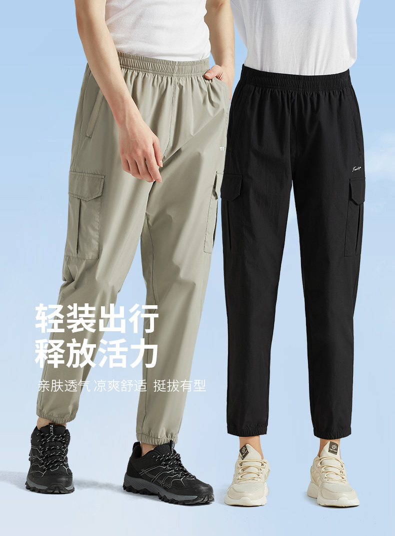 探拓戶外休閒褲旅行褲男女春夏鬆緊腰運動休閒薄款大口袋工裝褲子