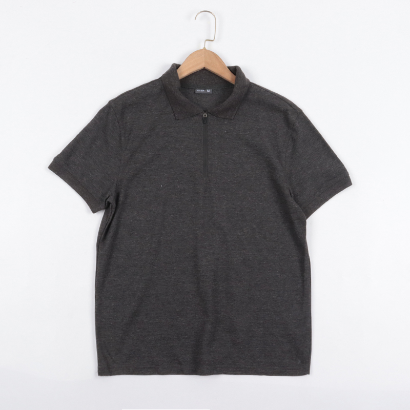 美式休閒 夏季半拉鍊寬鬆珠地棉短袖透氣翻領POLO衫修身T恤男外貿