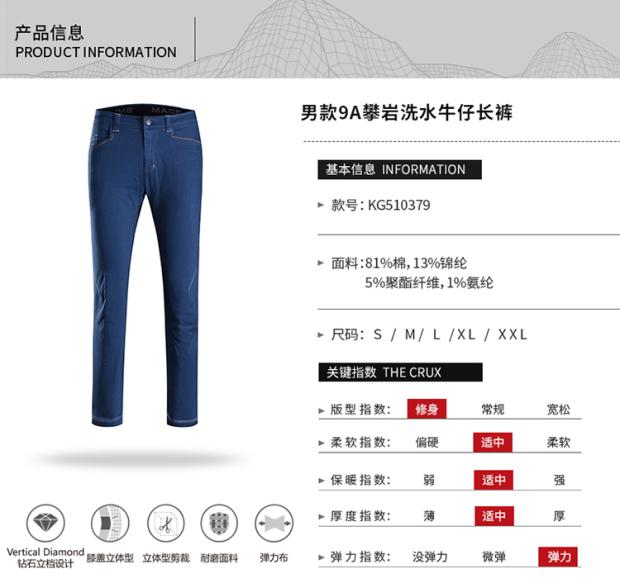 KAILAS/凱樂石 男款攀巖牛仔褲 戶外運動休閒長褲 KG510675