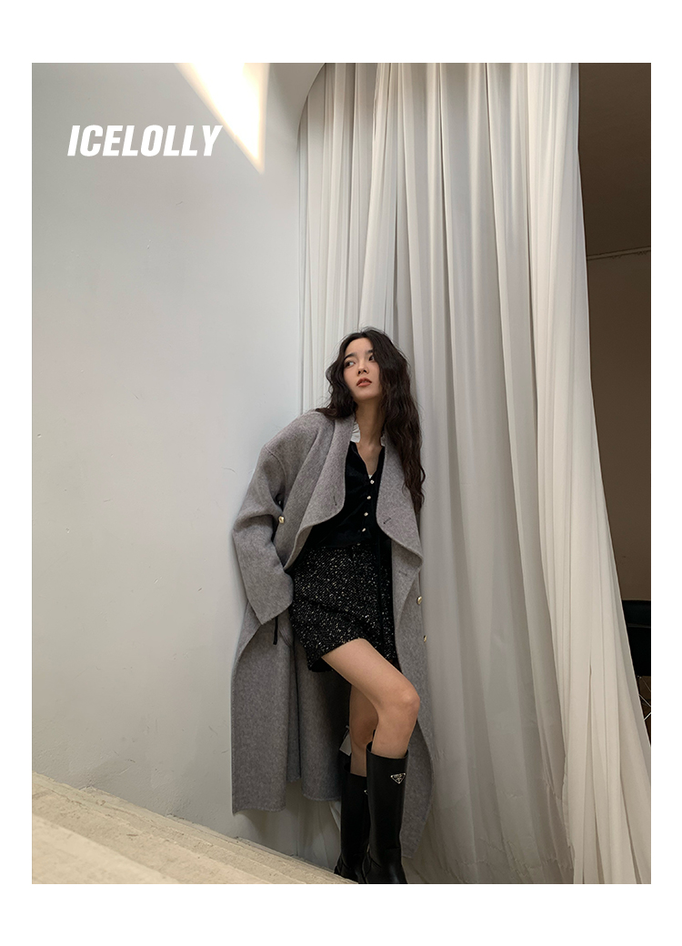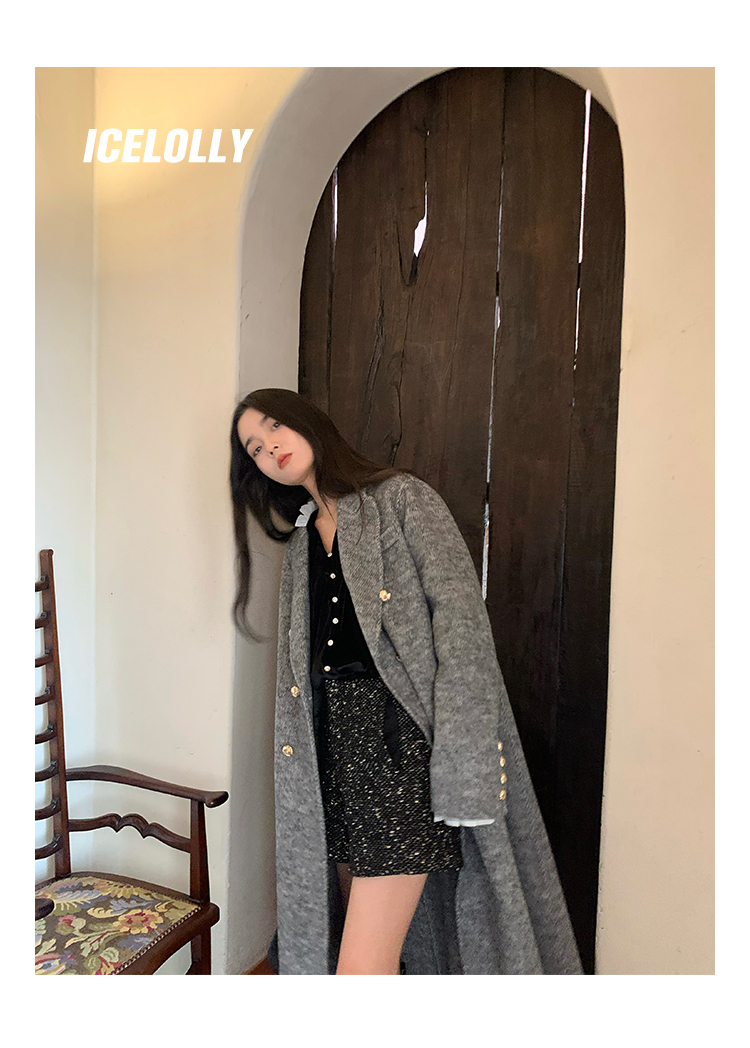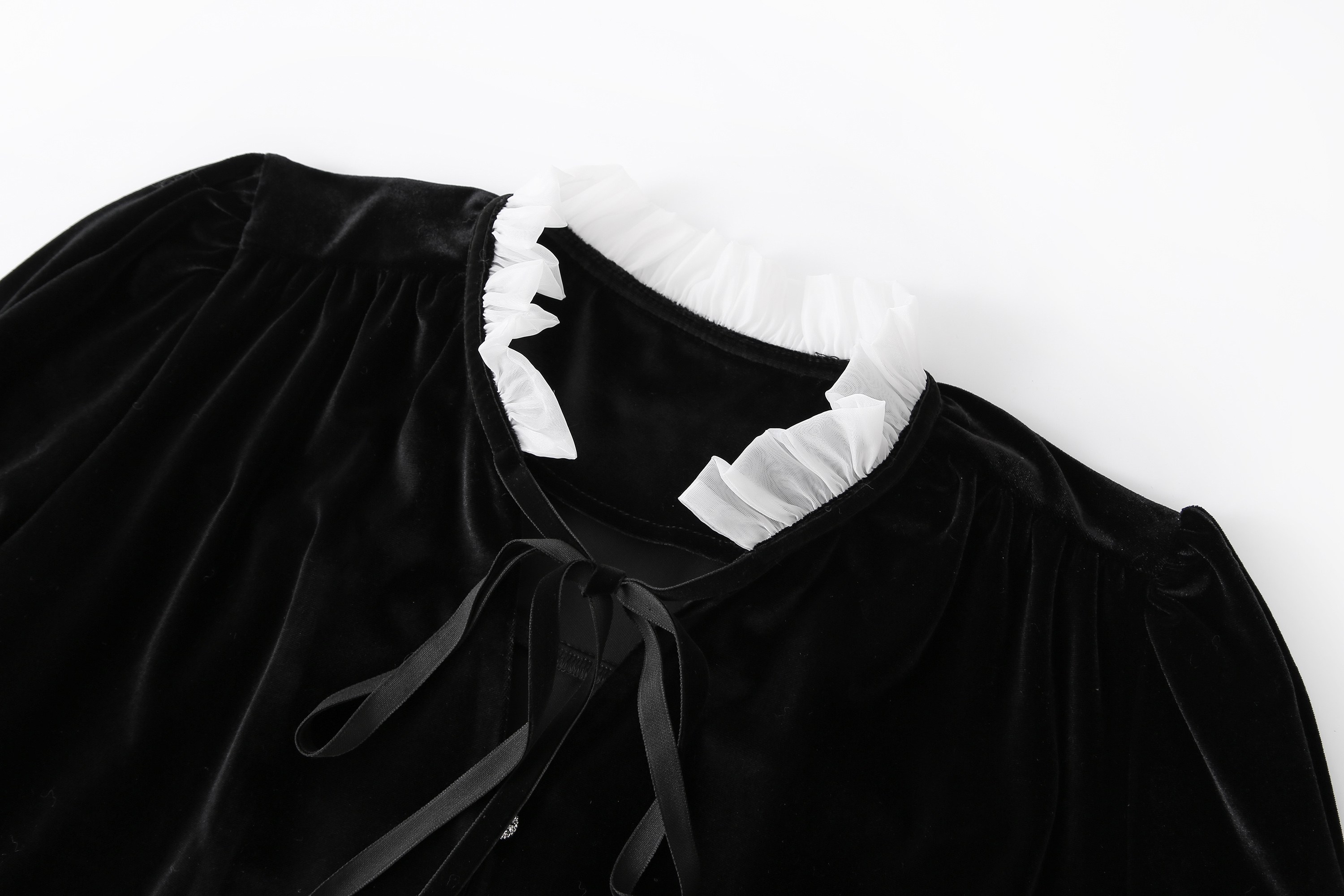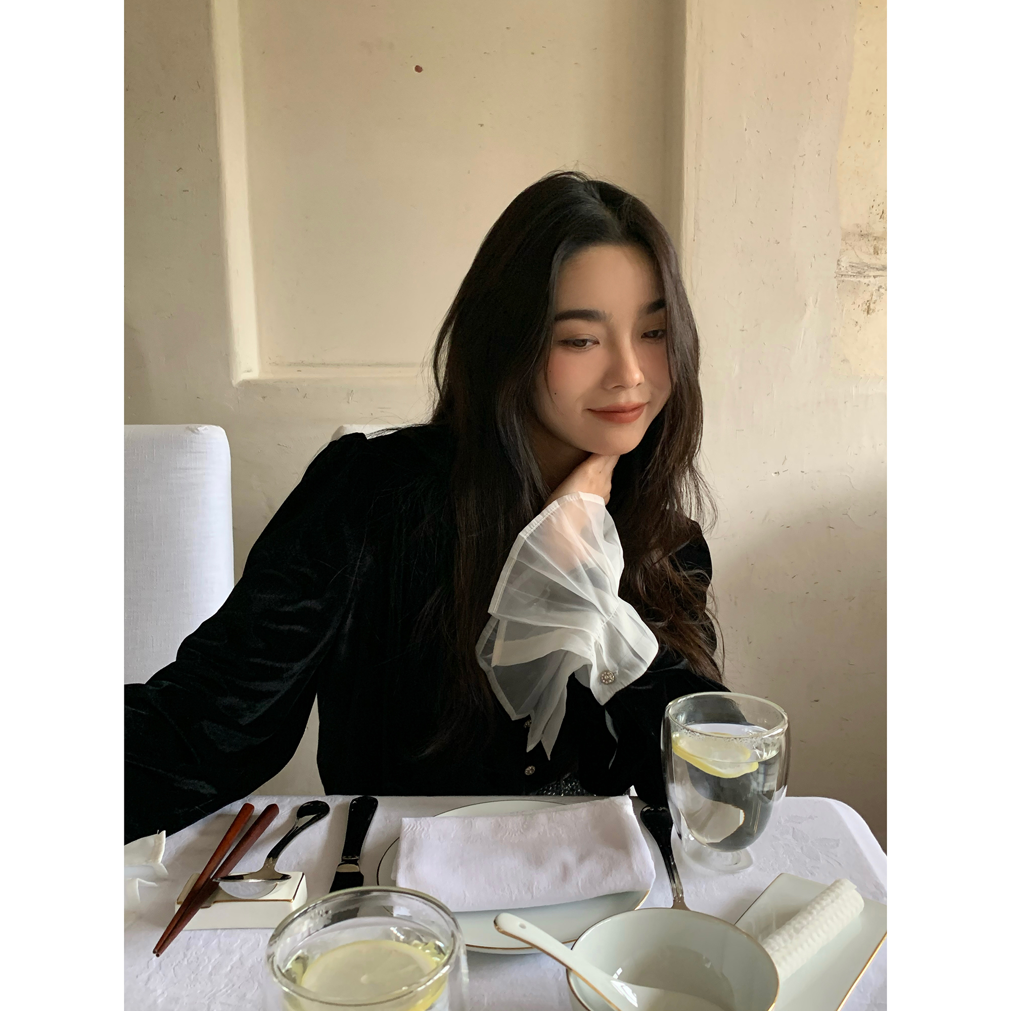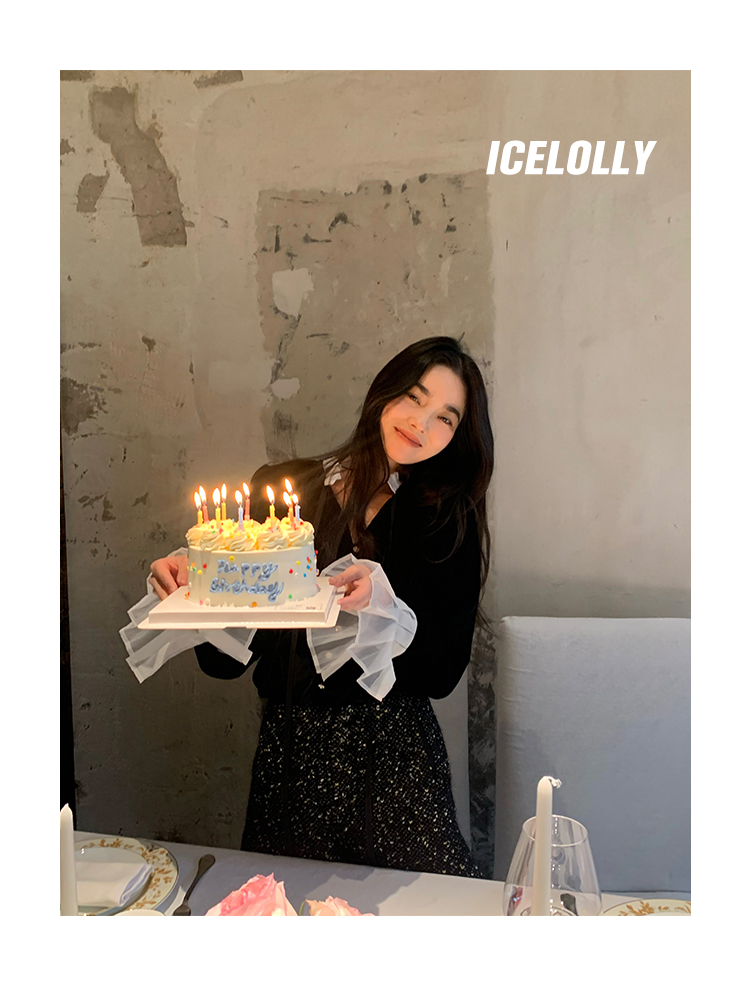 ICELOLLY法式黑色絲絨襯衫女早春季上衣V領內搭襯衫別致漂亮小衫