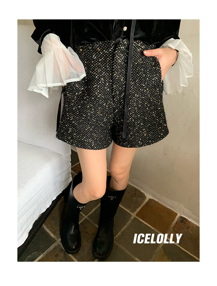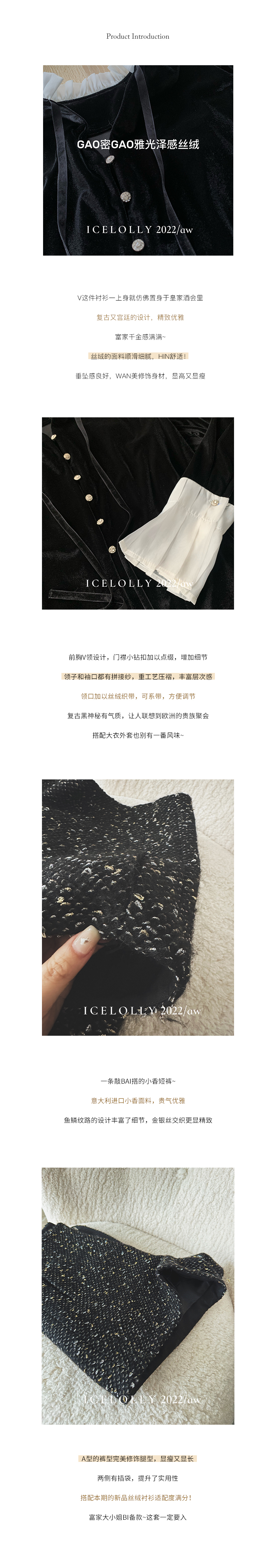顏色分類 復古黑 襯衫.,銀絲黑 小香短褲.