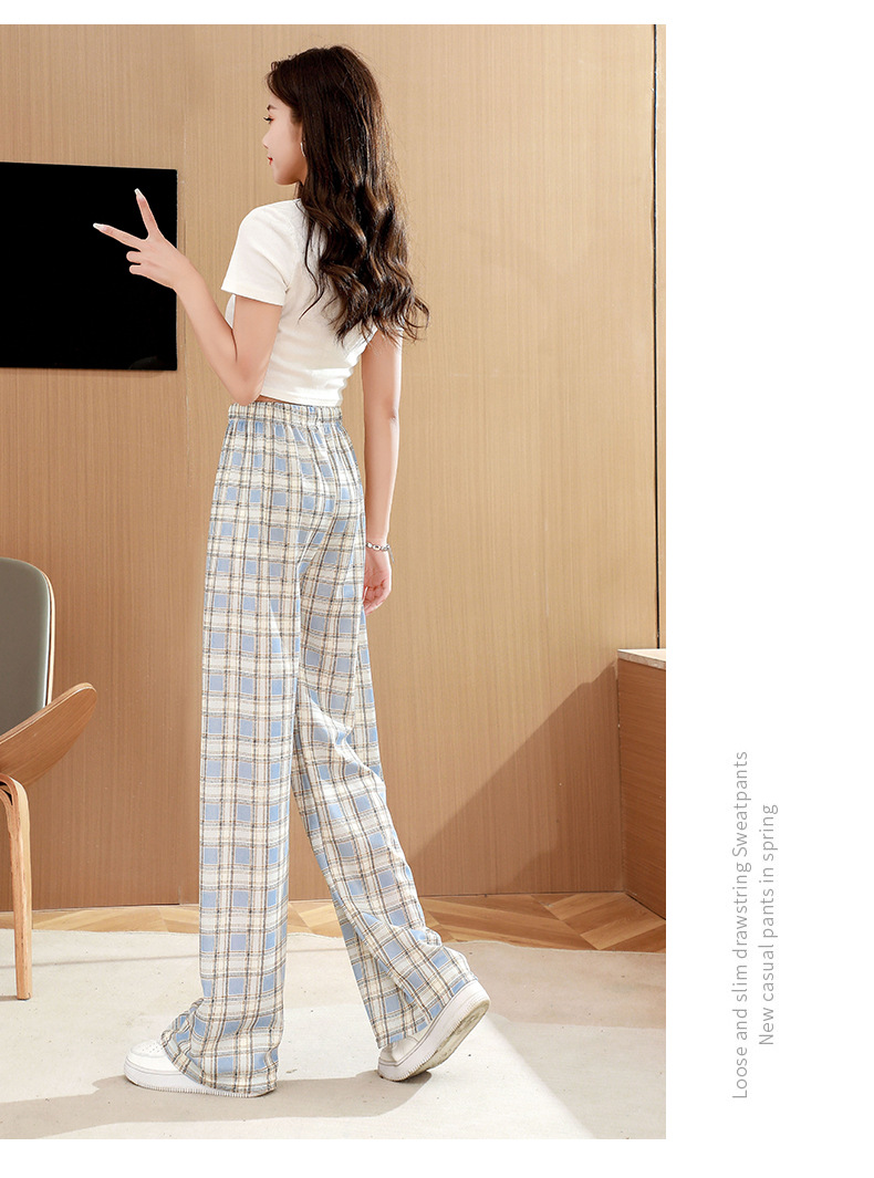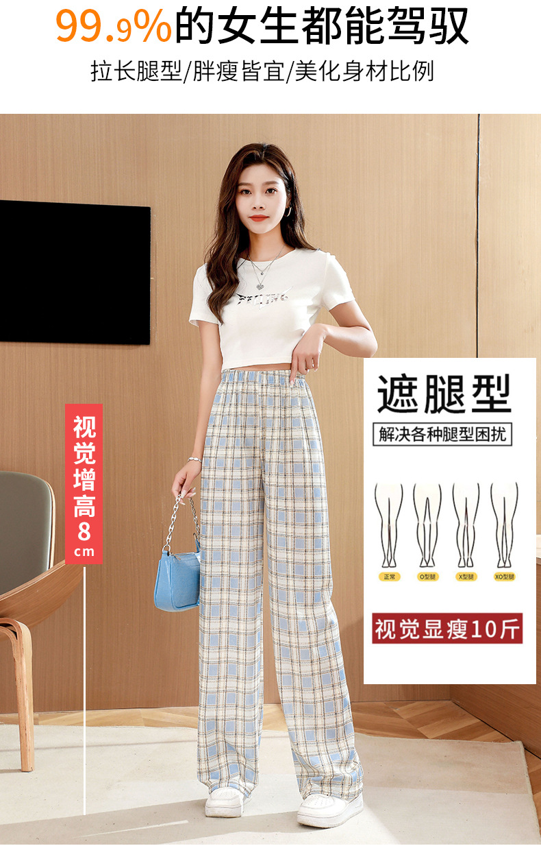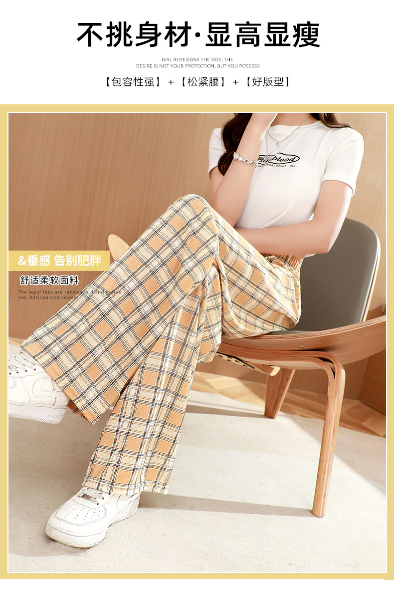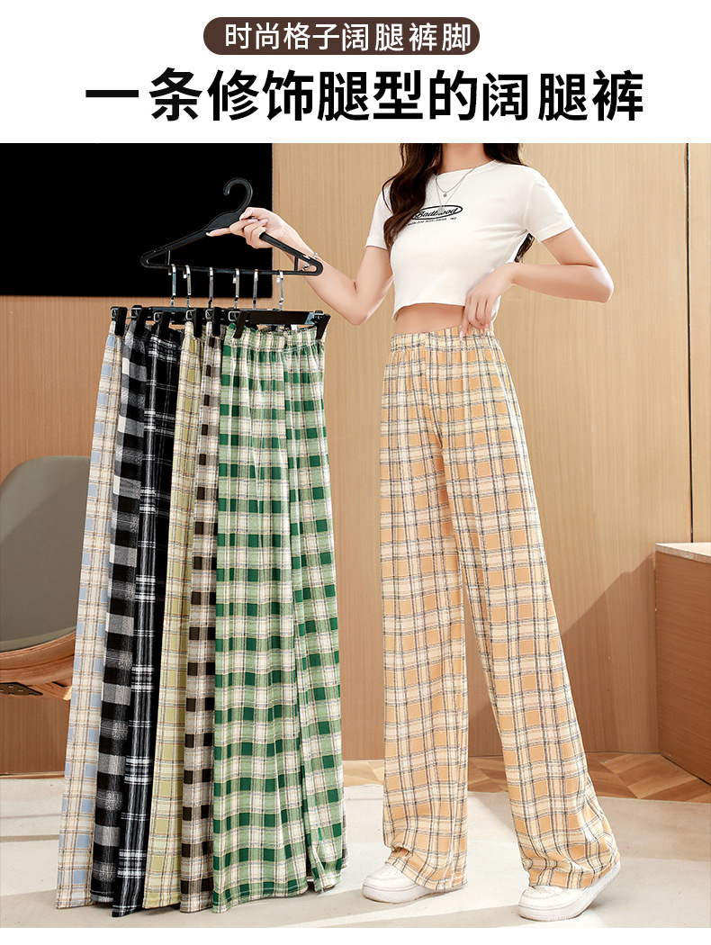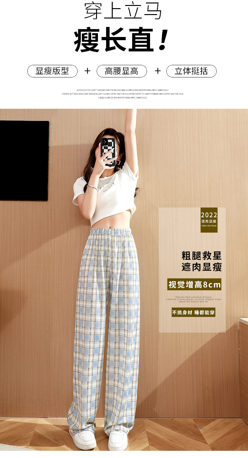 格子裤女夏季2023新款高腰显瘦直筒窄版阔腿裤宽松垂感拖地休闲裤