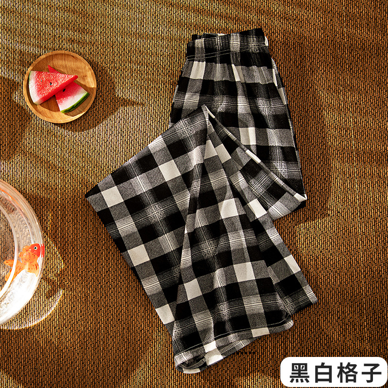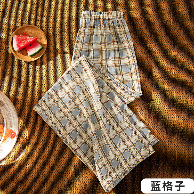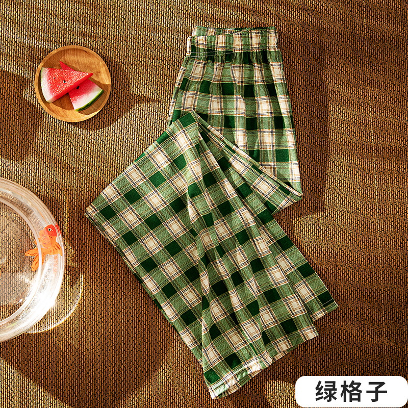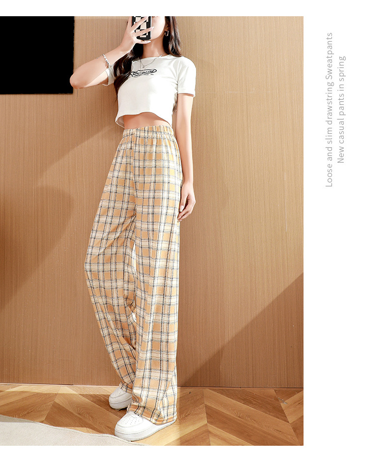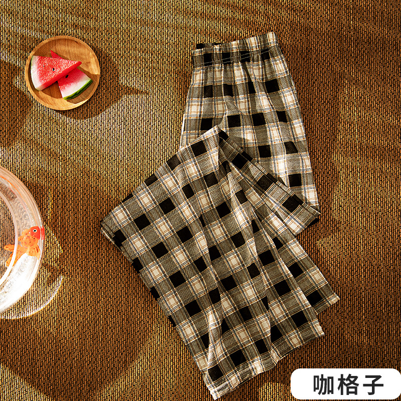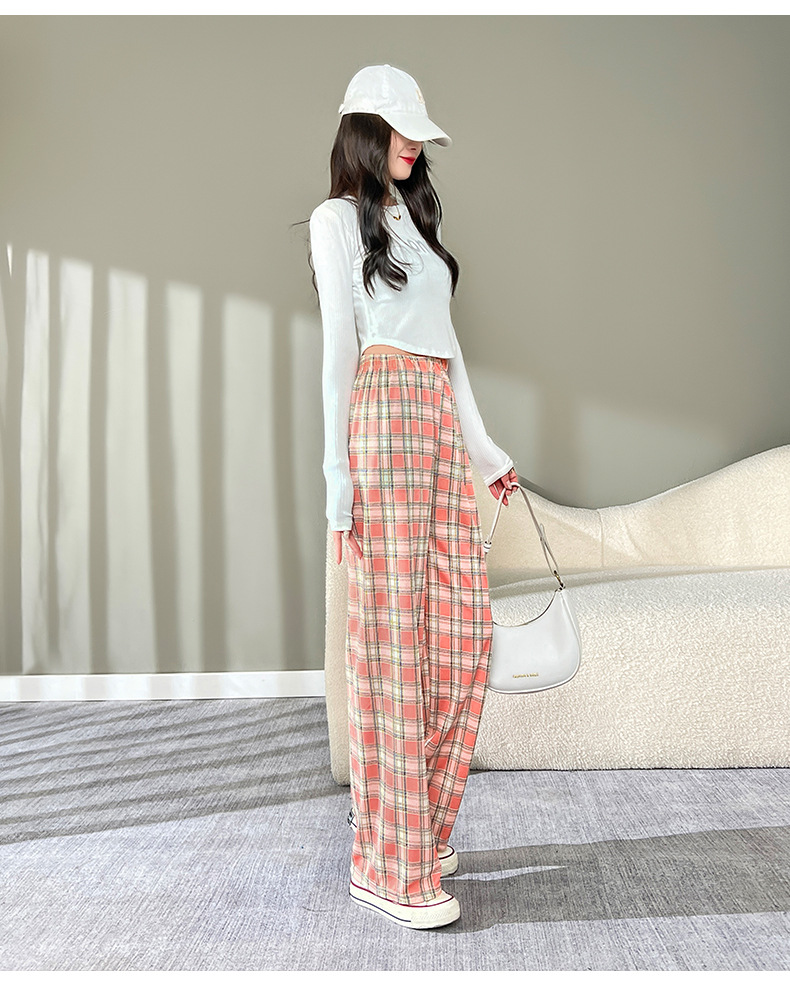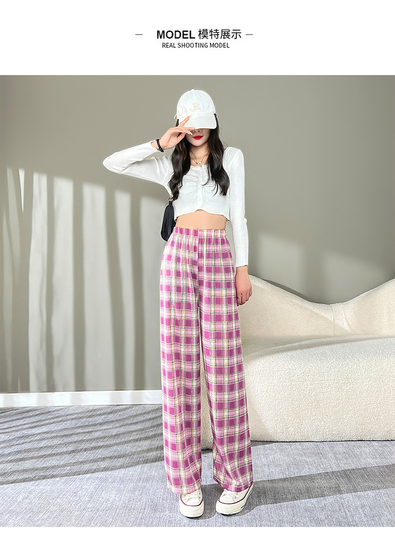 格子裤女夏季2023新款高腰显瘦直筒窄版阔腿裤宽松垂感拖地休闲裤