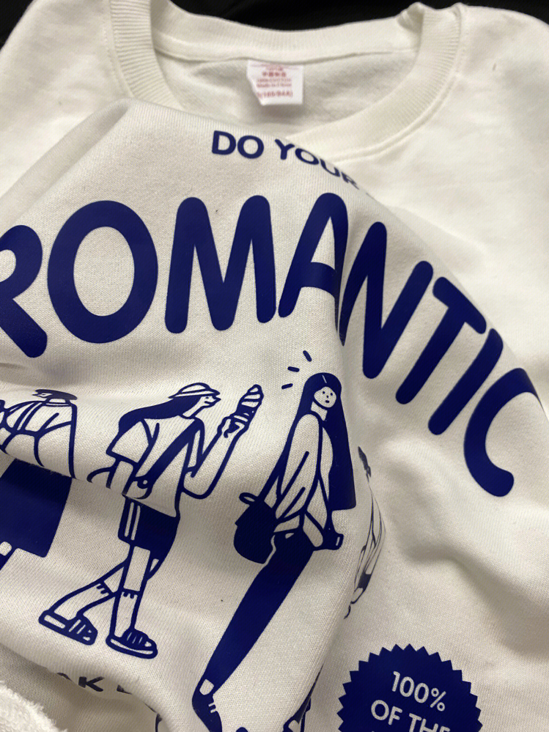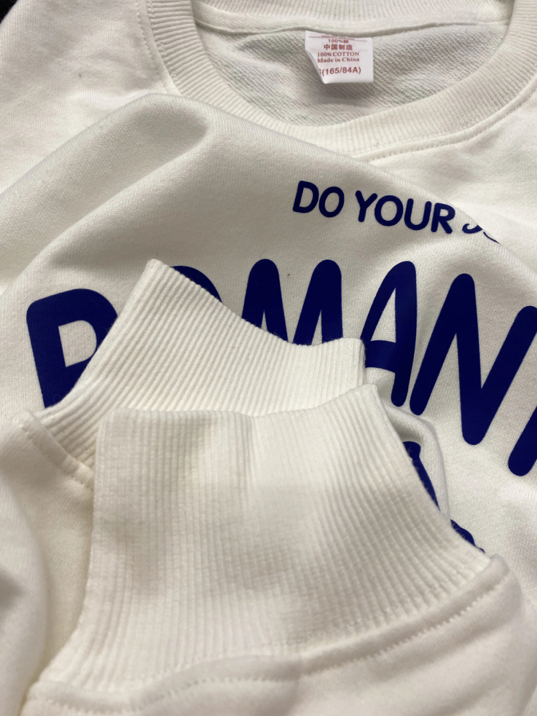 純棉毛圈白色圓領厚棉T女初秋疊穿慵懶卡通印花外套chic港風上衣服