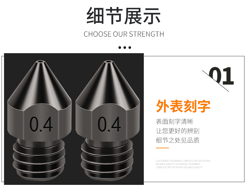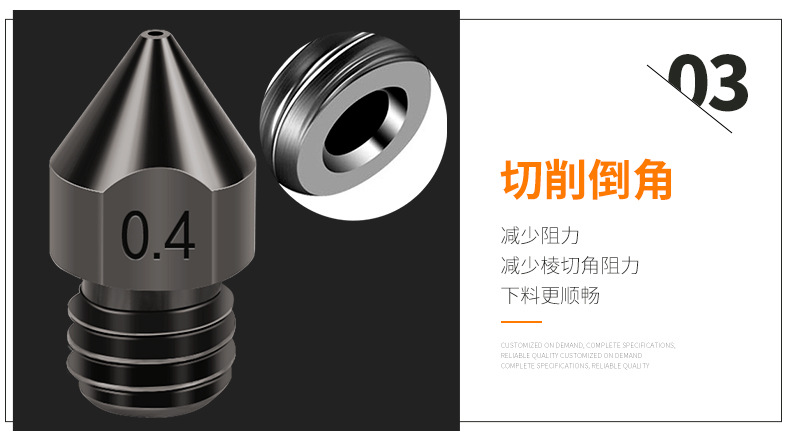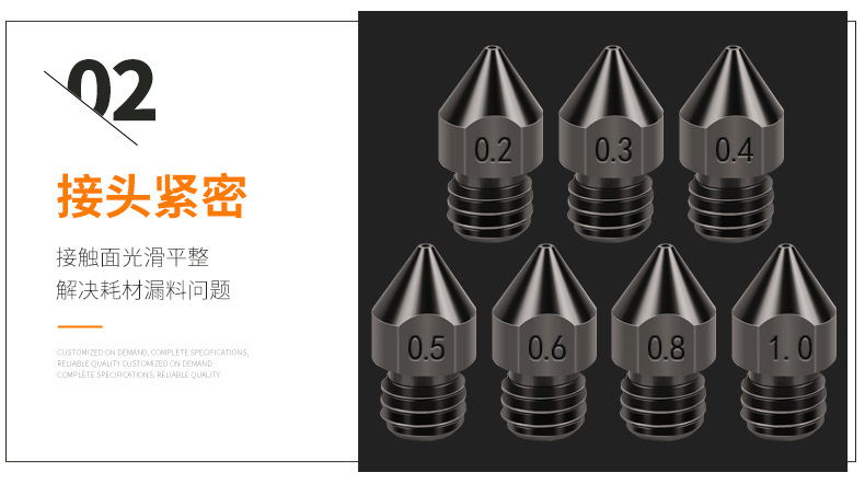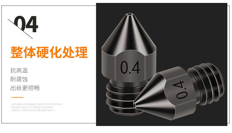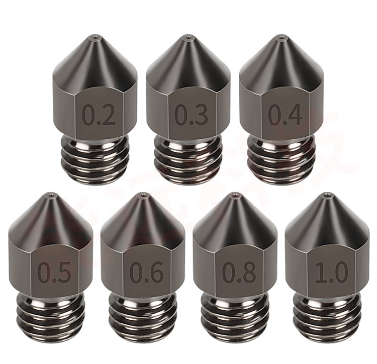 3D打印机配件 MK8硬化钢喷嘴打印头耗材0.2-1.0mm 硬质钢打印喷头