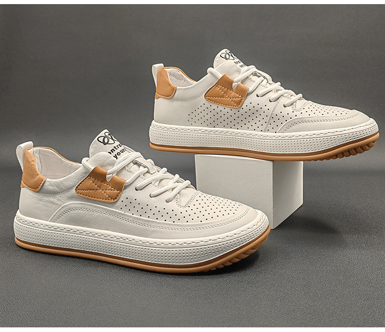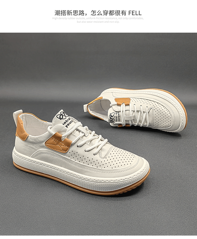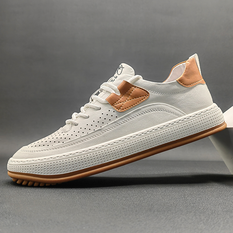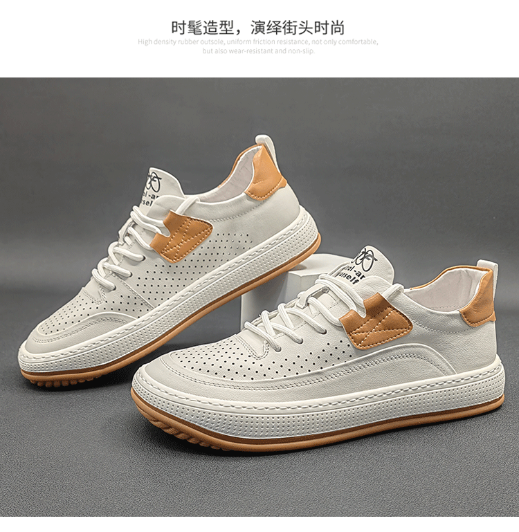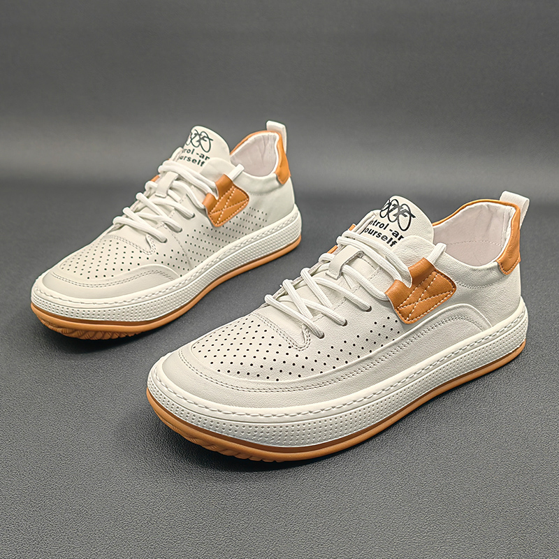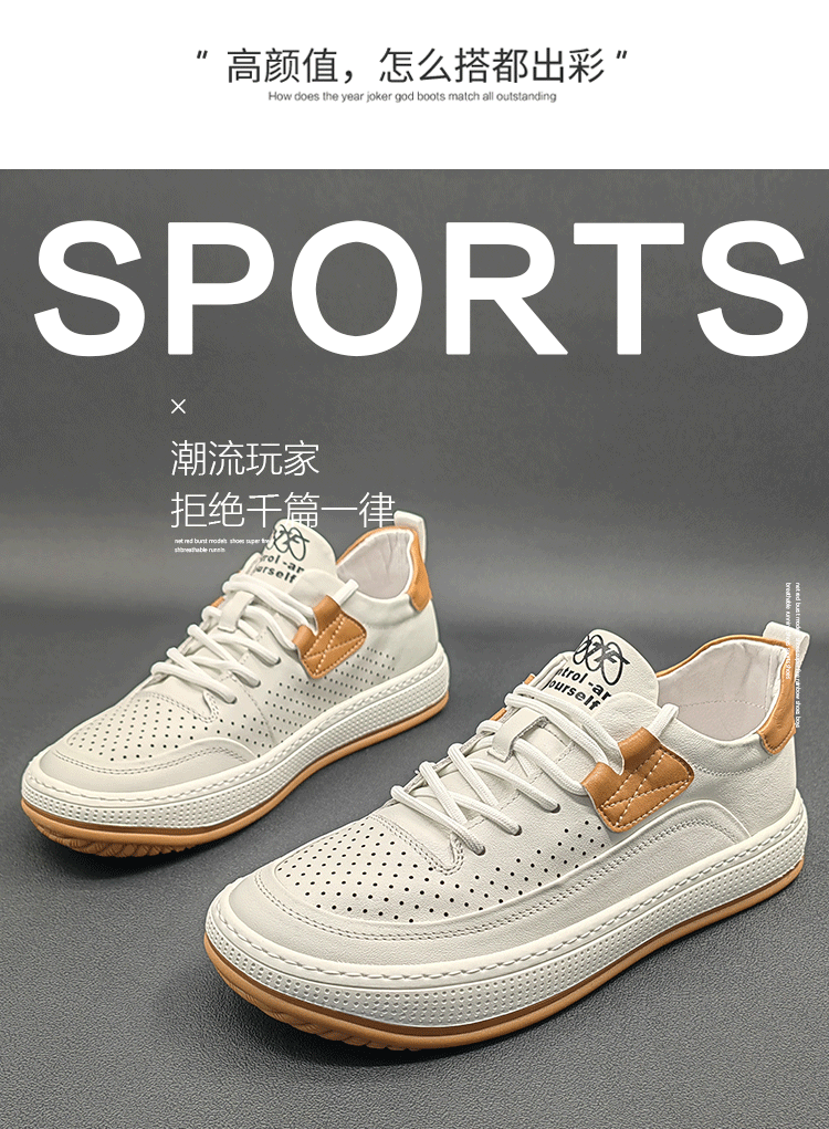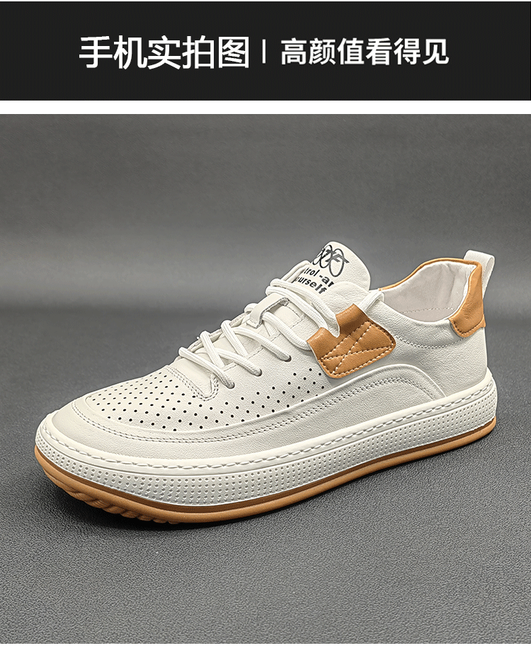 歐洲站男鞋真皮鏤空大頭皮鞋2023夏季新款小醜鞋小白鞋男休閒板鞋