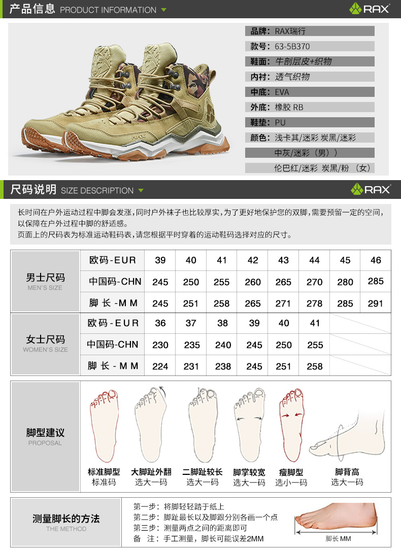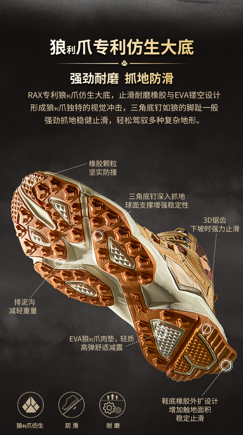 rax防水登山鞋男防滑戶外鞋履輕便徒步鞋女沙漠爬山鞋高筒登山靴