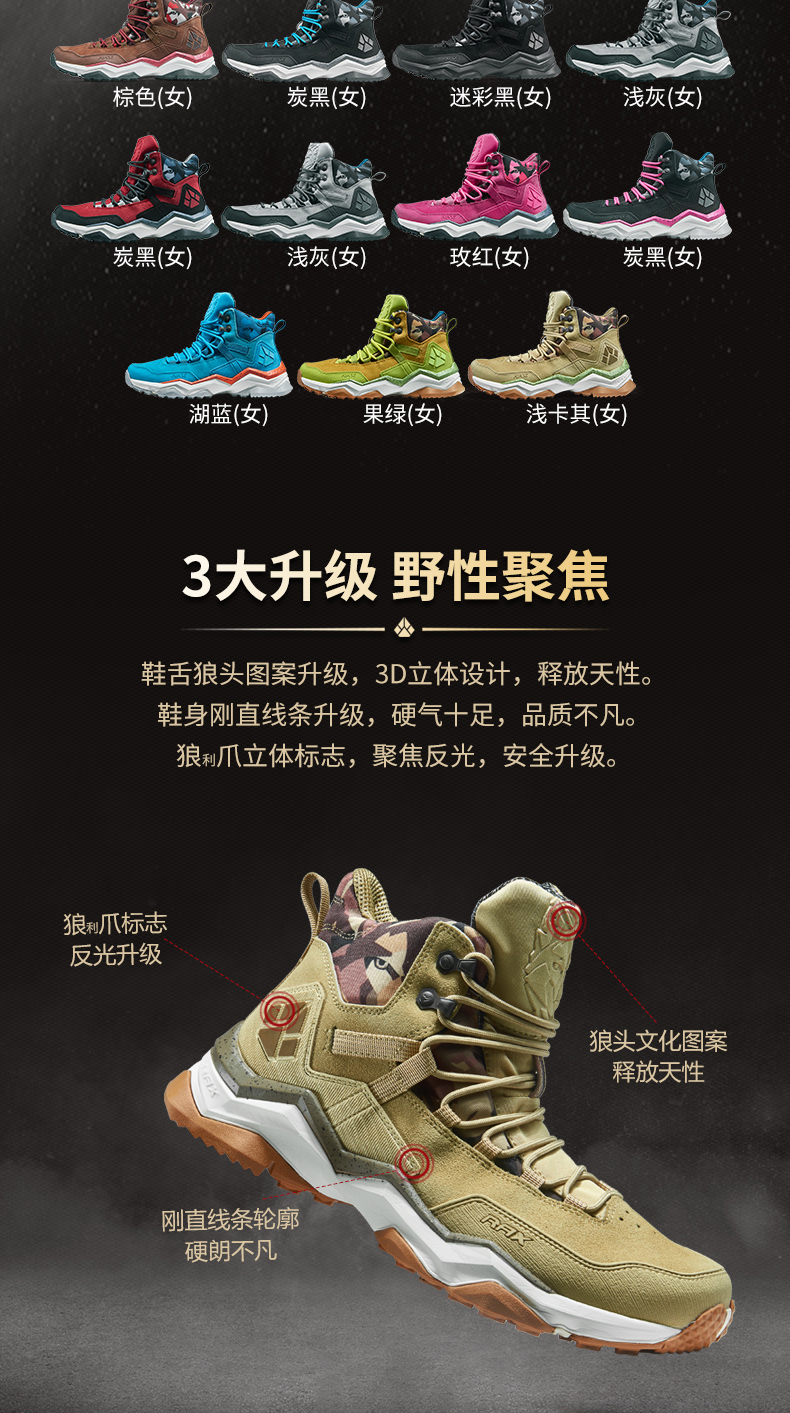 顏色分類 淺卡其/防水/男 黑迷彩/防水/男 淺灰色/防水/男 炭黑/防水/男 大紅色/防水/男 棕色/防水/男 玫紅/防水/女 湖藍色/防水/女 炭黑/防水/女 淺卡其/防水/女 果綠/防水/女 淺卡其/防潑水/男 炭黑/防潑水/男 淺灰色/防潑水/男 玫紅/防潑水/女 淺卡其/鋒狼/男 淺灰色/鋒狼/男 黑色/鋒狼/男 棕色/鋒狼/男 橙紅/鋒狼/女 炭黑/鋒狼/女
