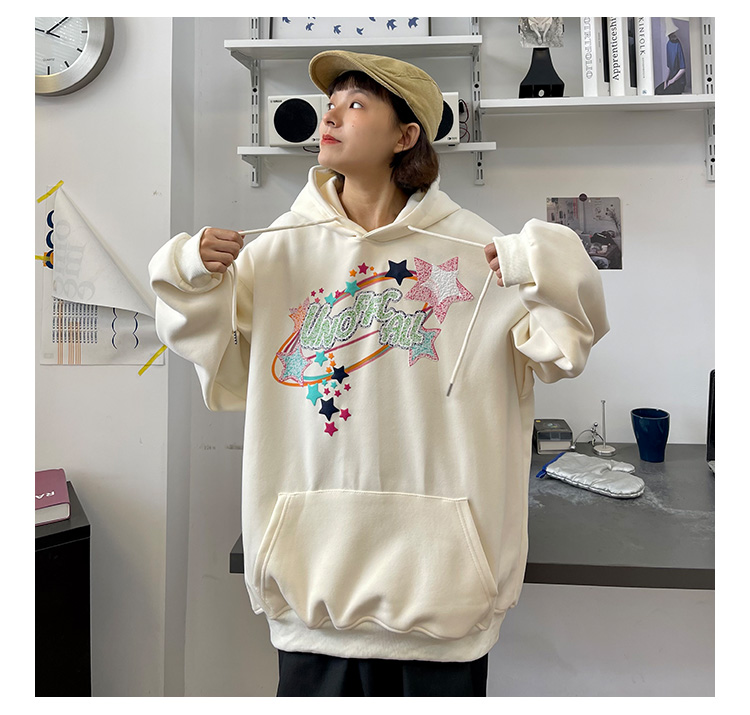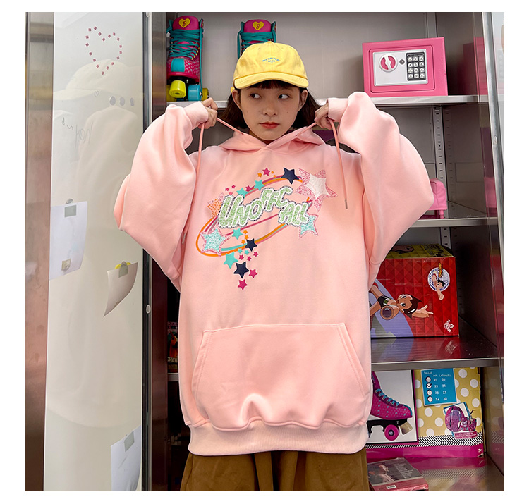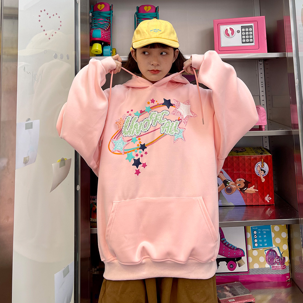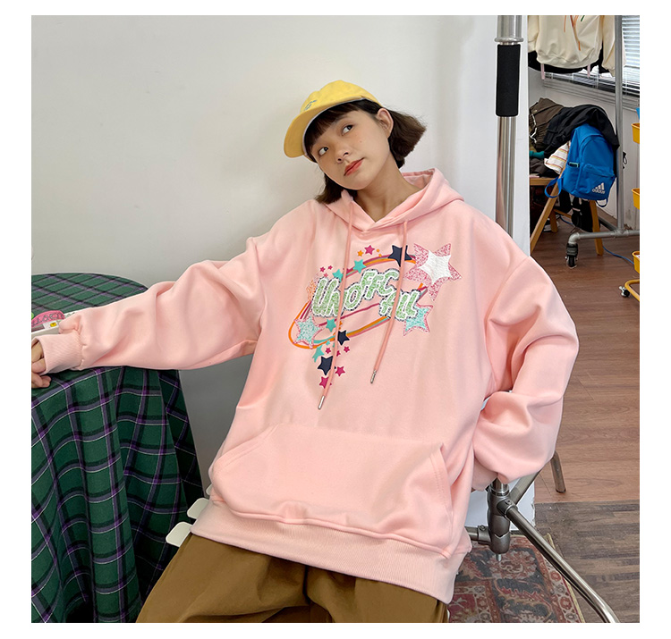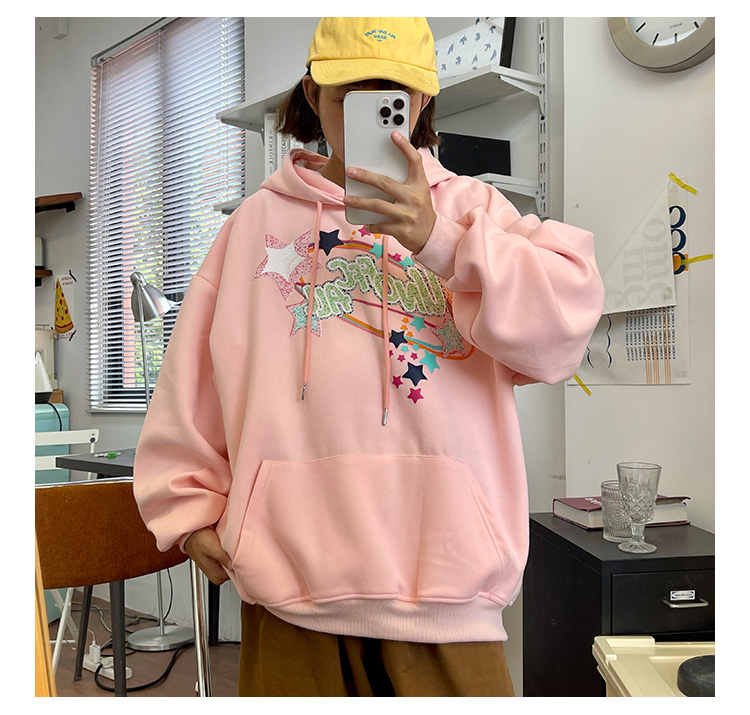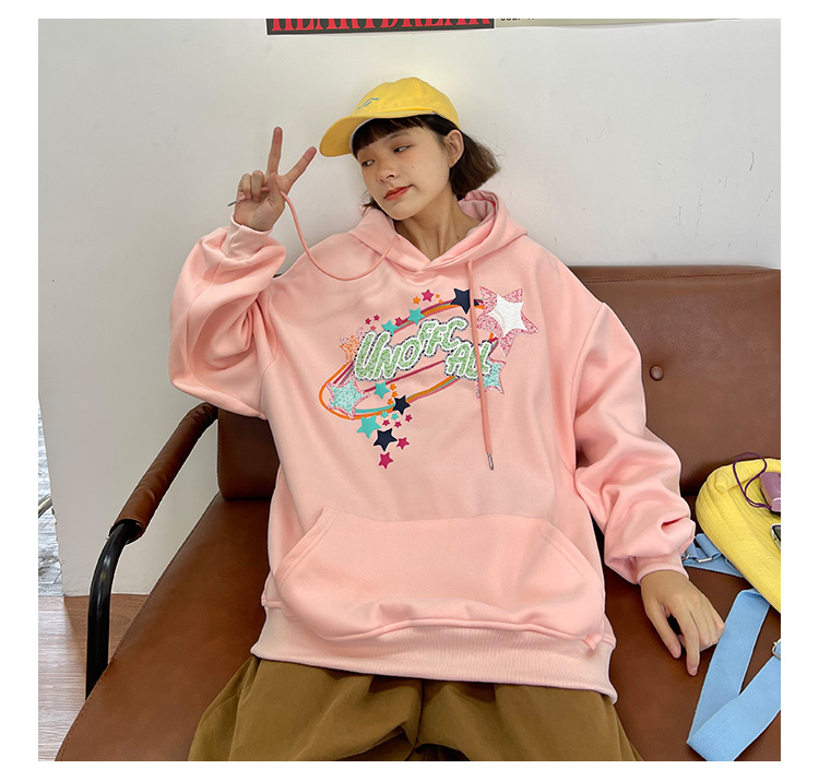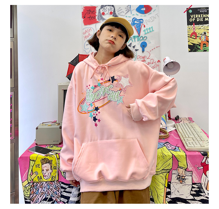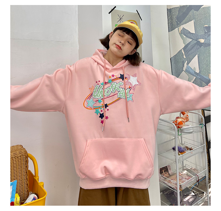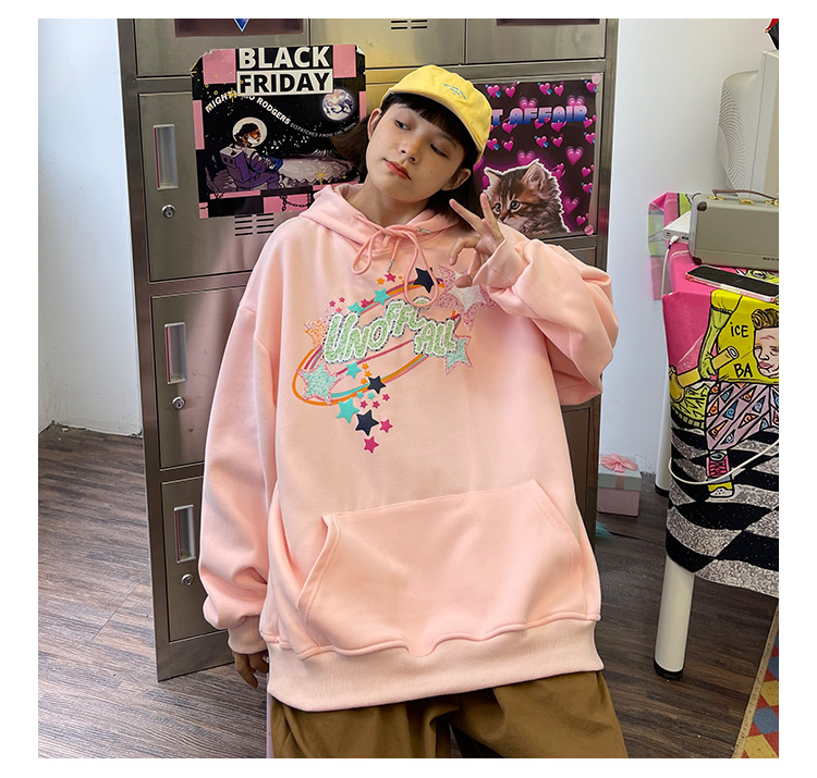 怕麻煩多巴胺星星連帽運動衫女2023秋季新款寬鬆bf日系甜美可愛上衣