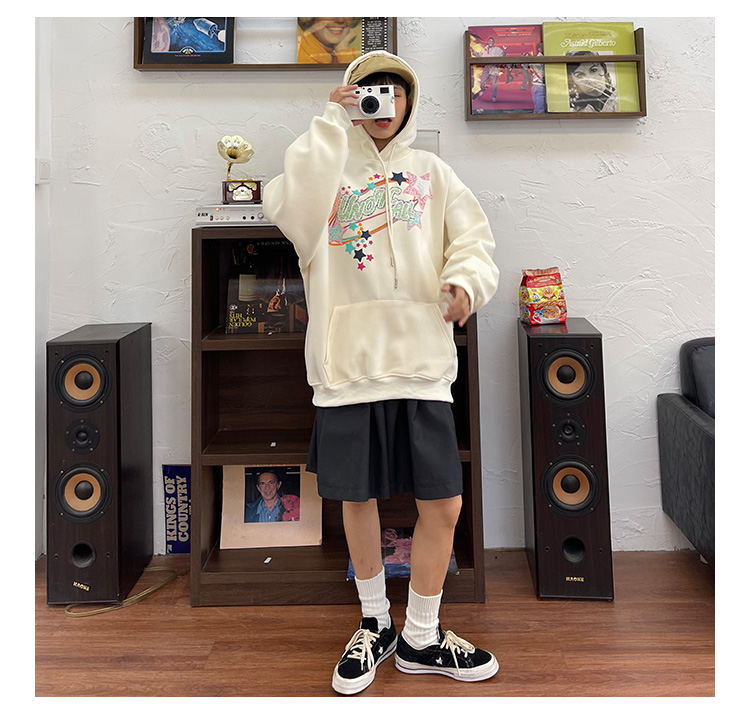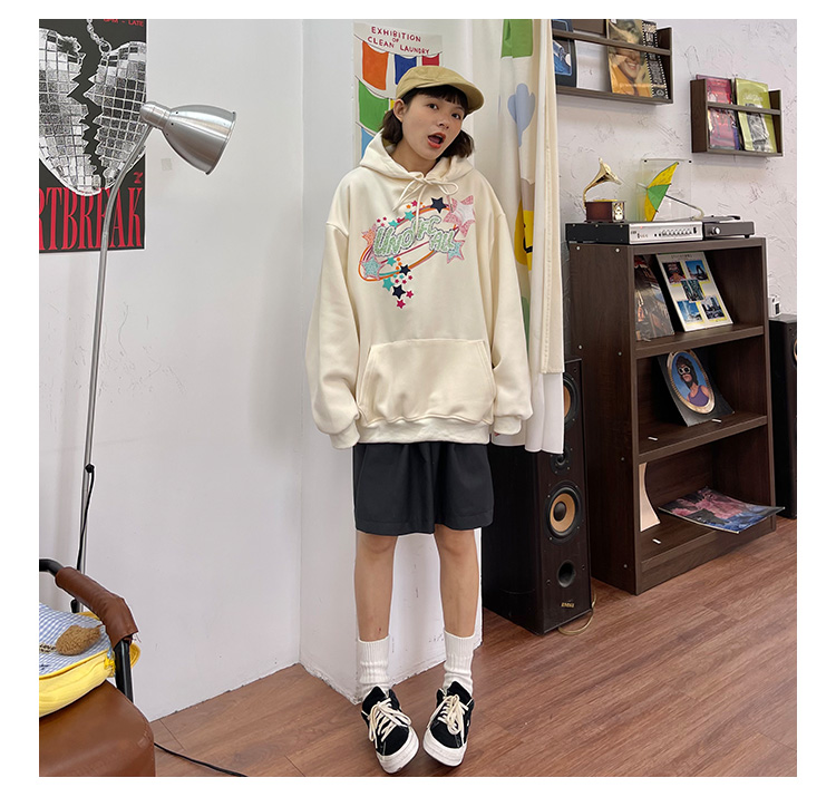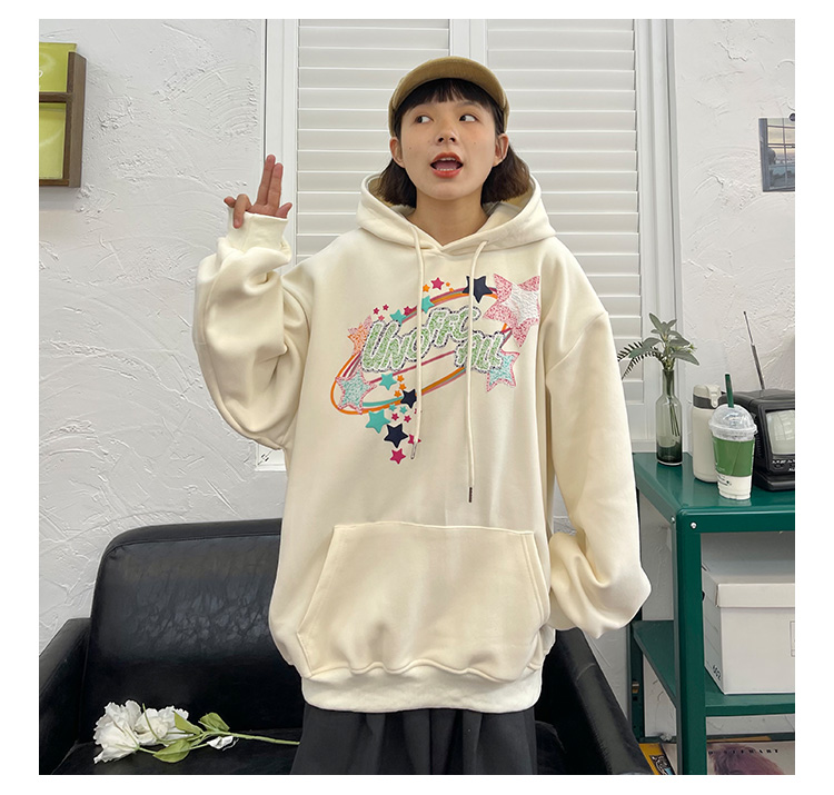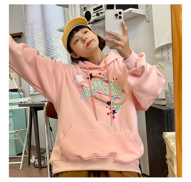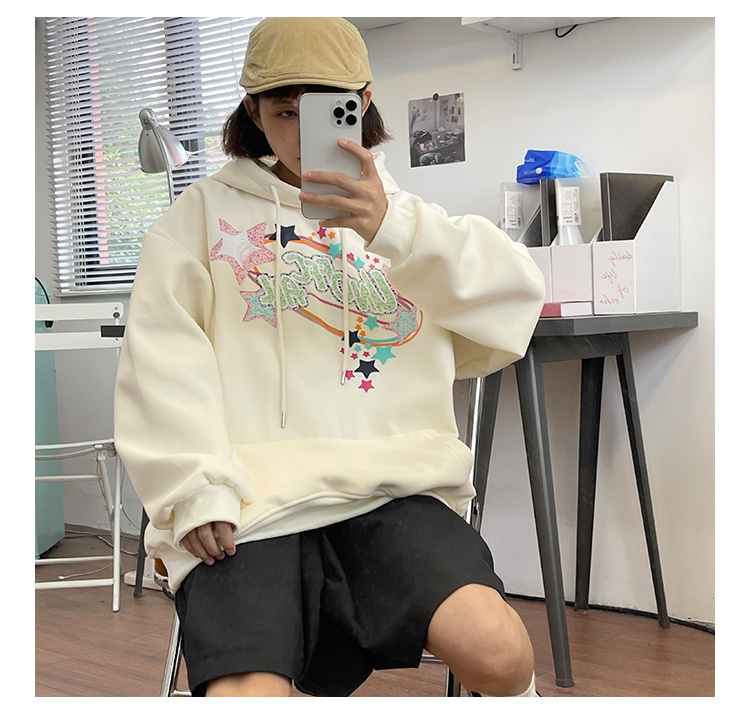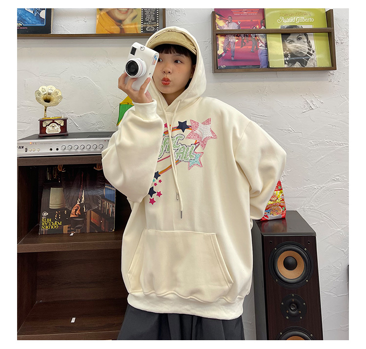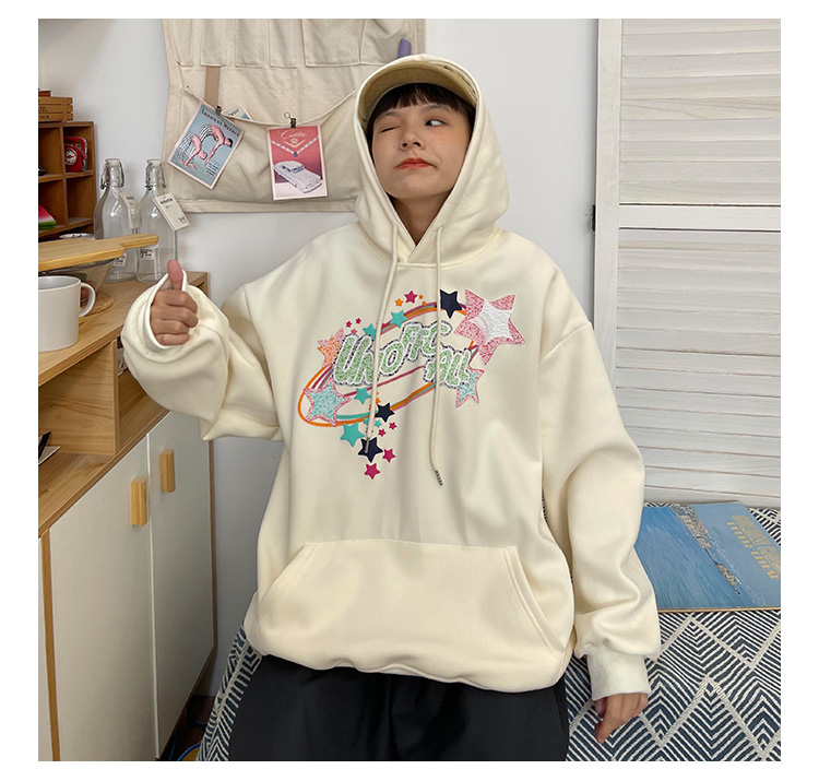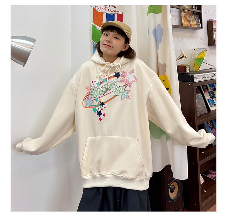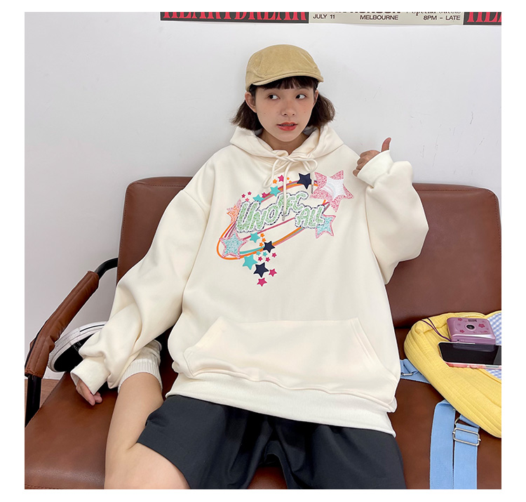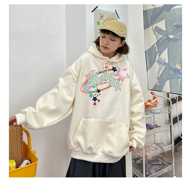 怕麻煩多巴胺星星連帽運動衫女2023秋季新款寬鬆bf日系甜美可愛上衣