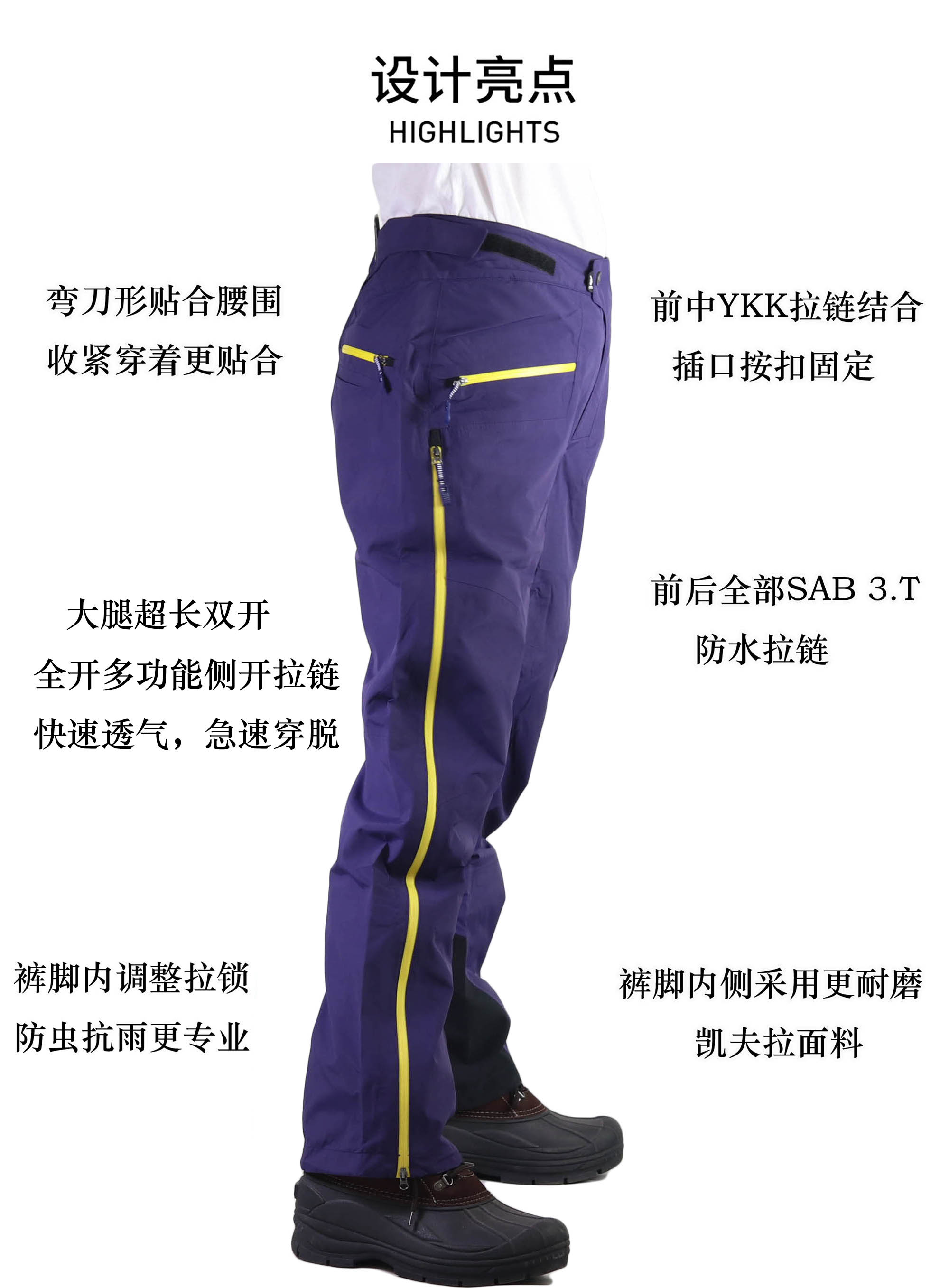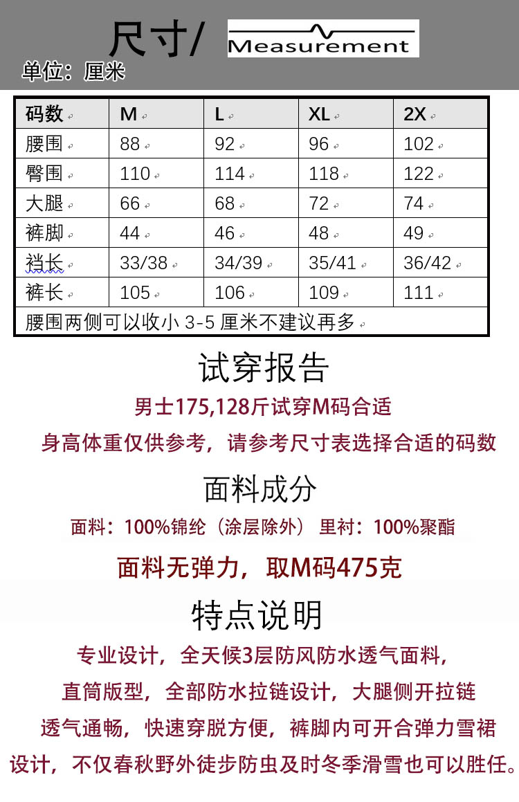 全天候戶外登山男側開多功能高海拔防風防水透氣3L面料硬殼衝鋒褲