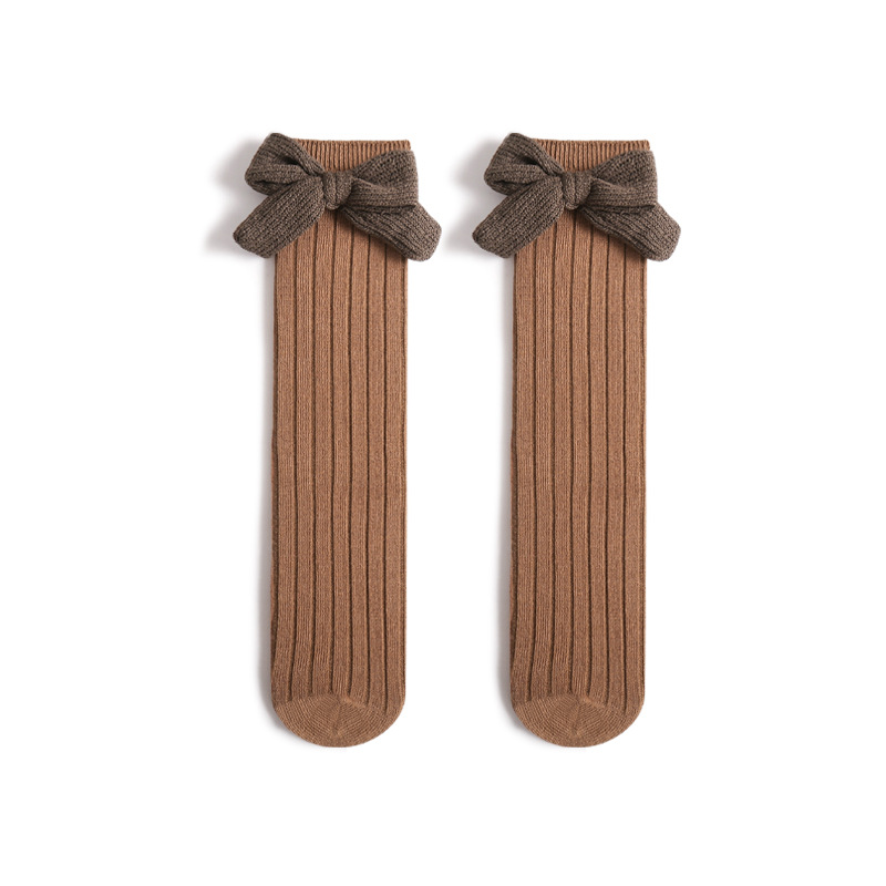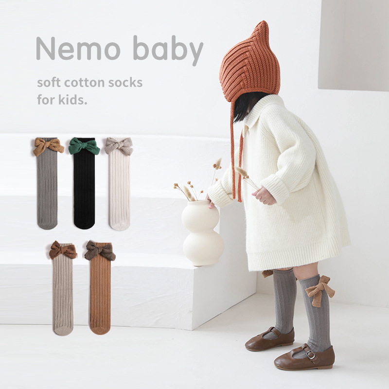 2022秋冬新品女童袜子韩国女宝宝长筒袜纯色蝴蝶结无跟JK公主棉袜