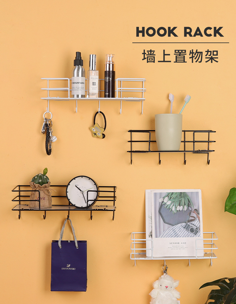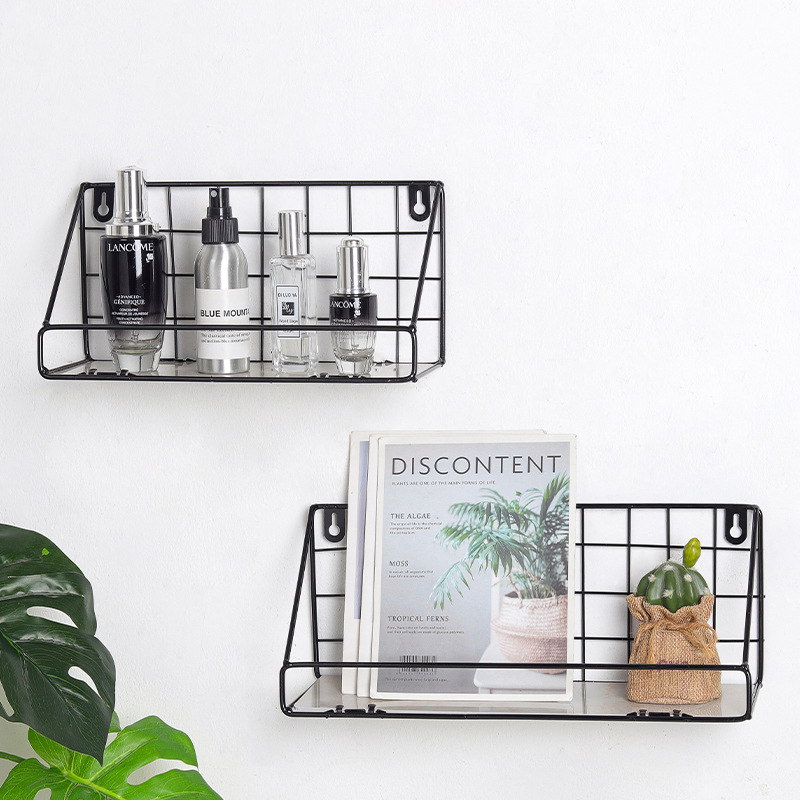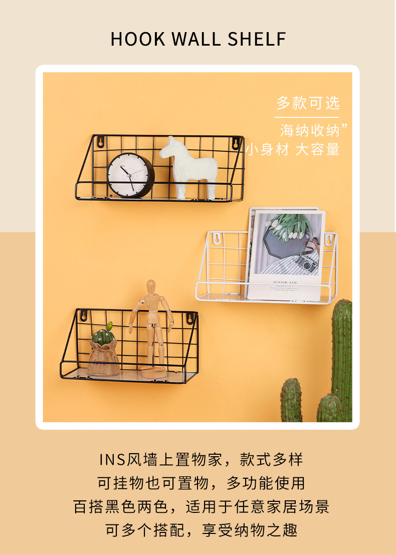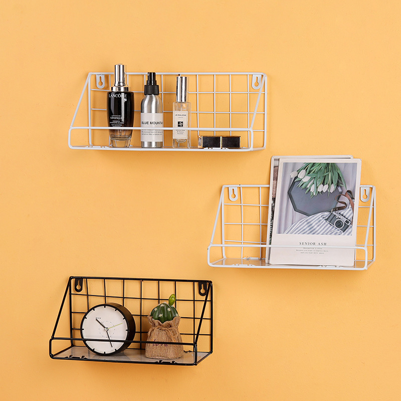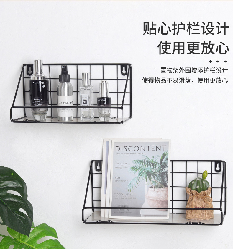 ins北欧铁艺免打孔墙上置物架 客厅墙面收纳花架厨房置物架壁挂