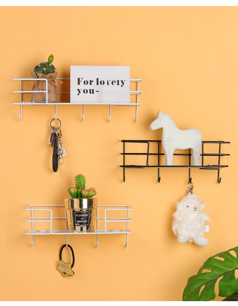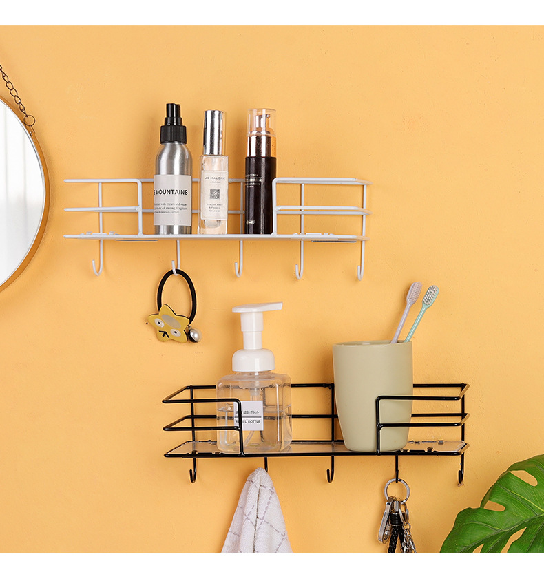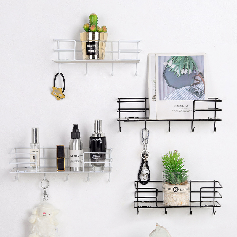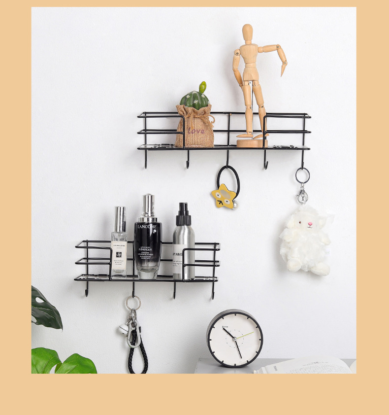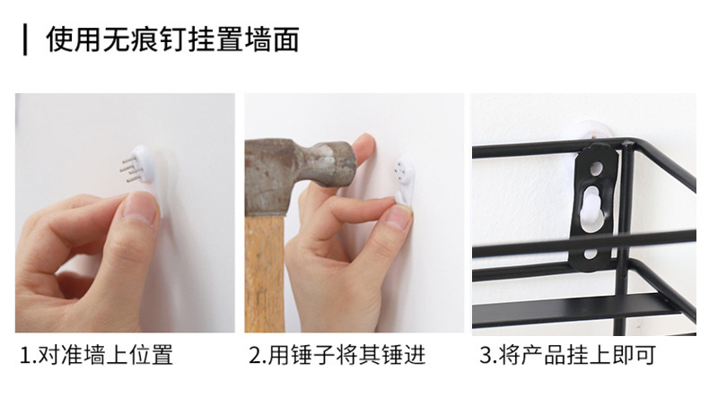 ins北欧铁艺免打孔墙上置物架 客厅墙面收纳花架厨房置物架壁挂