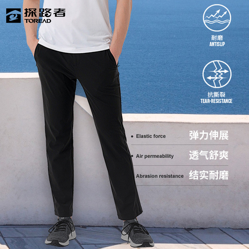 探路者速乾褲男夏季薄款戶外徒步褲運動褲子透氣速乾褲彈力登山褲