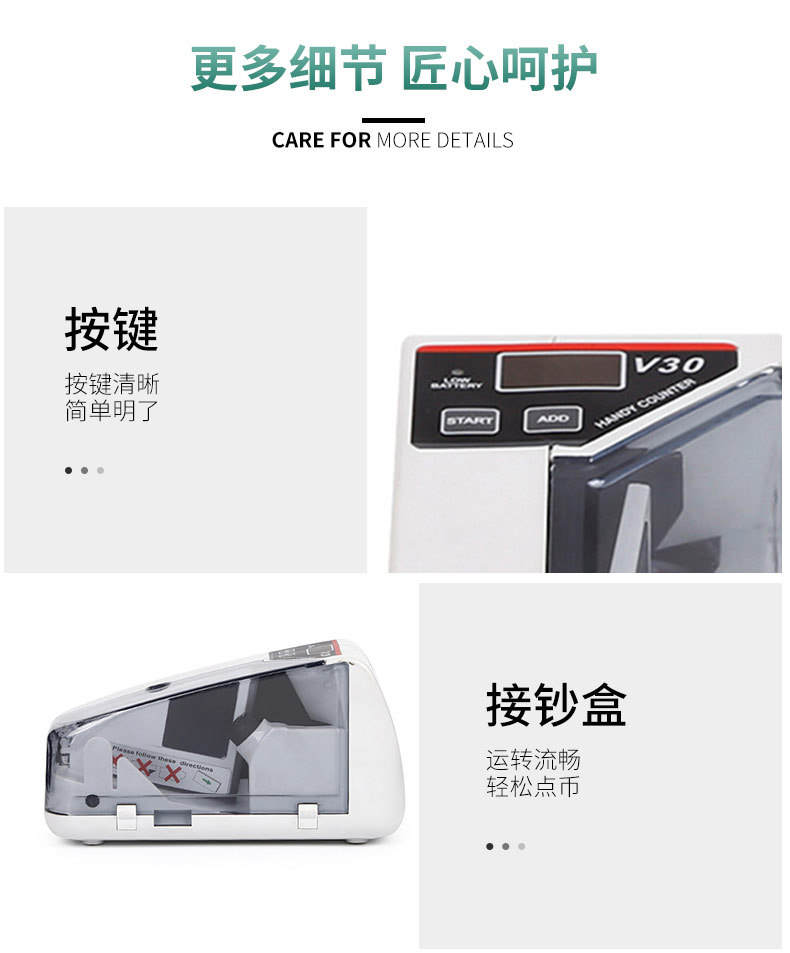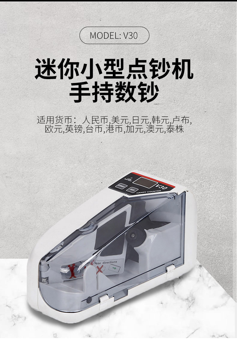 V30手持点钞机便携式手持验钞机 bill counter 电源电池两用