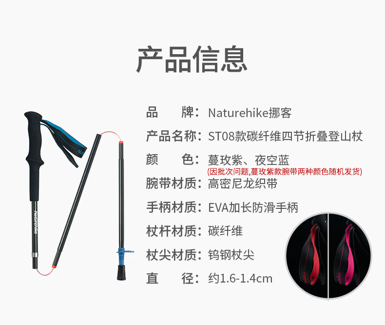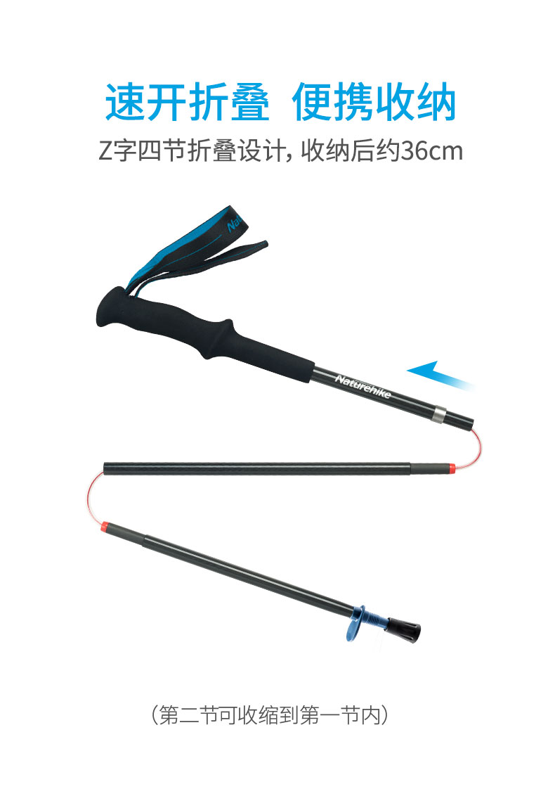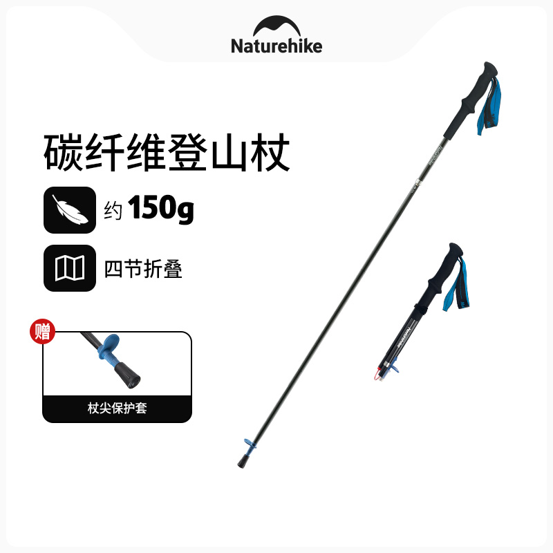 Naturehike挪客碳纖維登山杖四節摺疊碳素超輕徒步越野手杖行山杖