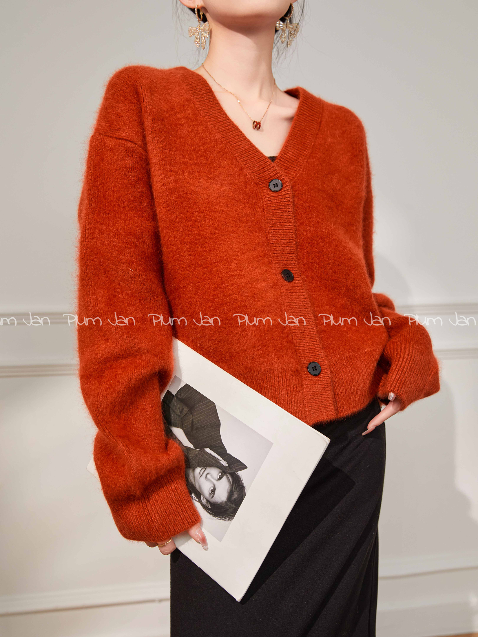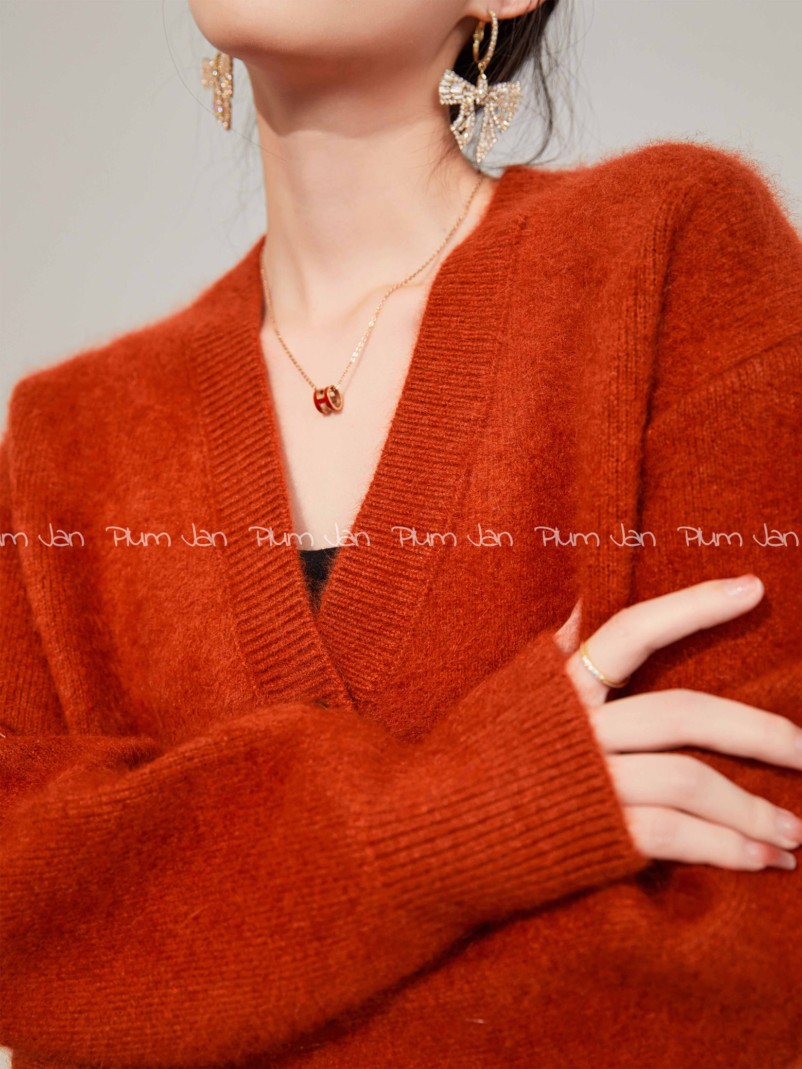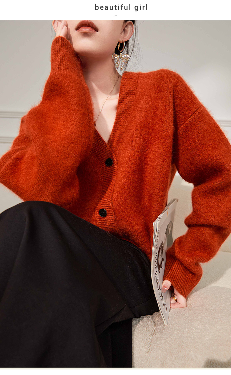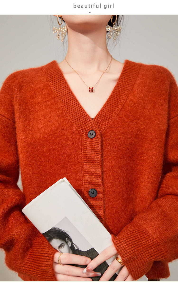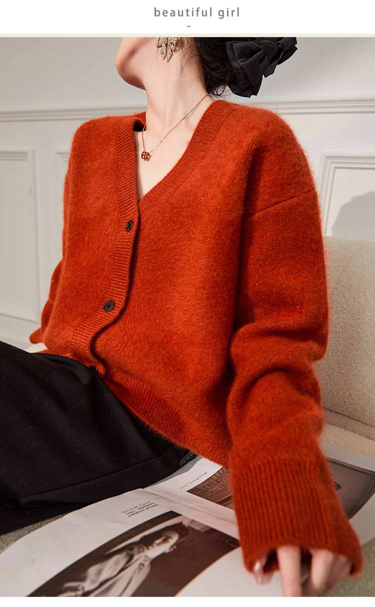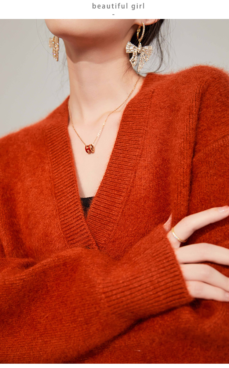 Plum Jan/過年紅色毛衣復古慵懶風V領針織開衫外套女秋冬耶誕法式