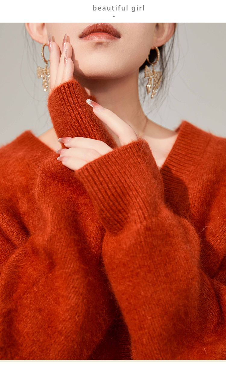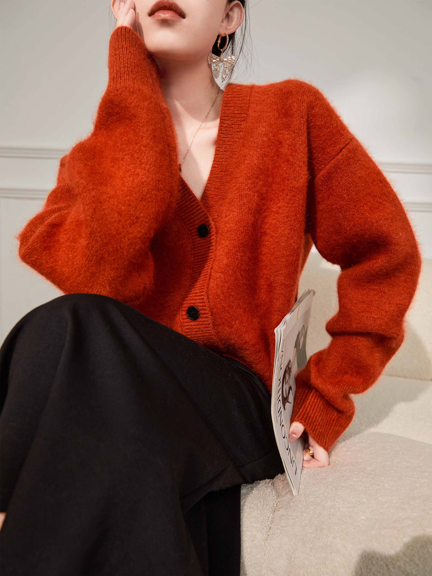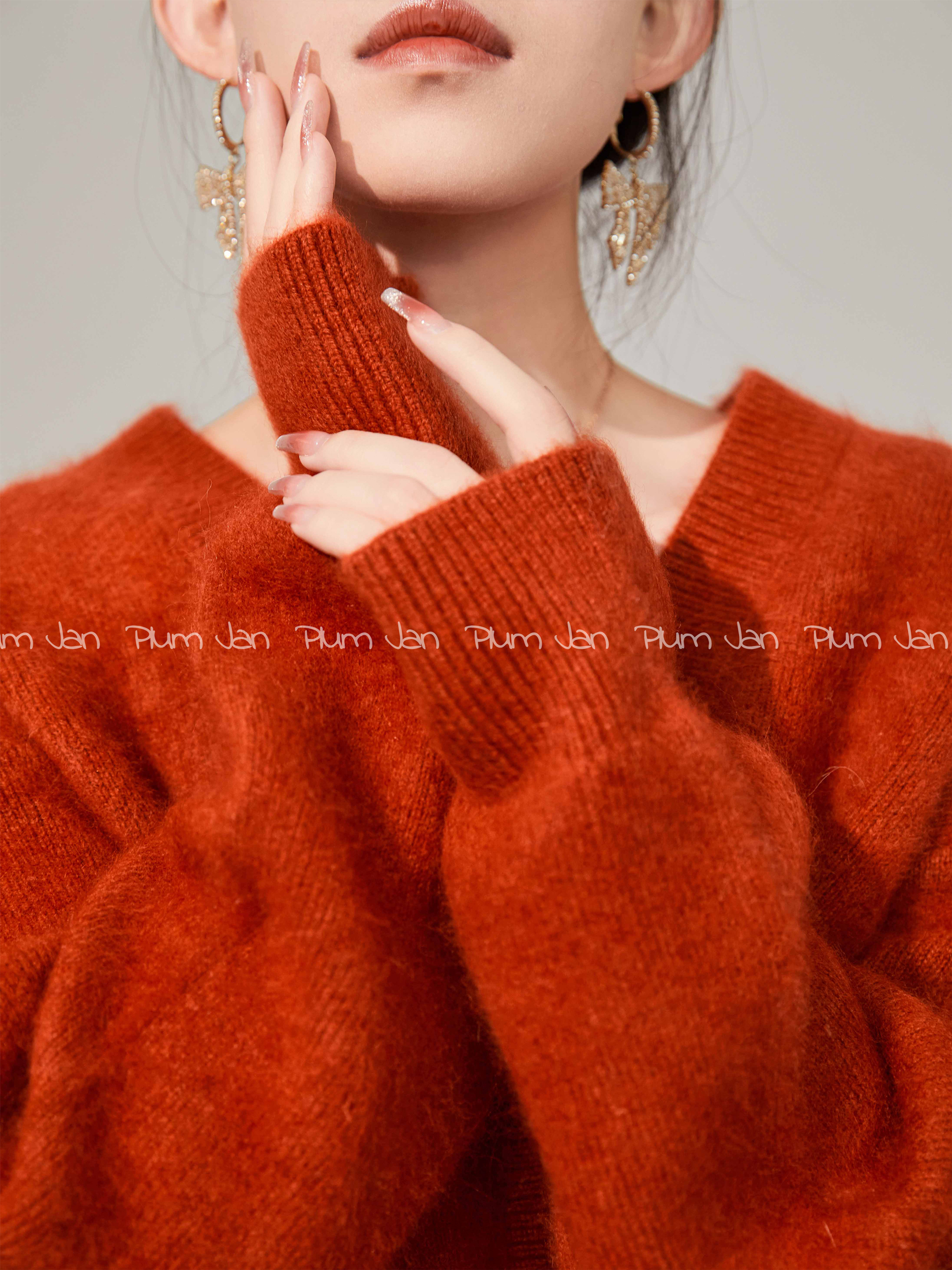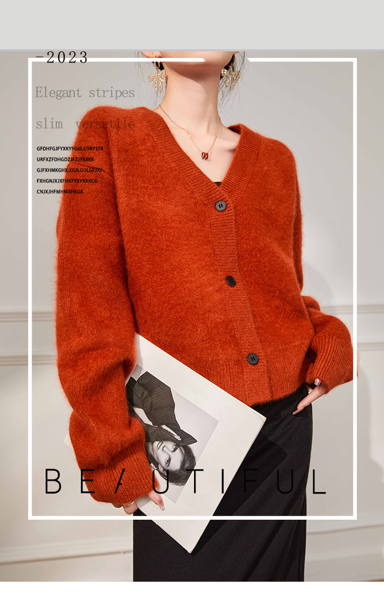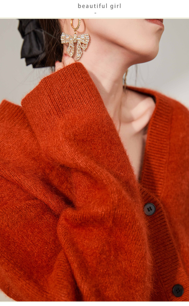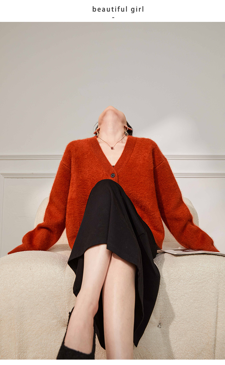 Plum Jan/過年紅色毛衣復古慵懶風V領針織開衫外套女秋冬耶誕法式