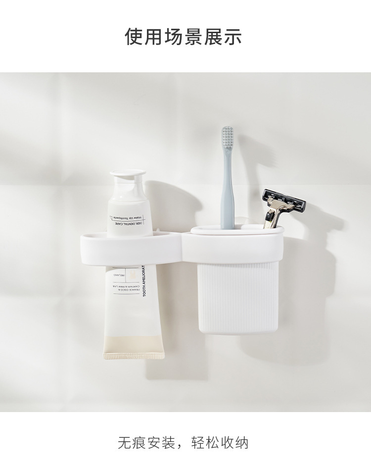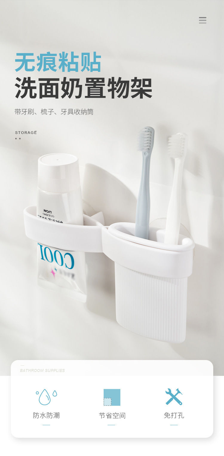 日本KM 1218无痕粘贴洗面奶置物架 浴室壁挂式牙刷牙膏收纳架