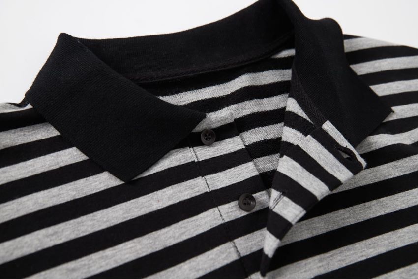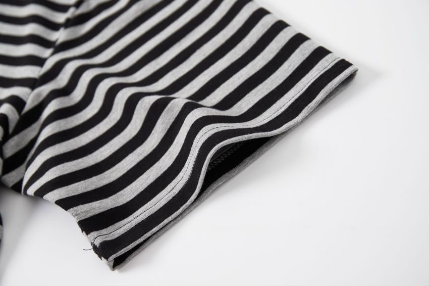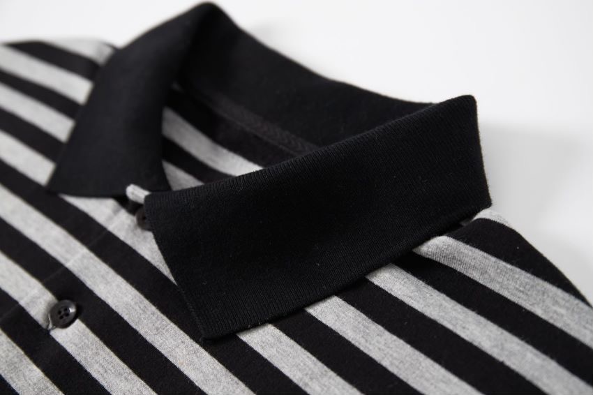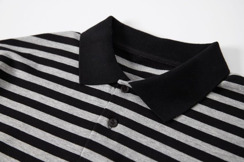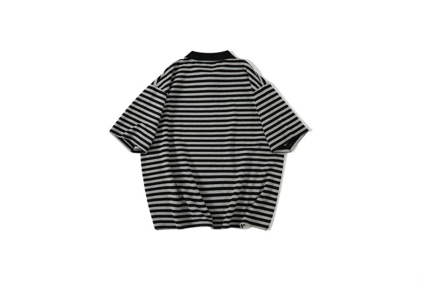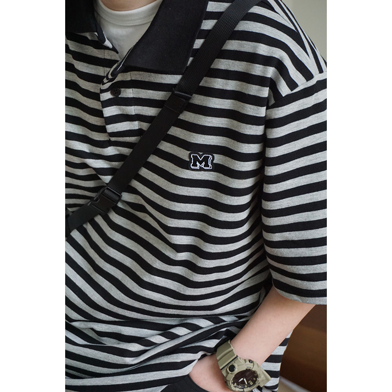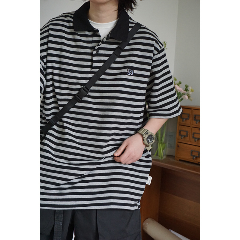 2023年新款日系短袖黑灰條紋短袖翻領polo衫男女T恤衫夏季潮牌情
