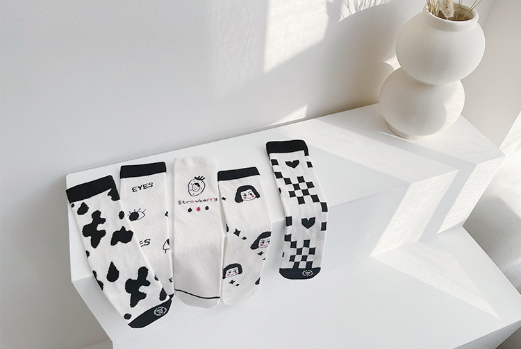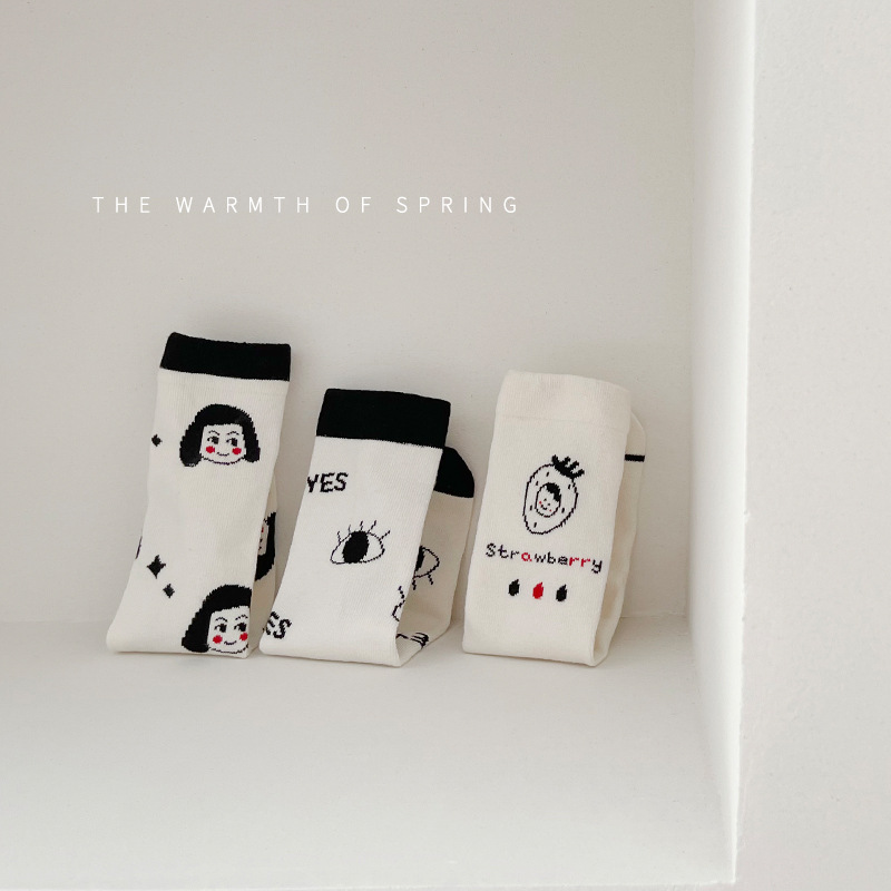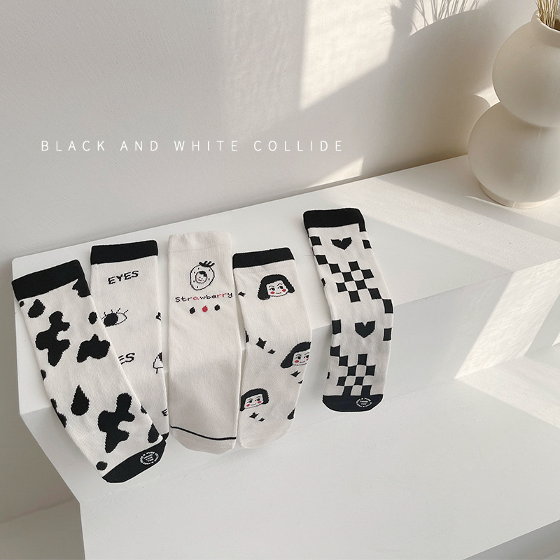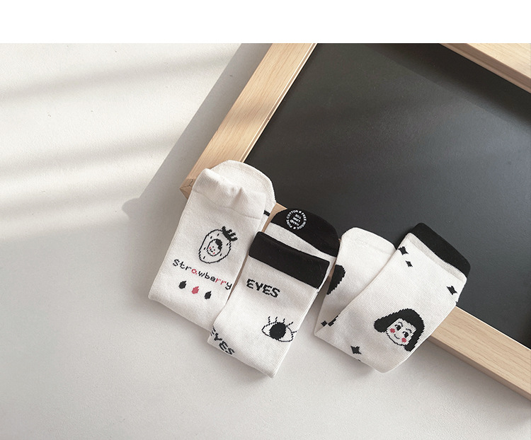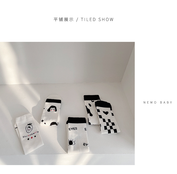 22新款儿童袜子春秋季精梳棉黑白调厂家批发韩版ins男女潮童袜子