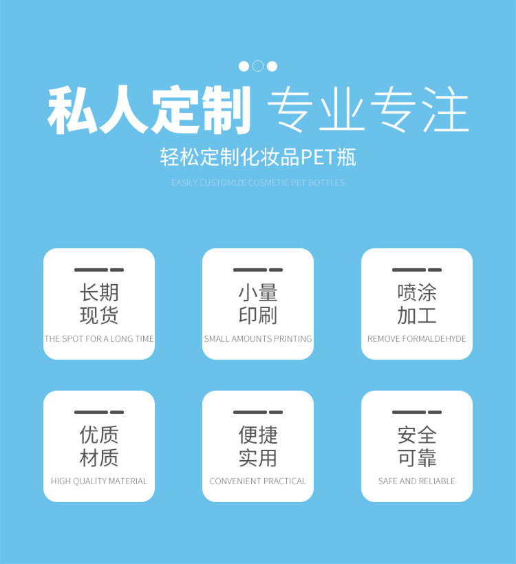 本厂专业生产化妆瓶塑料瓶包装,使用广泛,可定制任意颜色。