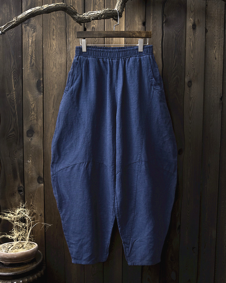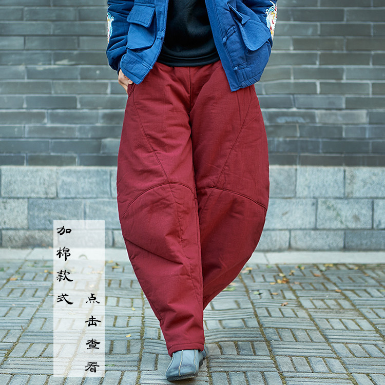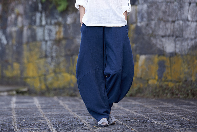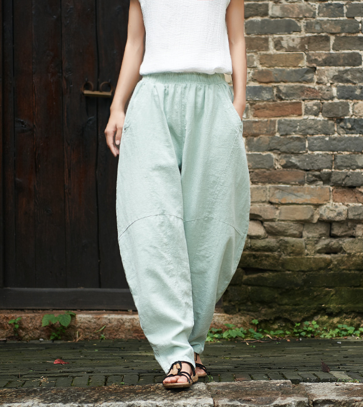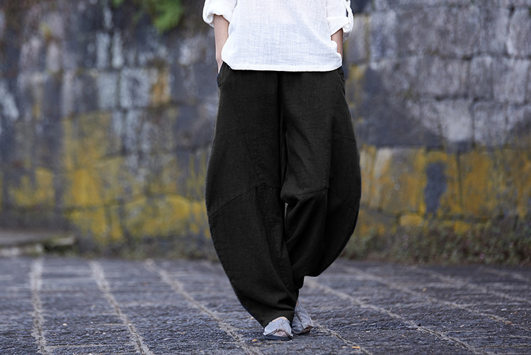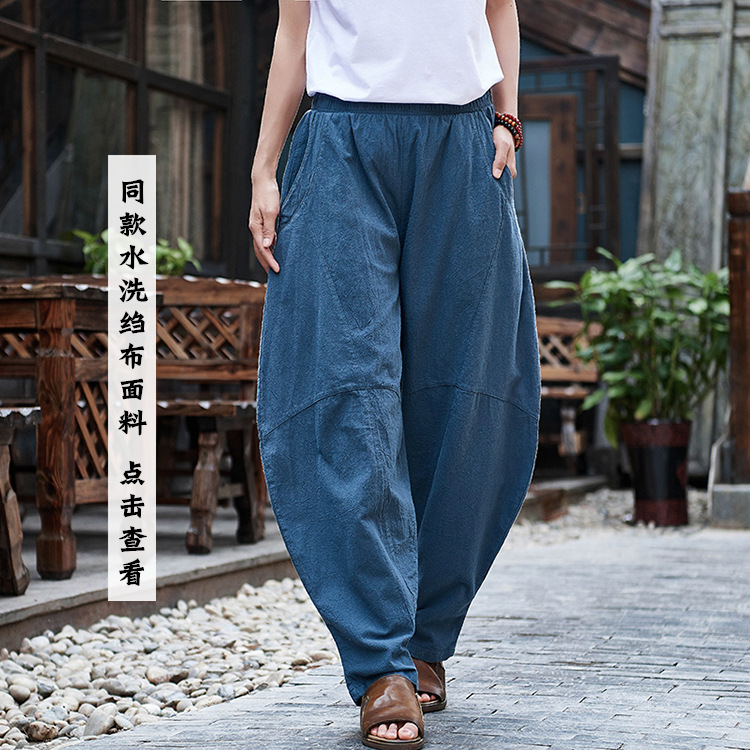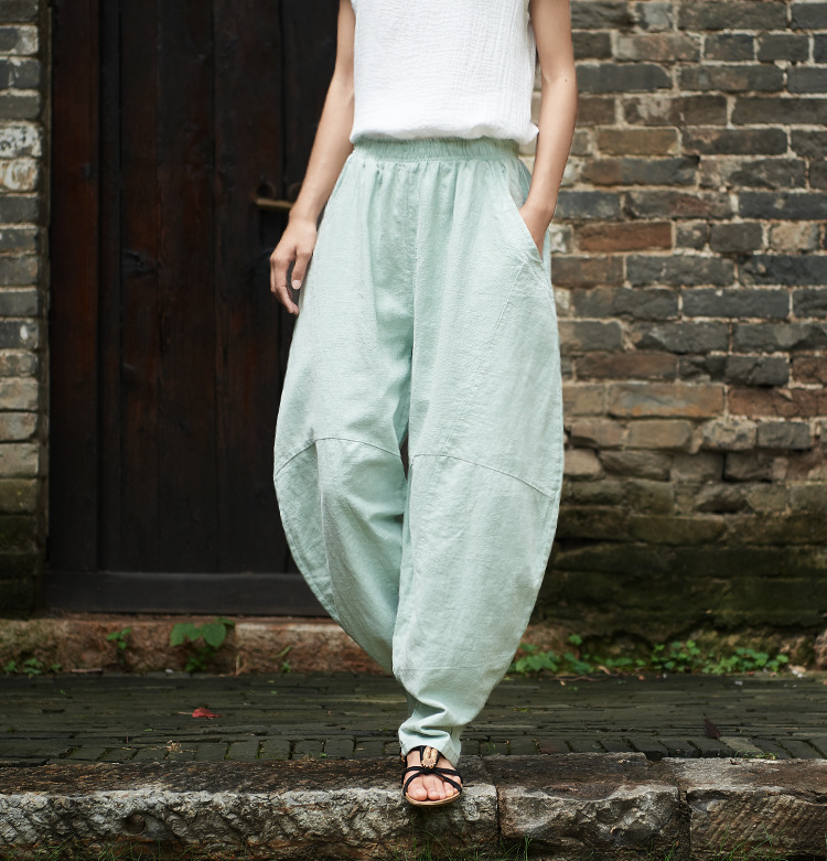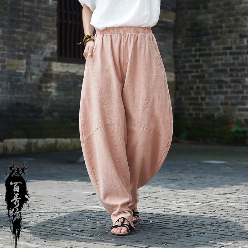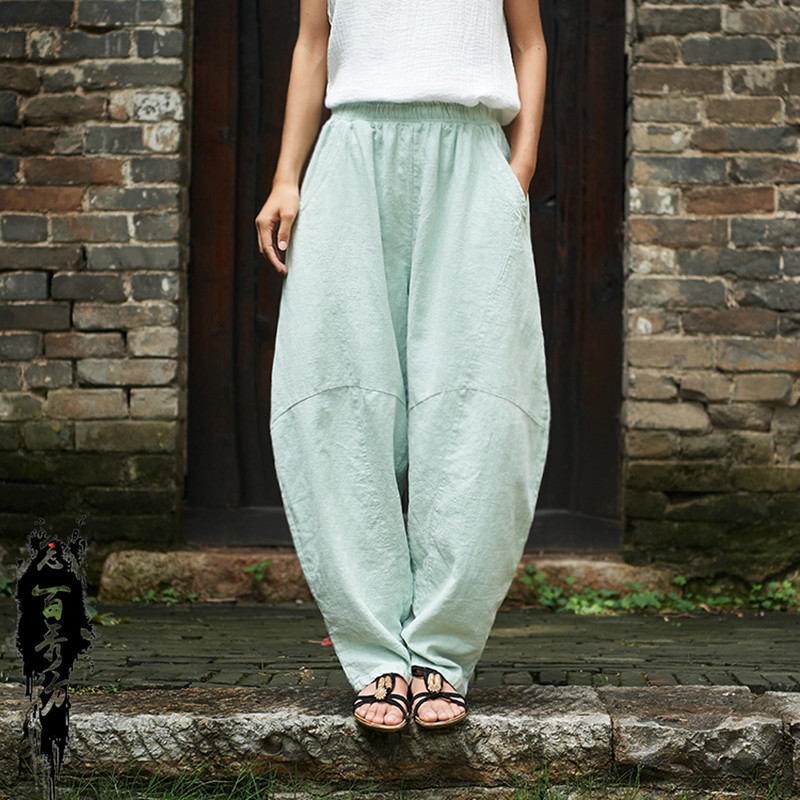 2023春夏棉麻女装新品念百秀纺国风苎麻女式灯笼休闲裤打坐裤长裤